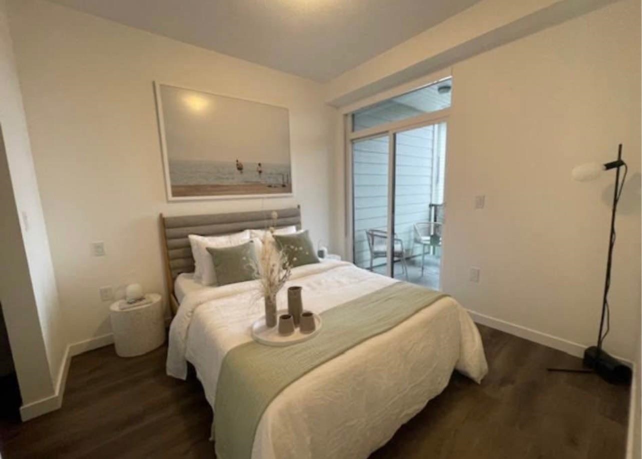 Step into luxury at The Grove. Plan B is a spacious 772 sq. ft. with 2 bedrooms, 2 washroom(s) and Den.The unit faces north side with a patio yard. Enjoy the timeless elegance of the generous ceiling heights and bright & large picture windows. It further boasts quartz counter tops, full-size Samsung appliances, including a 32” 3-Door Refrigerator. The Grove has amazing amenities that include Residents only Fitness Studio, Social Lounge and Kitchen, Guest Suite, Outdoor Amenity Area, and On Site Building Man...