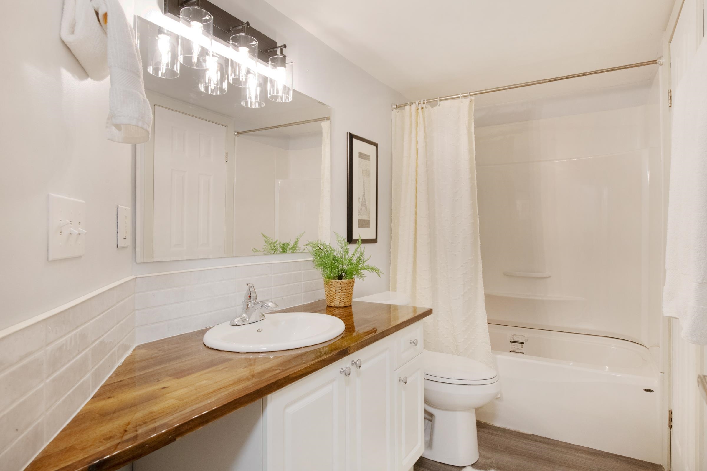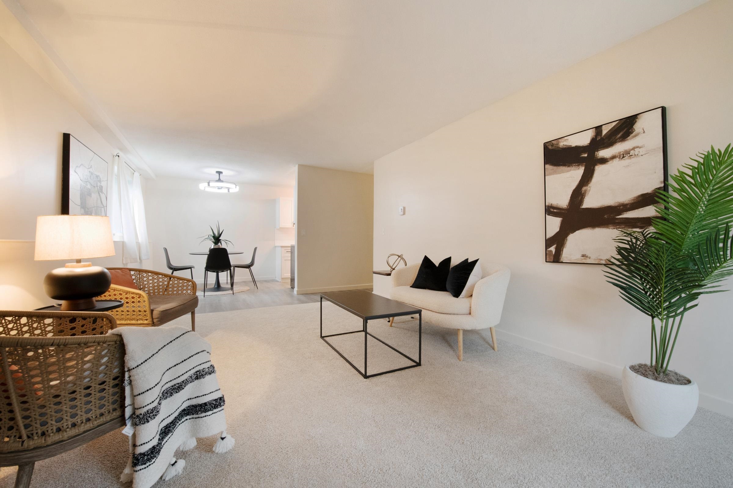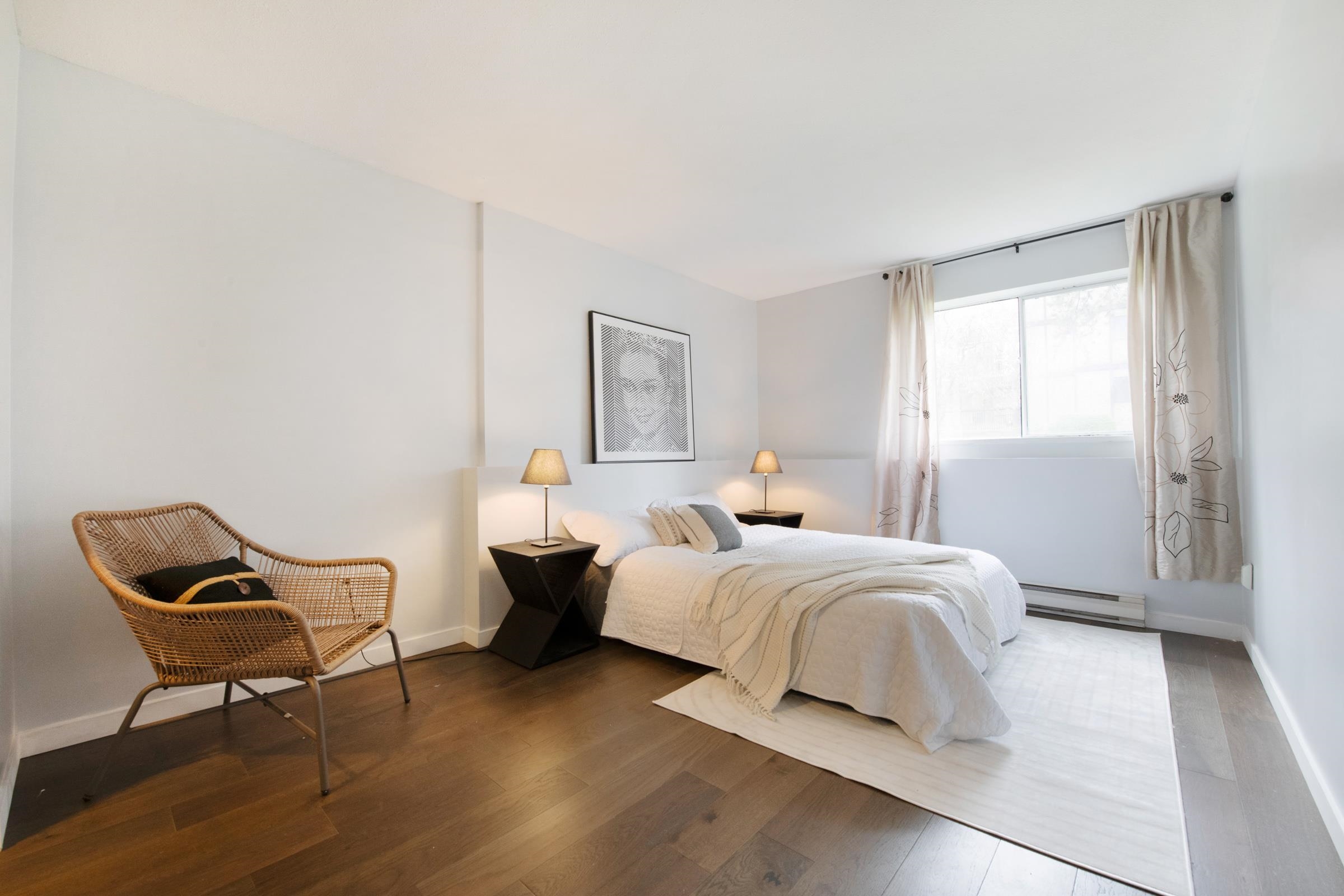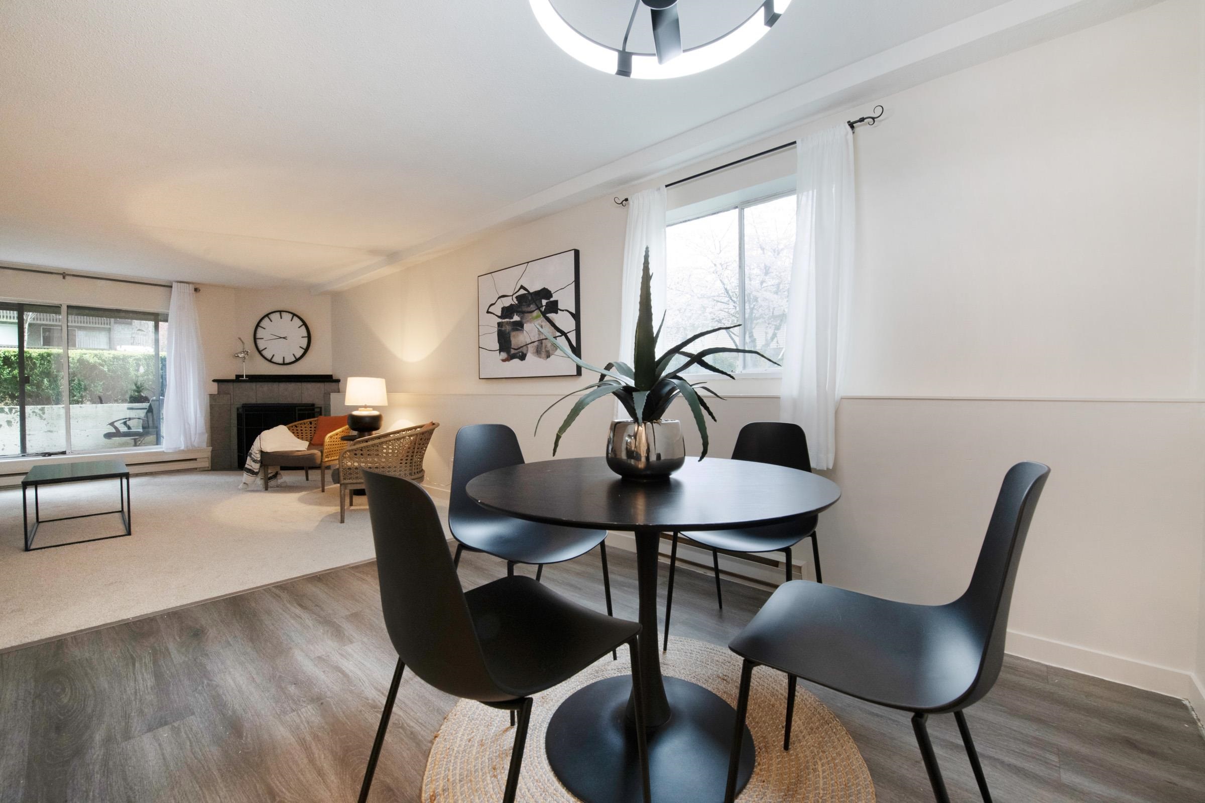 This stunning 2-bedroom end unit apartment has been beautifully and completely renovated from top to bottom, offering a bright and quiet living space that feels better than new. Featuring brand new kitchen cabinets and countertops, new stainless steel appliances, fresh carpet and flooring throughout, new paint, modern light fixtures, and a fully updated bathroom with a sleek new backsplash. Enjoy the cozy gas fireplace and relax on your private covered patio, while the convenience of In-suite Washer and Dry...