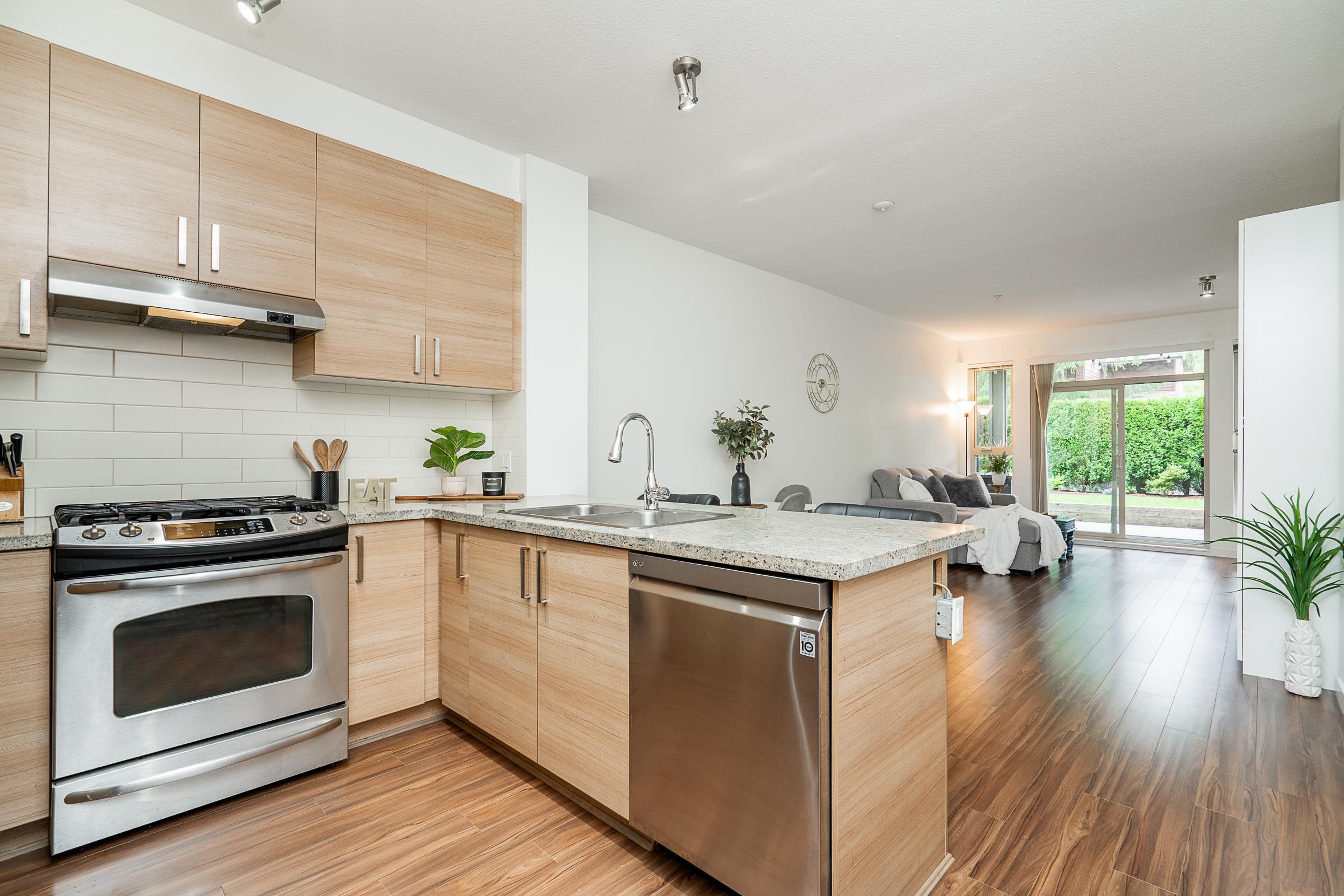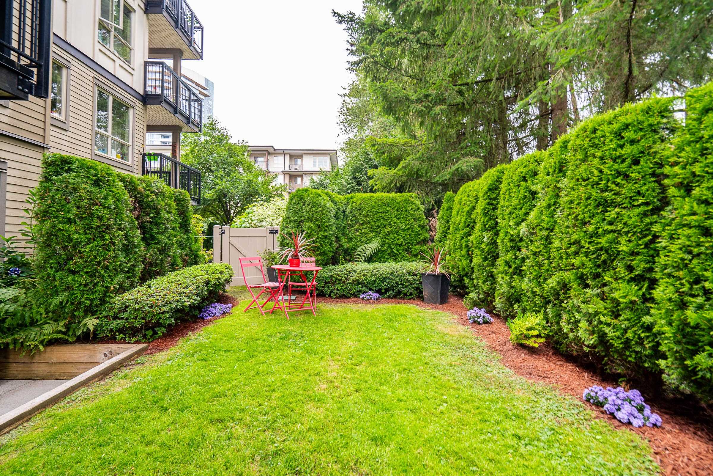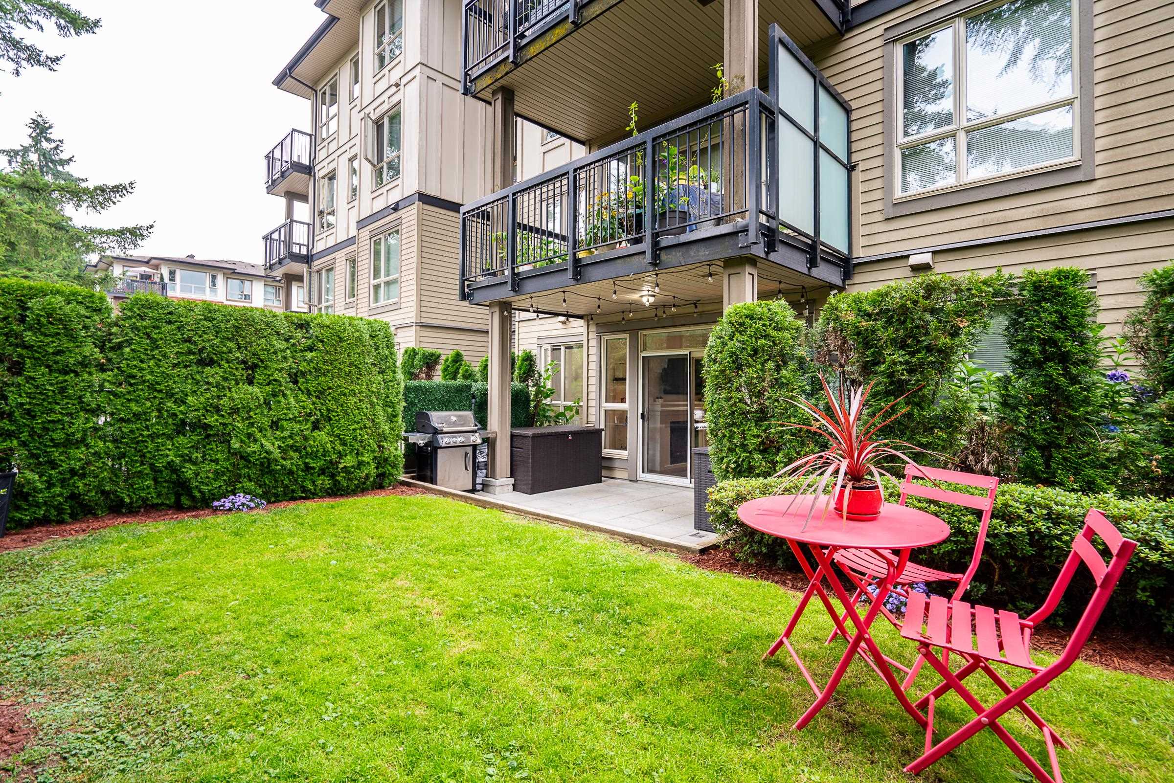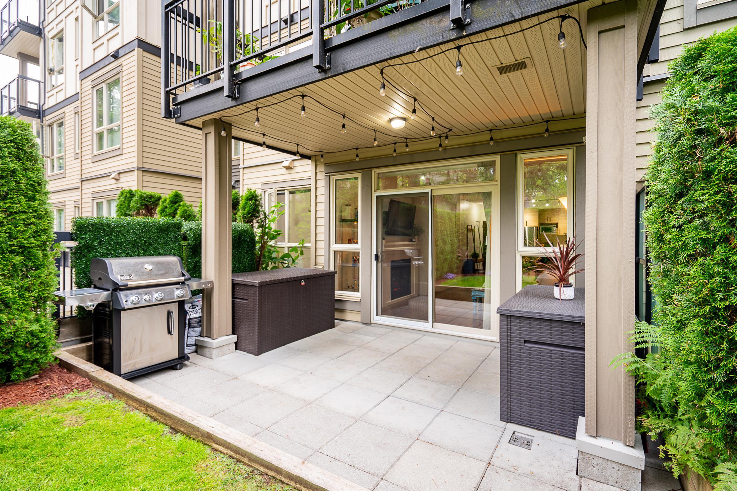 Beautiful ground-level home with an extra-large, incredibly private patio and spacious yard, at Polygon’s Thomas House at Windsor Gate. This open-concept unit features high ceilings throughout and a gourmet kitchen, with SS appliances, gas range, stone countertops, and a functional floor plan, perfect for entertaining. Two large bedrooms, with the primary featuring a spa-like ensuite. Situated on the quiet side of the building, this home offers unparalleled privacy with the covered patio off the main living...