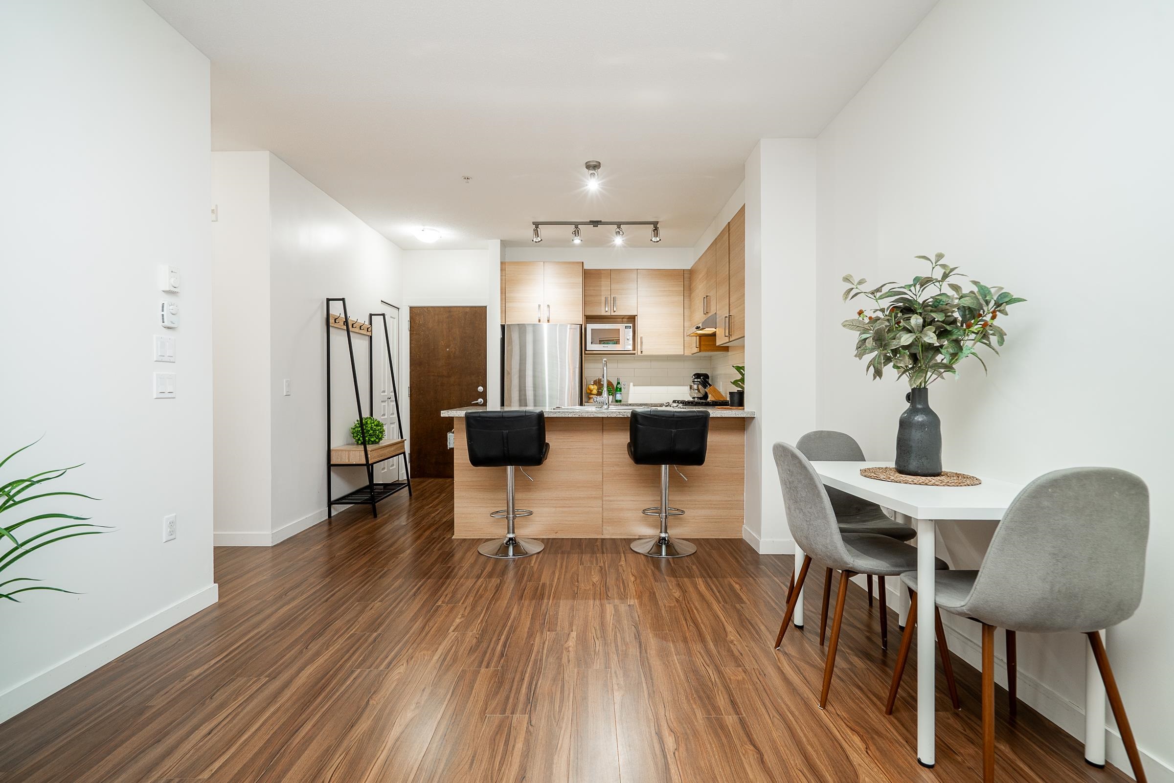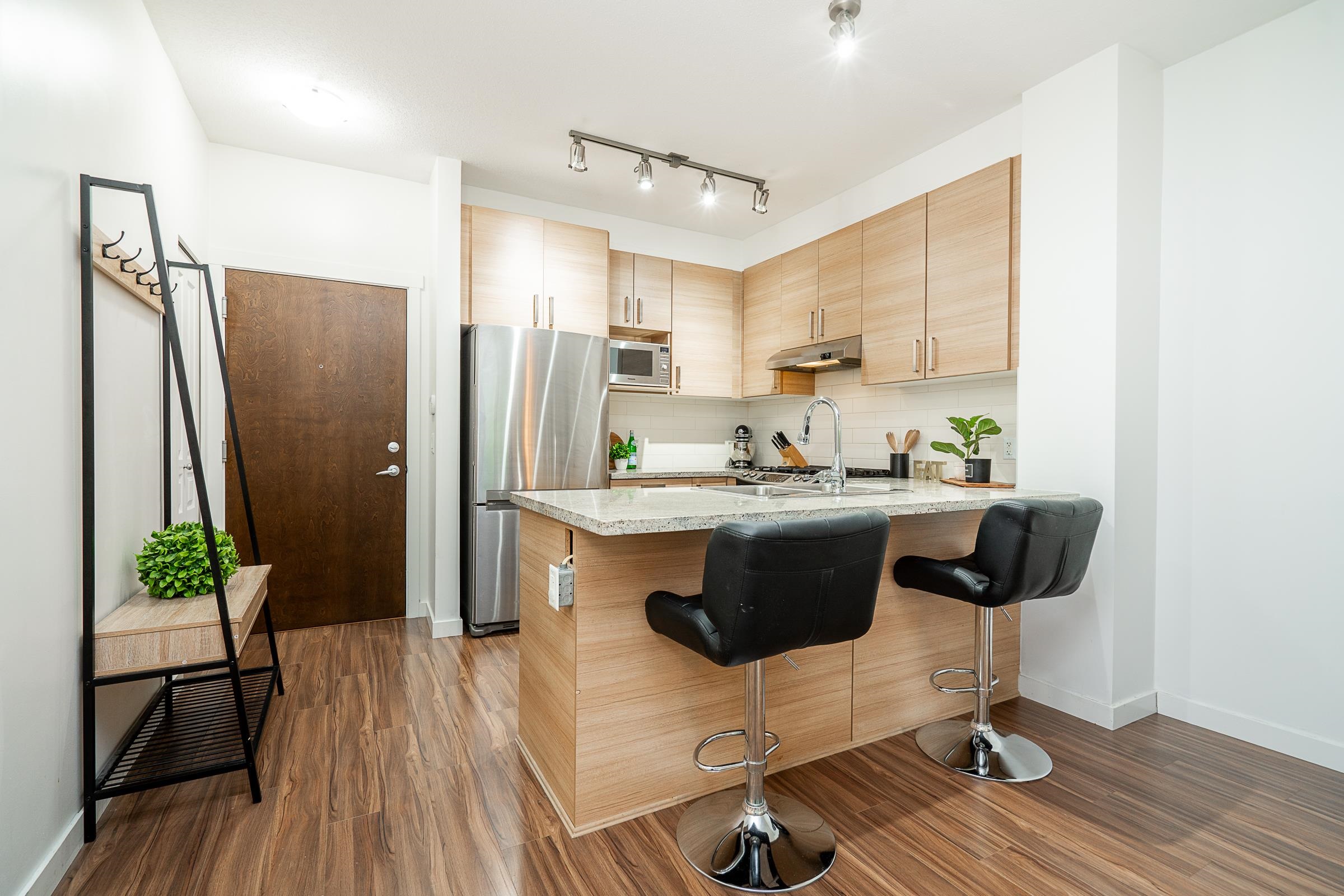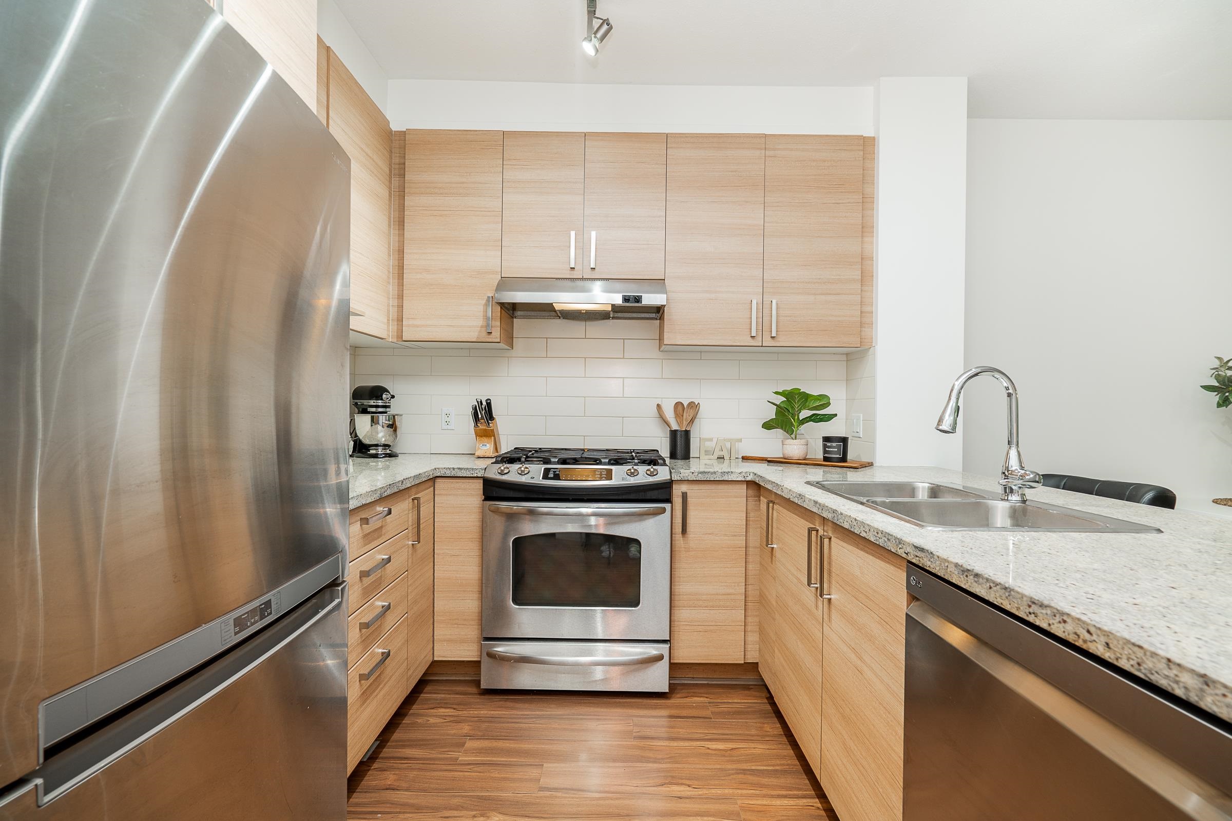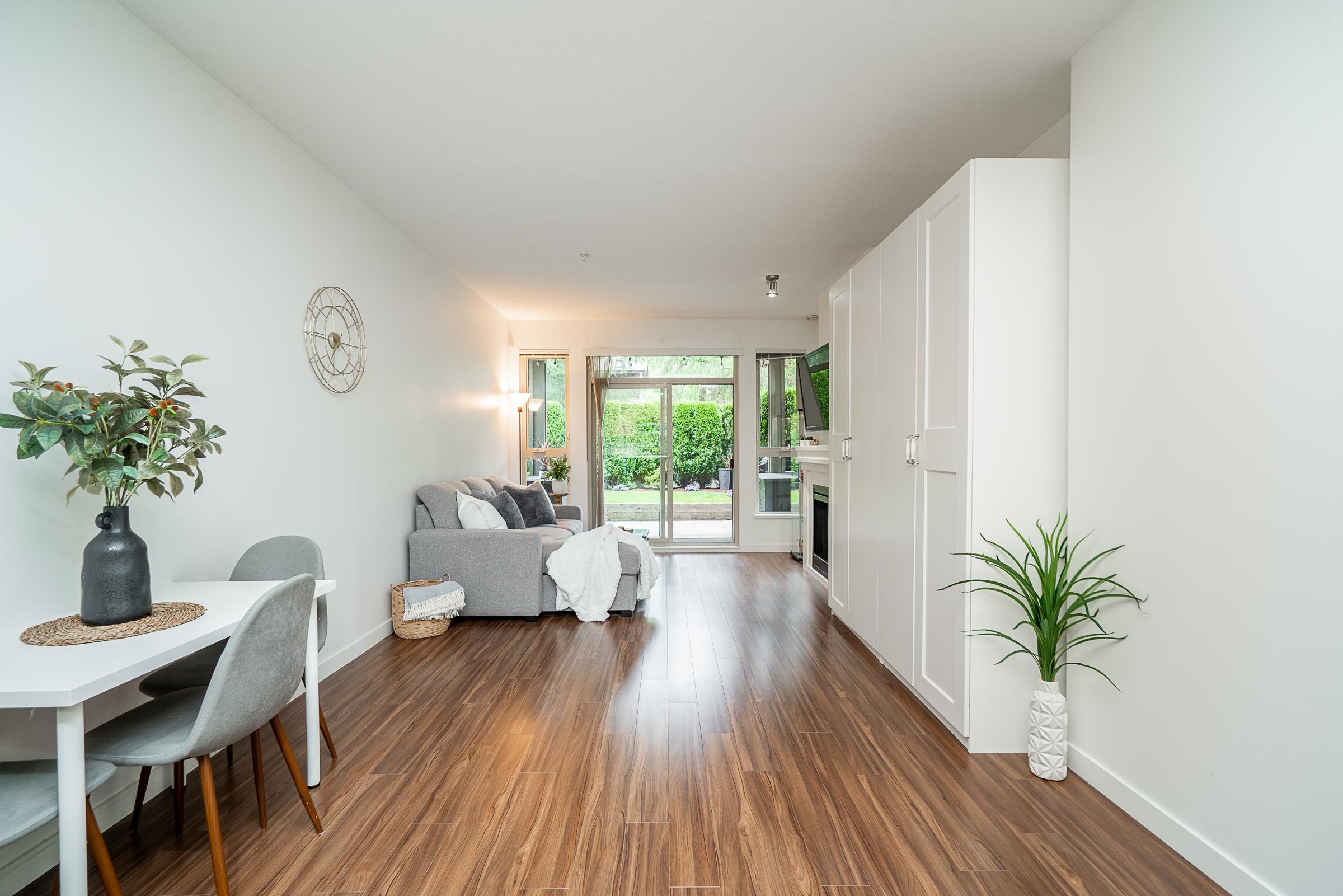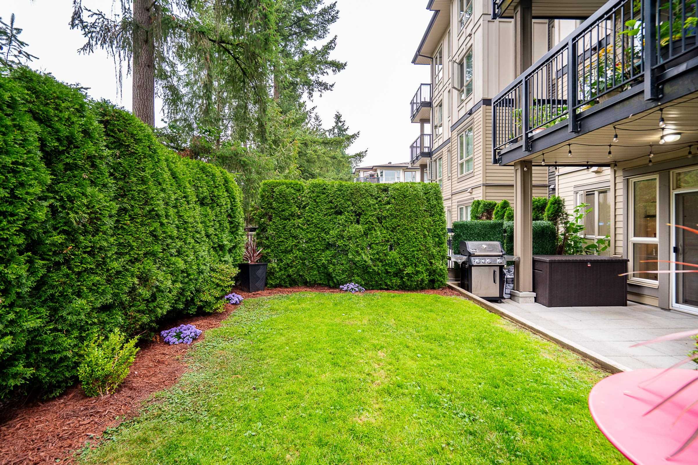 Beautiful ground-level home with an extra-large, incredibly private patio and spacious yard, at Polygon’s Thomas House at Windsor Gate. This open-concept unit features high ceilings throughout and a gourmet kitchen, with SS appliances, gas range, stone countertops, and a functional floor plan, perfect for entertaining. Two large bedrooms, with the primary featuring a spa-like ensuite. Situated on the quiet side of the building, this home offers unparalleled privacy with the covered patio off the main living...