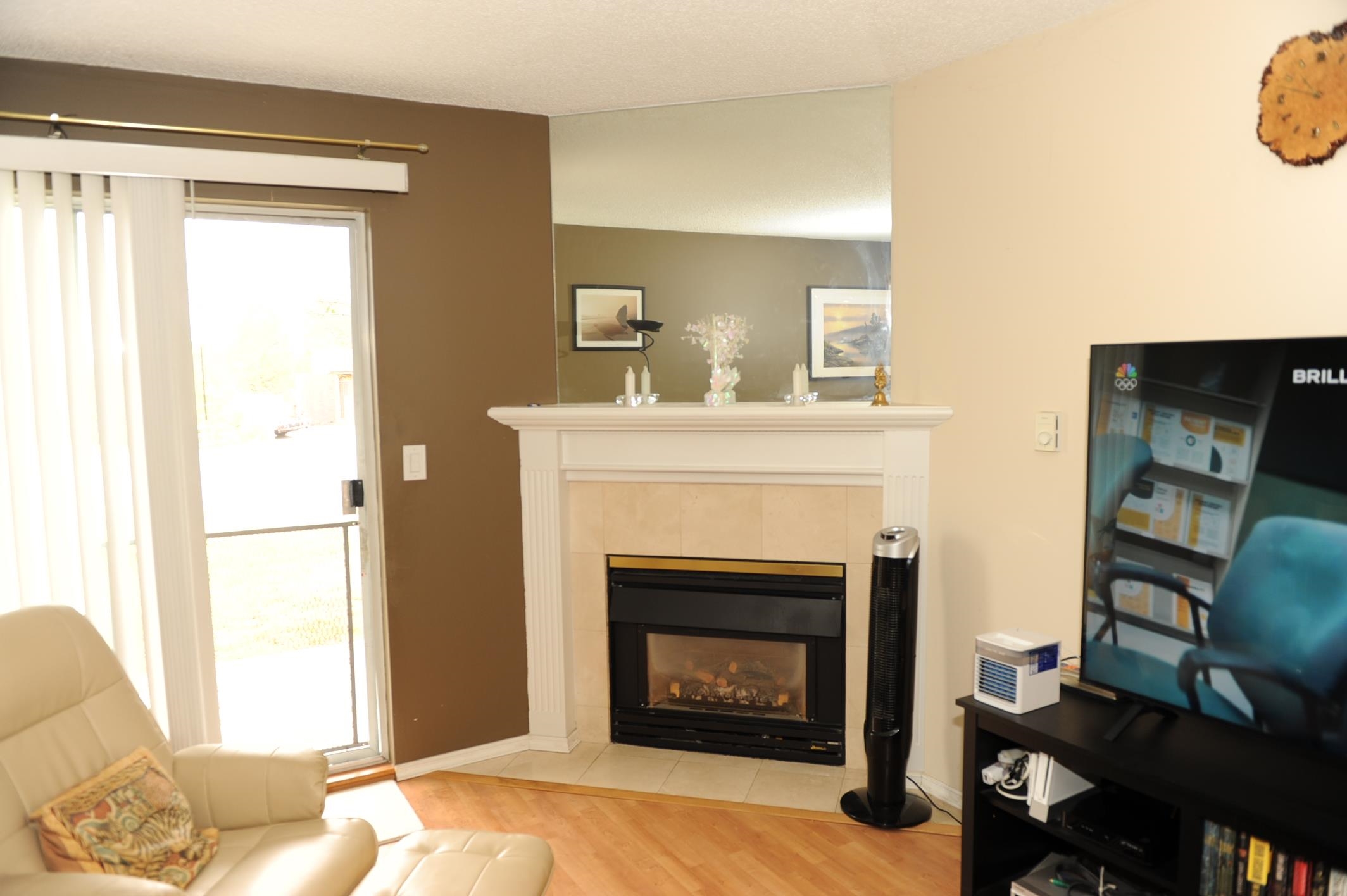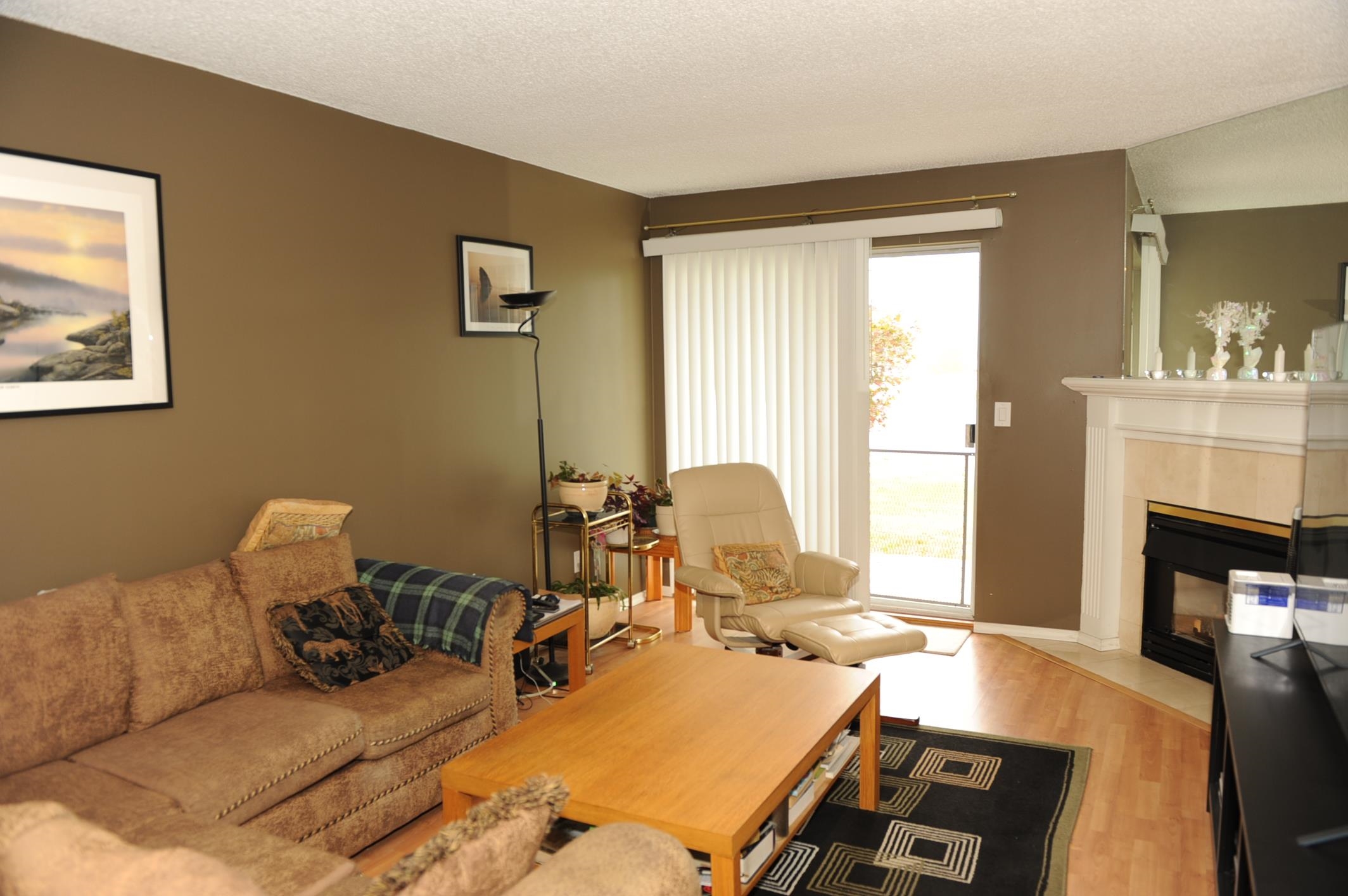 Fraser view at Riverside. Large 1 Bdrm, 1 Bathrm ground level unit with a view of Fraser River. Kitchen with oak cabinets, dining rm, living rm with gas fireplace & sliding door to patio with view of the Fraser River, adult 55+ complex. Unit has its own laundry, storage room which could be used as a den. Pet friendly, guest suite and activity room for parties. Close to shopping, West Coast Express, transportation & across from Brickwood Park & tennis courts. OPEN HOUSE SAT/SUN JAN 241:00-3:00 pm