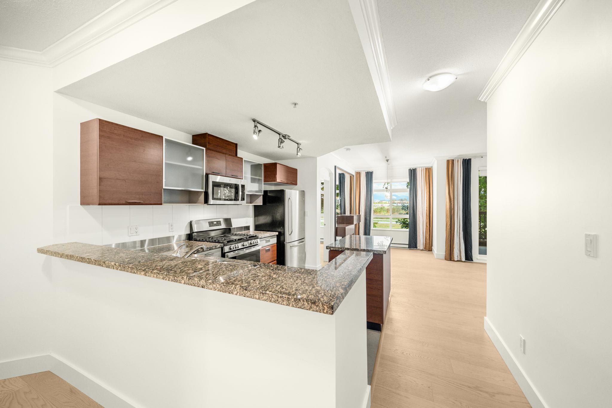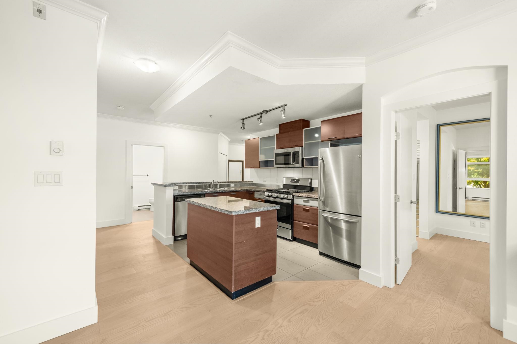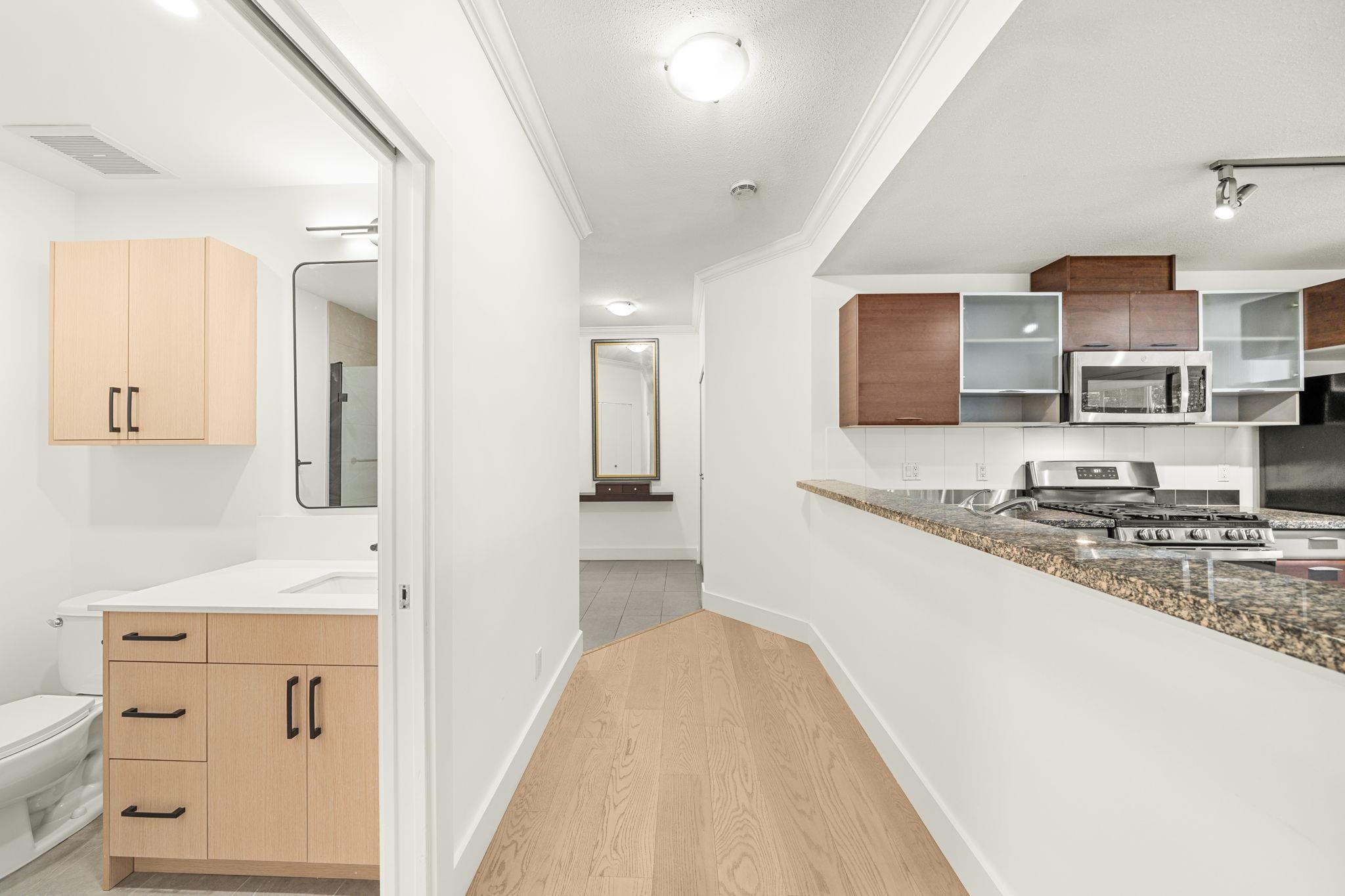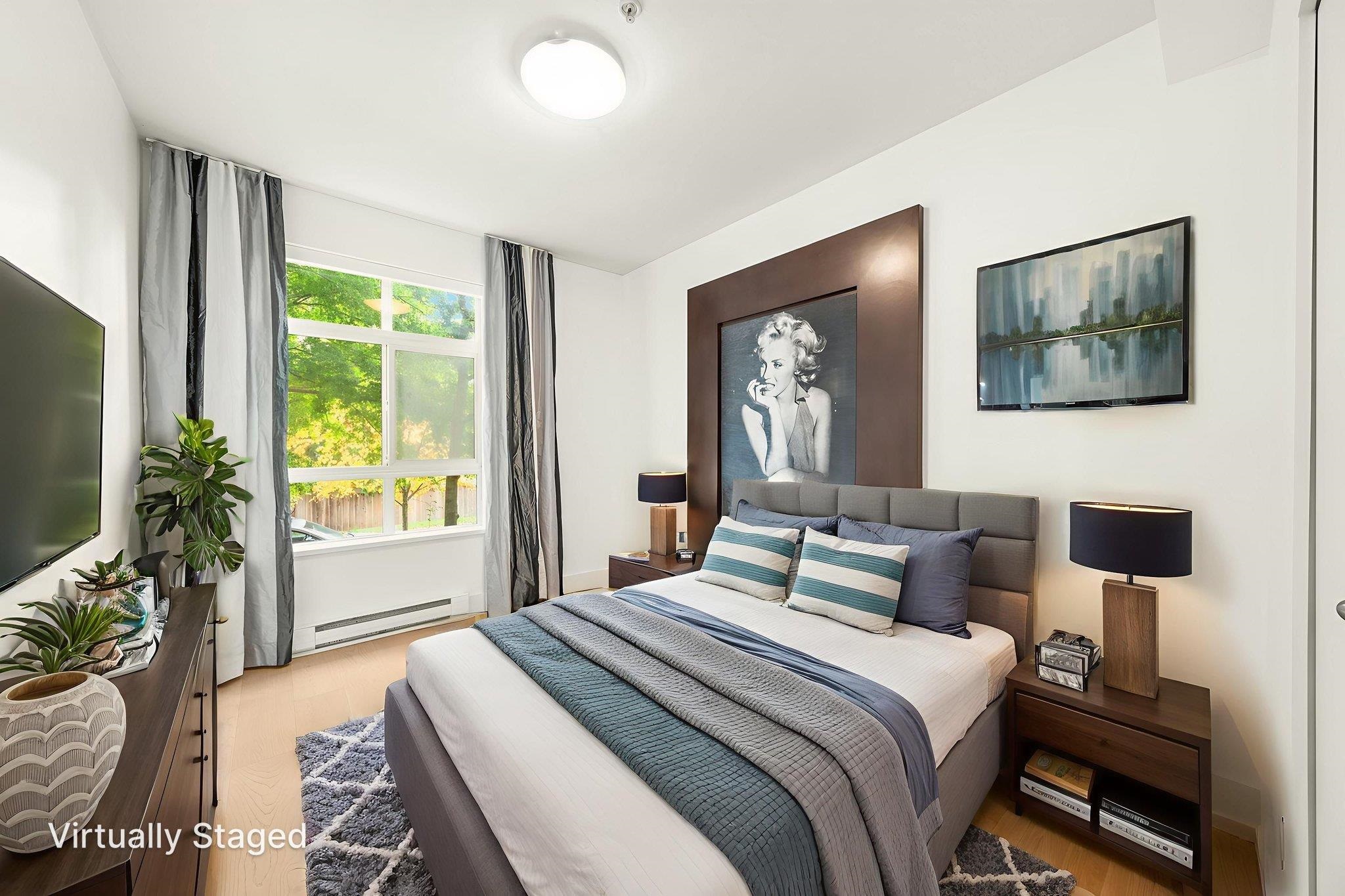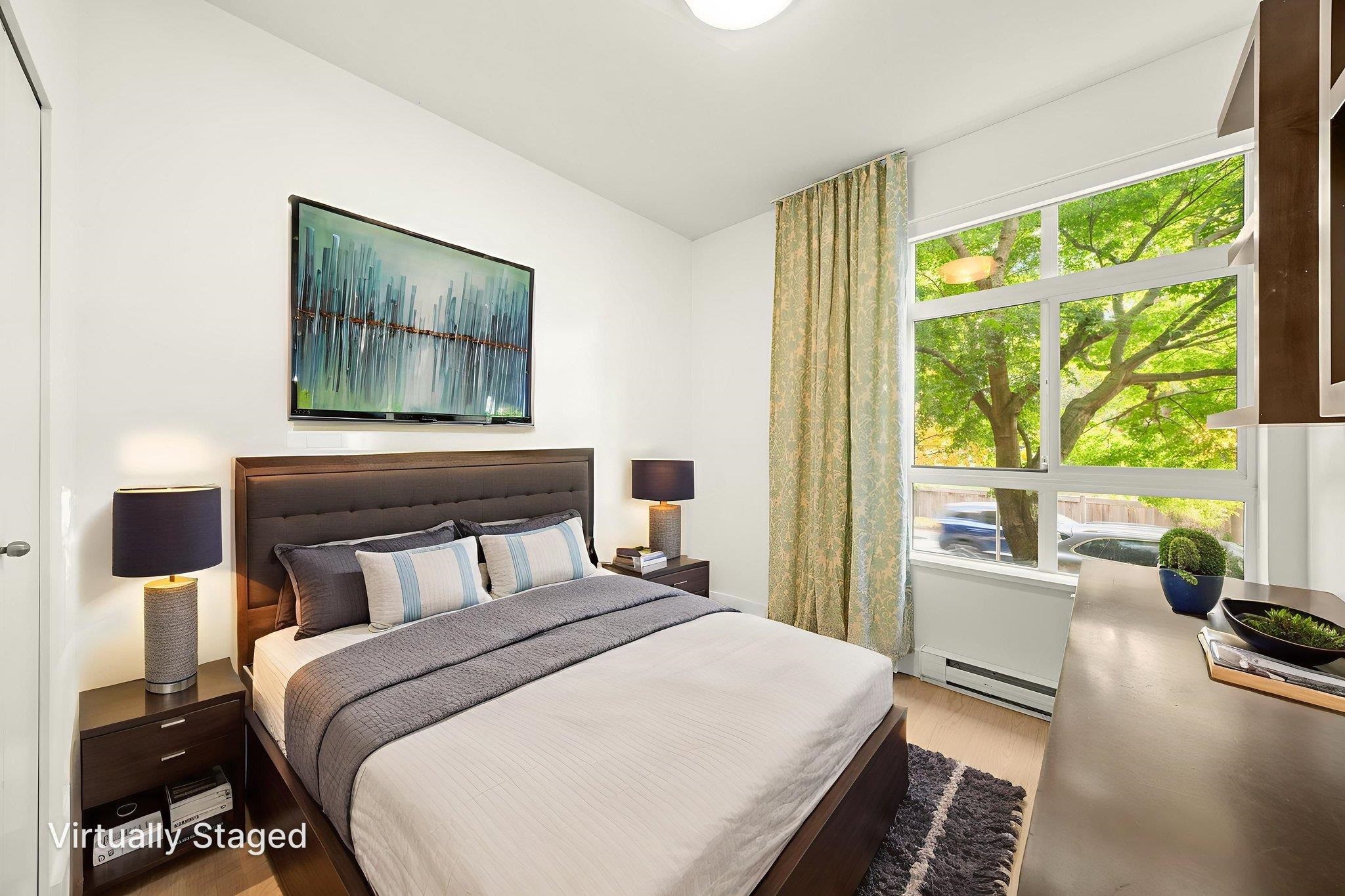 Welcome home to this stunning, former show home by award-winning developer Adera offering 1219 sqft of beautifully updated living space w/ views of the North Shore mountains. A rare 3-bedroom CORNER home, thoughtfully renovated w/ new flooring, fresh paint, a modern bathroom & stylish finishes throughout. Designed to impress, this home features abundant natural light from large windows, an open-concept floor plan & extensive custom millwork including built-in cabinetry, shelving & custom drapery. The spacio...