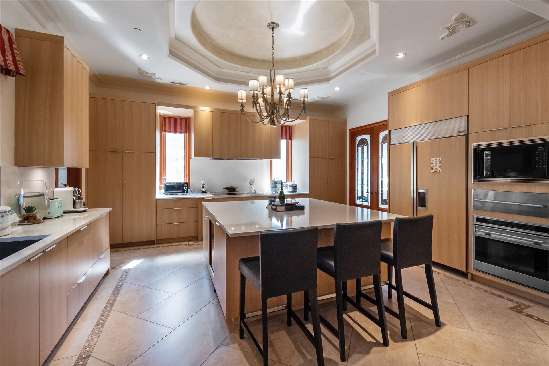 Luxury 8,672 sf mansion in the heart of South Granville at the corner of W. 54th @ Montgomery on massive 88x190 = 16,808sf property. Impressive large principle rooms on the main, extensive use of marble, millwork, intricate inlay wood floors; top of the line appliances in both main & wok kitchens; 4 bdrm upstairs all with ensuites; basement boasts huge rec space, movie theatre, wetbar, tea room & 2 extra bedrooms. 4 car garage + a bonus 260sf art studio in the back, plus all the RV parking you may need. Cen...