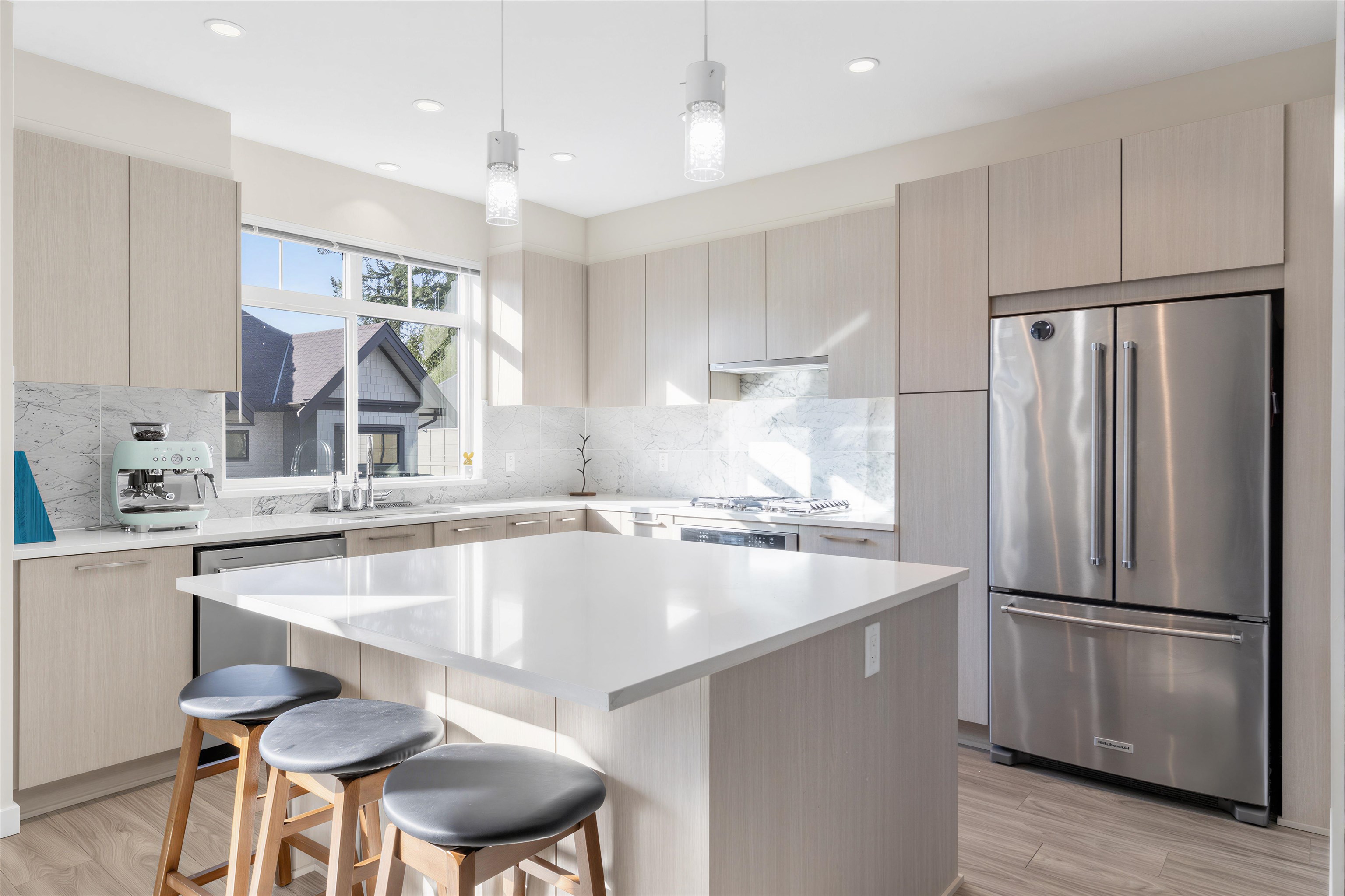 This 4 bed 3.5 bath home at Polygon's Ballantree is part of a boutique collection of brand new Shingle-style Craftsman townhomes in Coquitlam's Burke Mountain. Nestled in the heart of nature, this 1,606 sq. ft. home features a bright open main floor with expansive windows, warm wood laminate flooring, and a deck off the dining area. This home's inspiring kitchen boasts modern cabinetry, sleek stainless steel appliances, engineered stone countertops and full-height marble tile backsplash. Upstairs, the luxur...