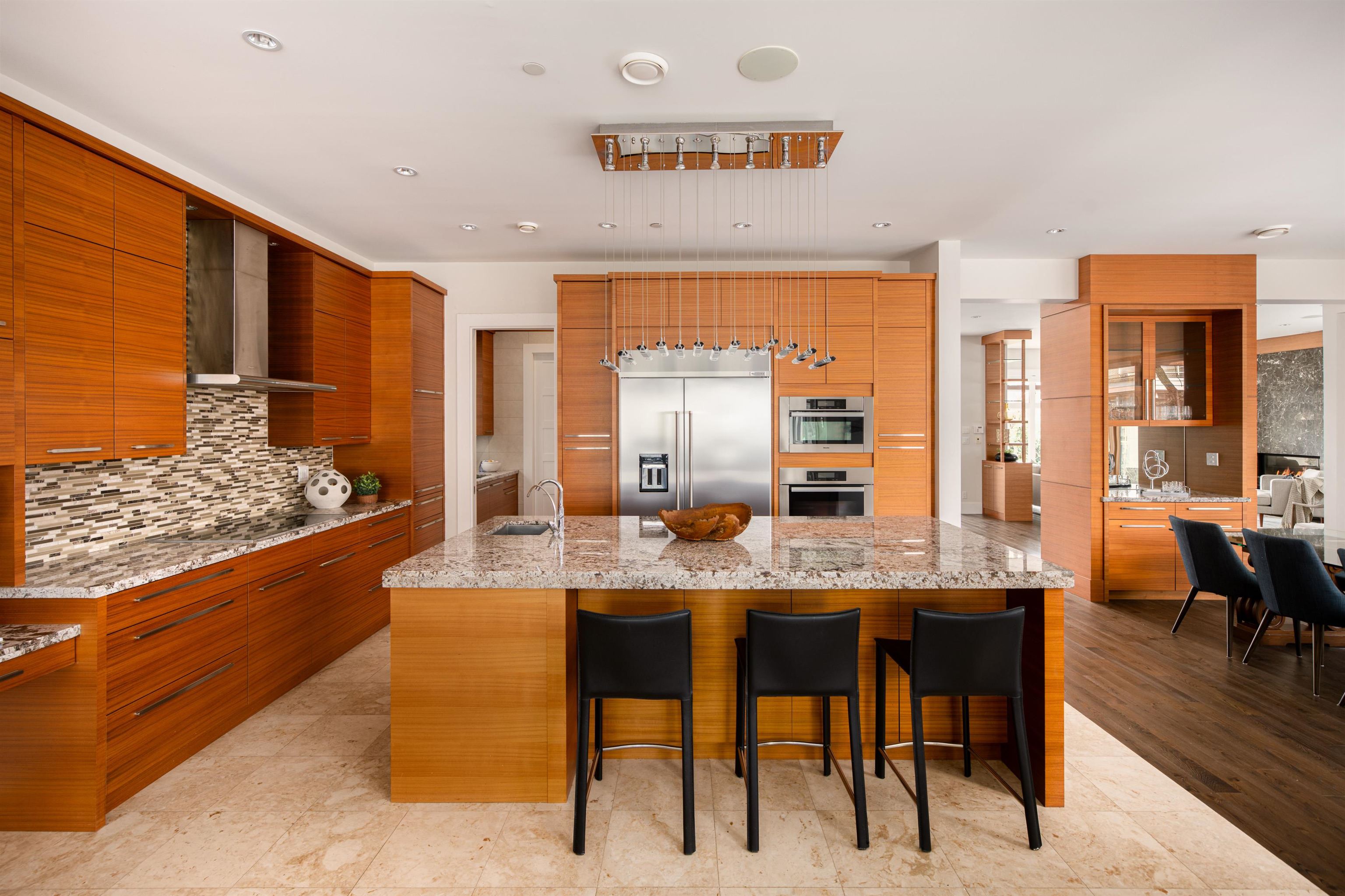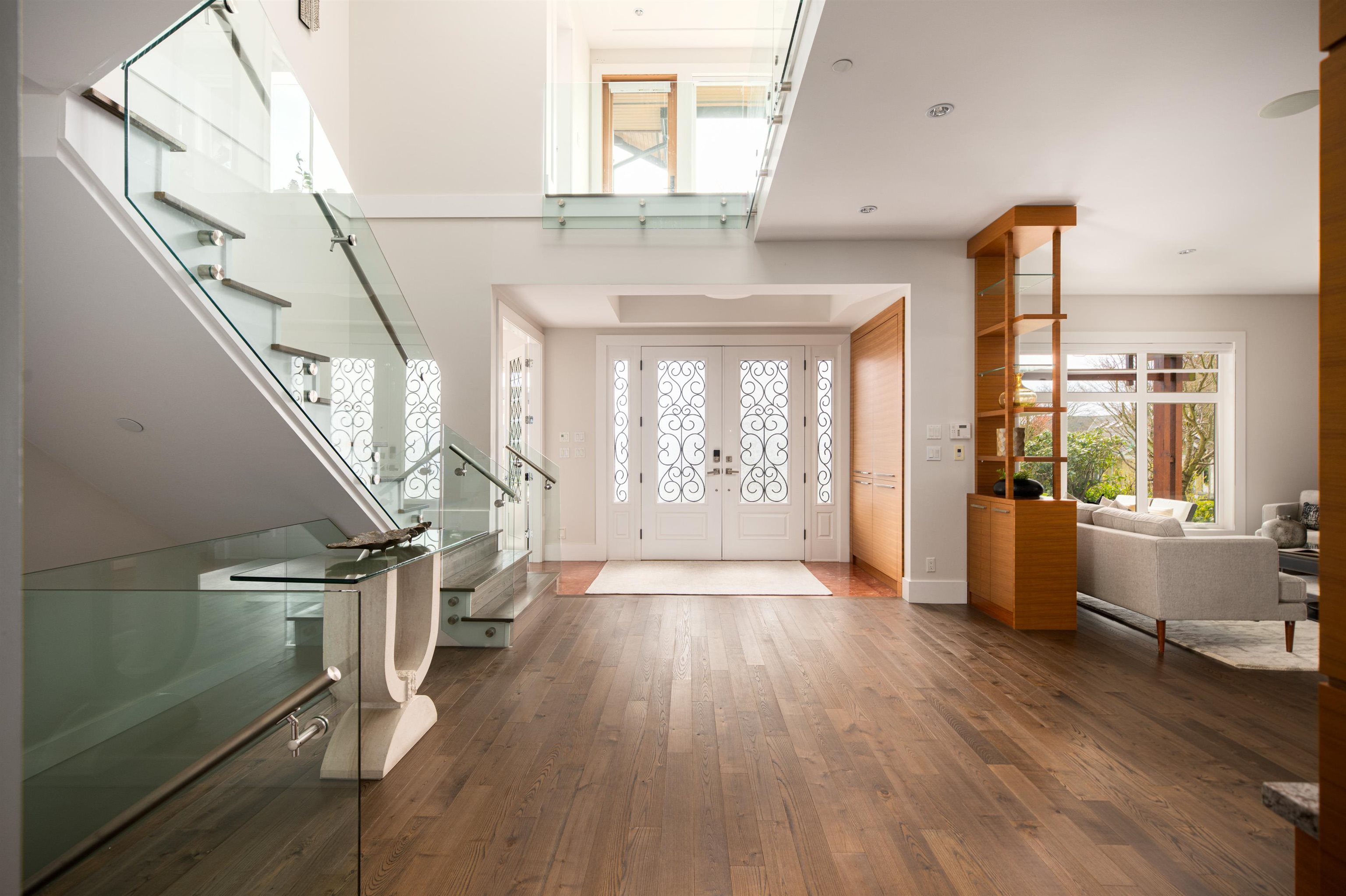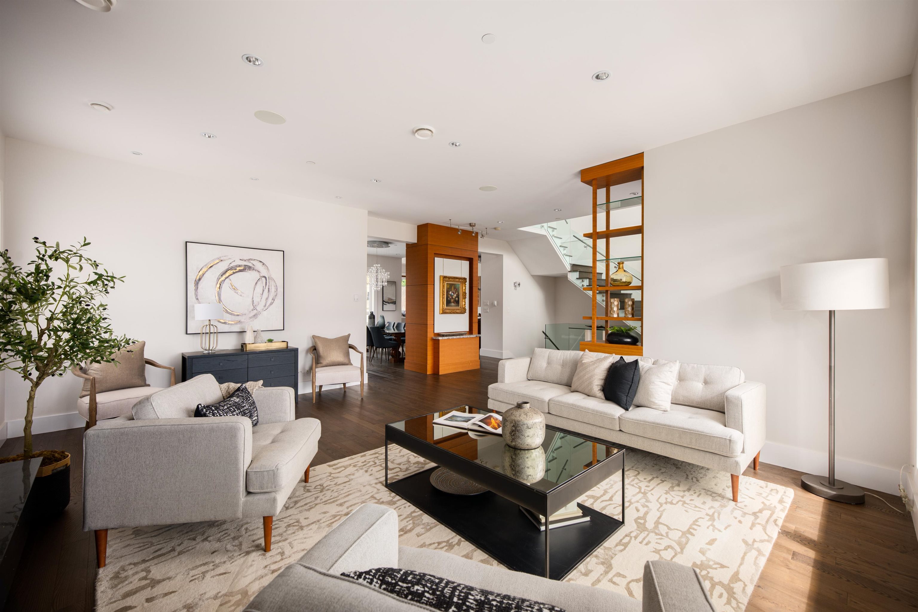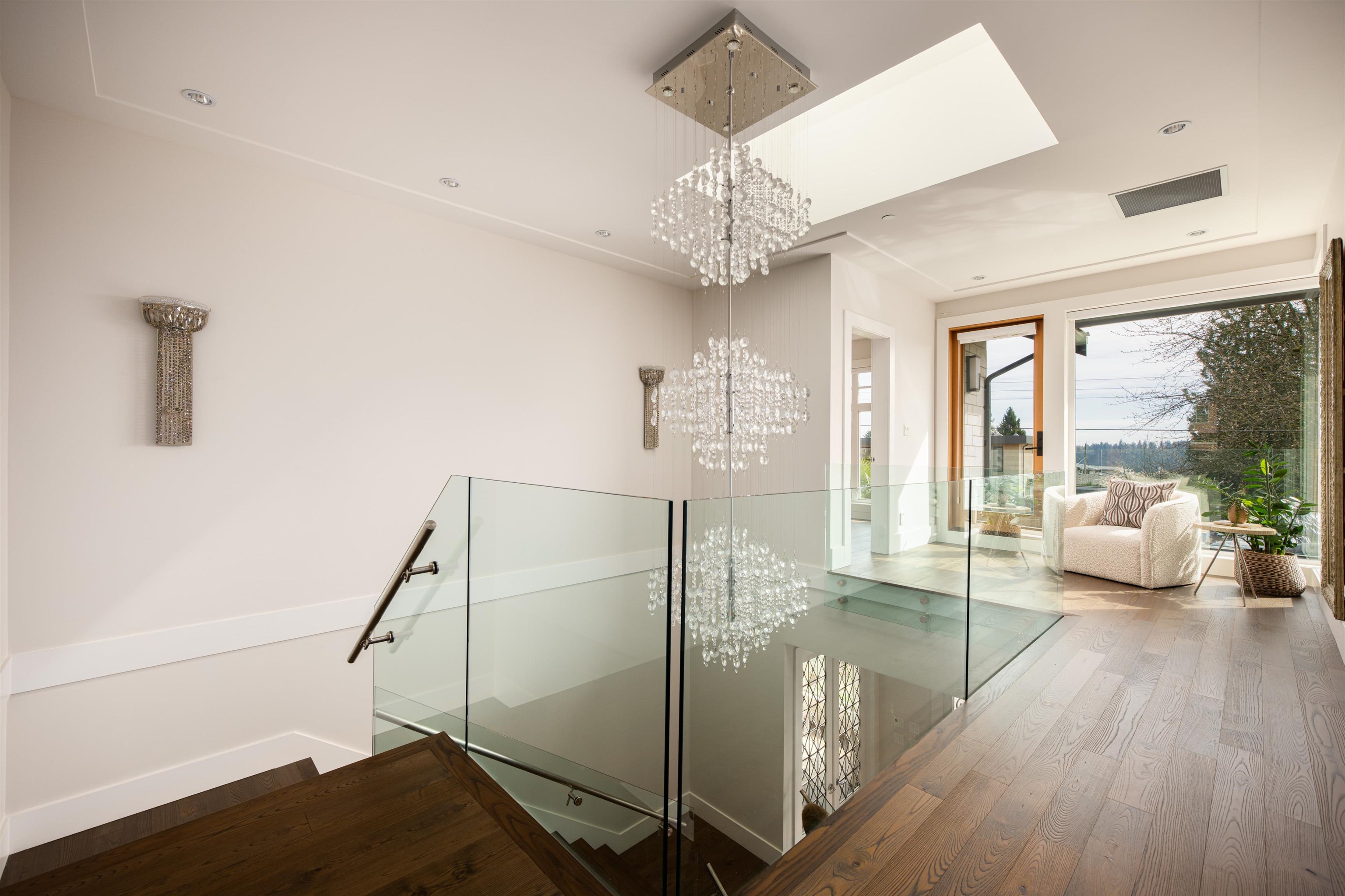 Perched on a sun-filled 9,000 SF flat lot, this stunning contemporary home offers over 5,000 SF of luxurious living with breathtaking views of Lions Gate Bridge, ocean, Stanley Park, and the North Shore Mountains. Vaulted ceilings and expansive windows flood the home with light, while the open-concept main floor features a chef’s kitchen with secondary kitchen and pantry, wine cellar, and built-in speakers -perfect for entertaining. With 4 bedrooms and 6 bathrooms, including a spa-inspired primary suite wit...