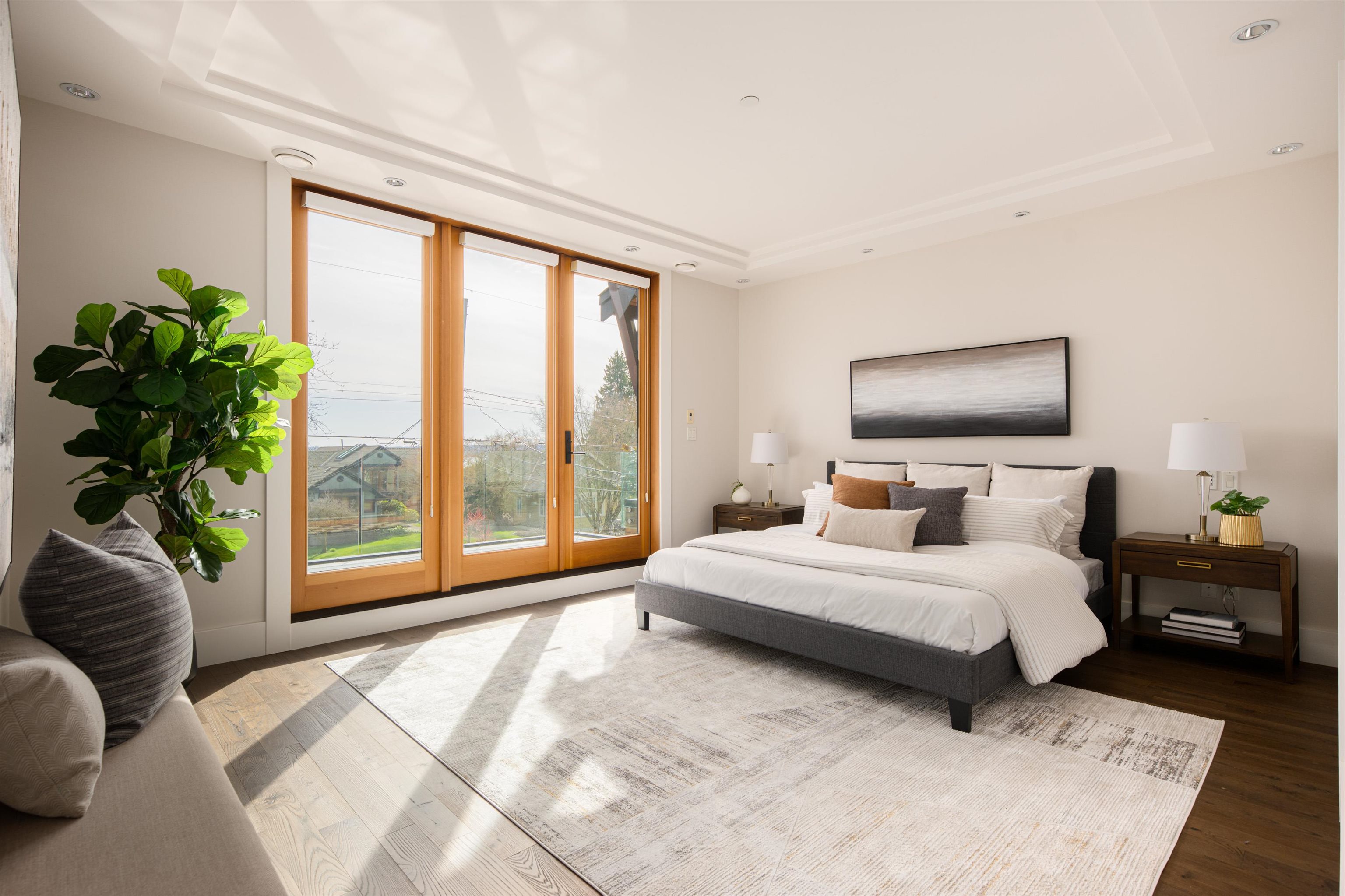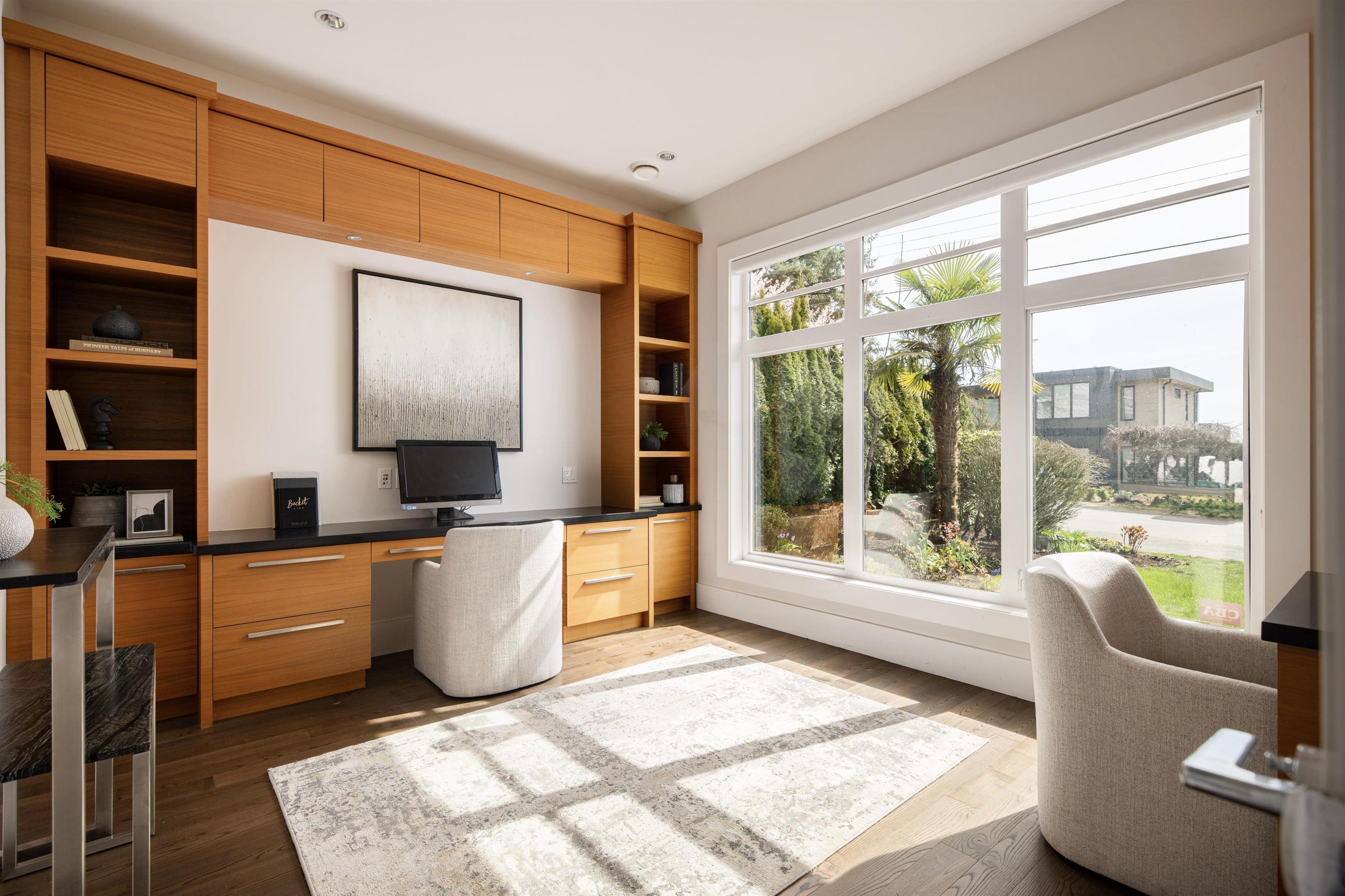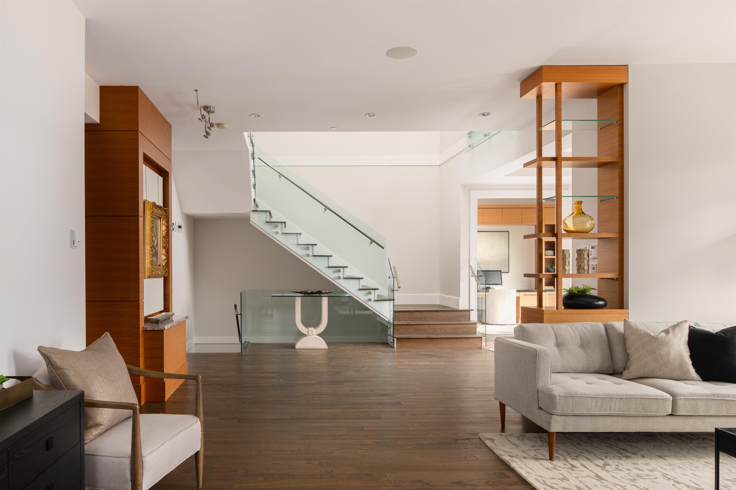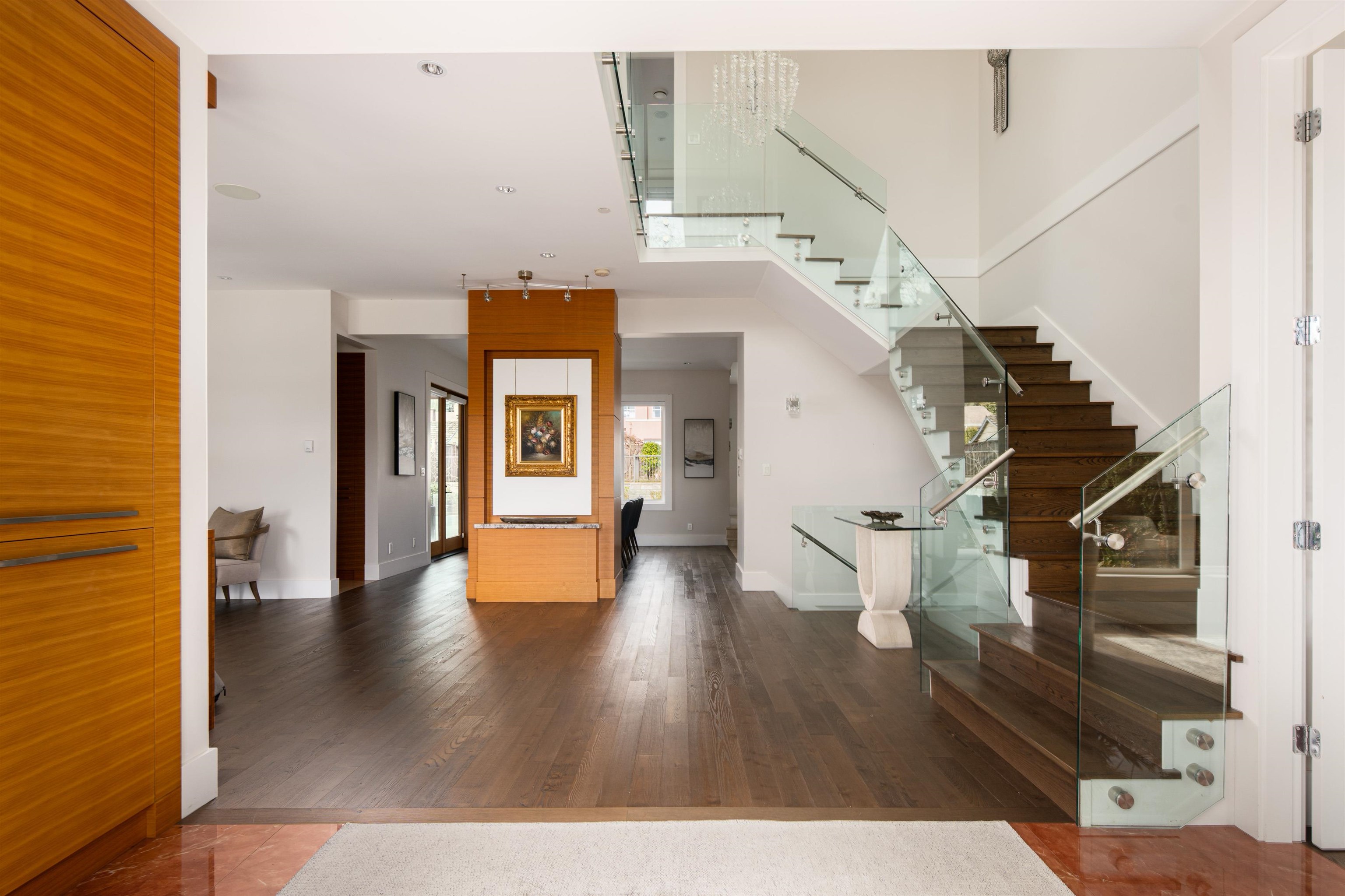 Perched on a sun-filled 9,000 SF flat lot, this stunning contemporary home offers over 5,000 SF of luxurious living with breathtaking views of Lions Gate Bridge, ocean, Stanley Park, and the North Shore Mountains. Vaulted ceilings and expansive windows flood the home with light, while the open-concept main floor features a chef’s kitchen with secondary kitchen and pantry, wine cellar, and built-in speakers -perfect for entertaining. With 4 bedrooms and 6 bathrooms, including a spa-inspired primary suite wit...