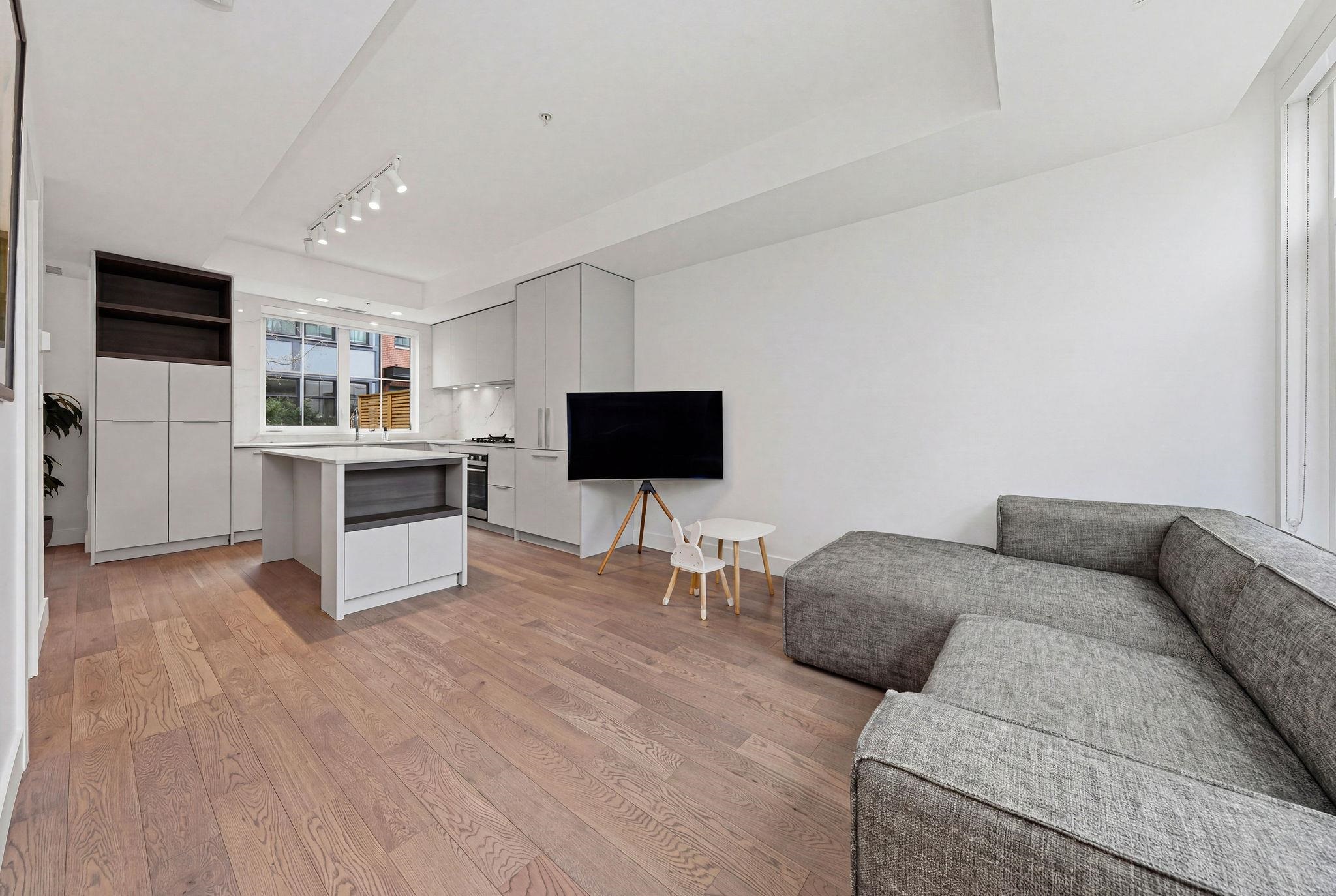 An elegant, park facing townhome in Lions Gate Village offering over 1,800 sqft of refined living. This 4-bedroom plus rec room residence seamlessly balances residential tranquility with urban convenience. The main level is anchored by the signature Cressey Kitchen, flowing effortlessly into the dining area and a generous patio - ideal for entertaining. The primary suite features vaulted ceilings, a walk-in closet, and a spa-inspired 5-piece ensuite, creating a bright and airy retreat. Enjoy direct access t...
