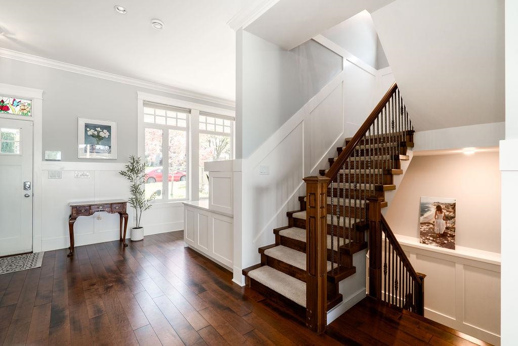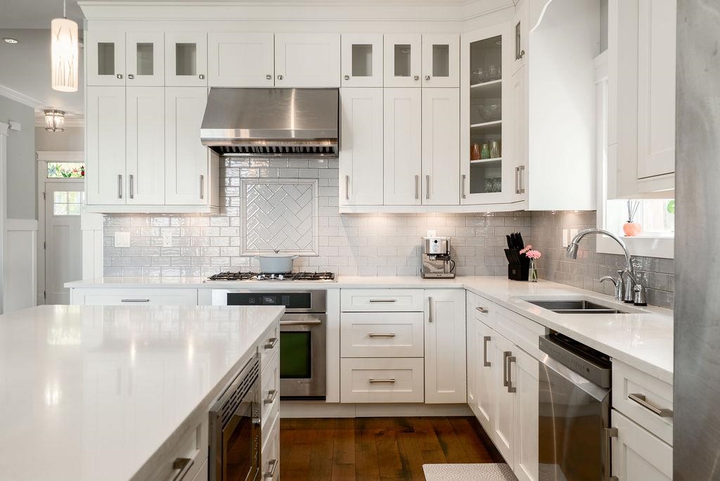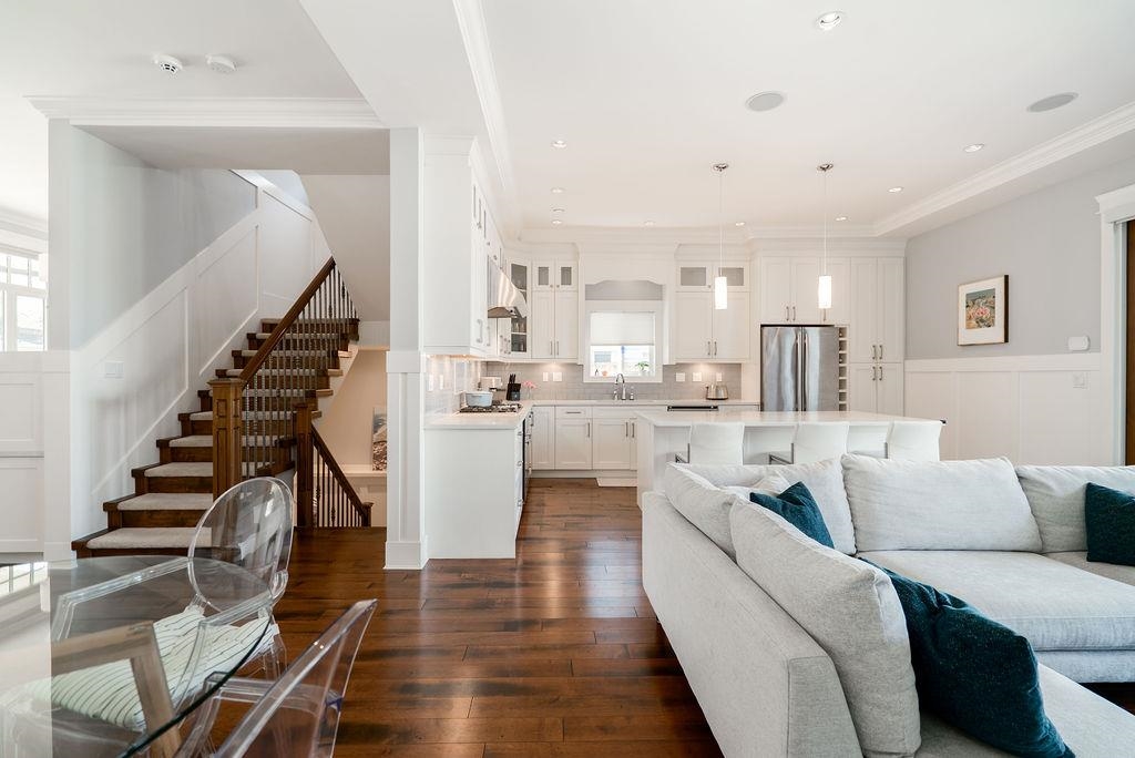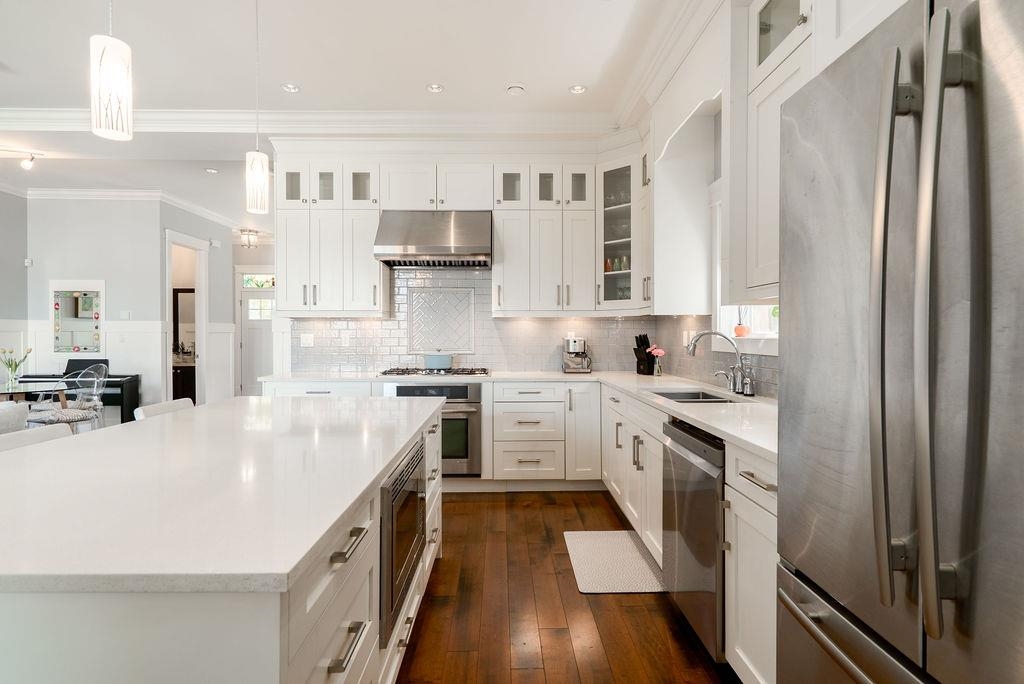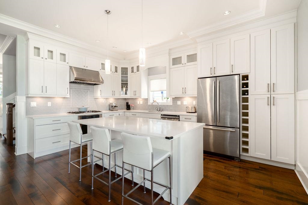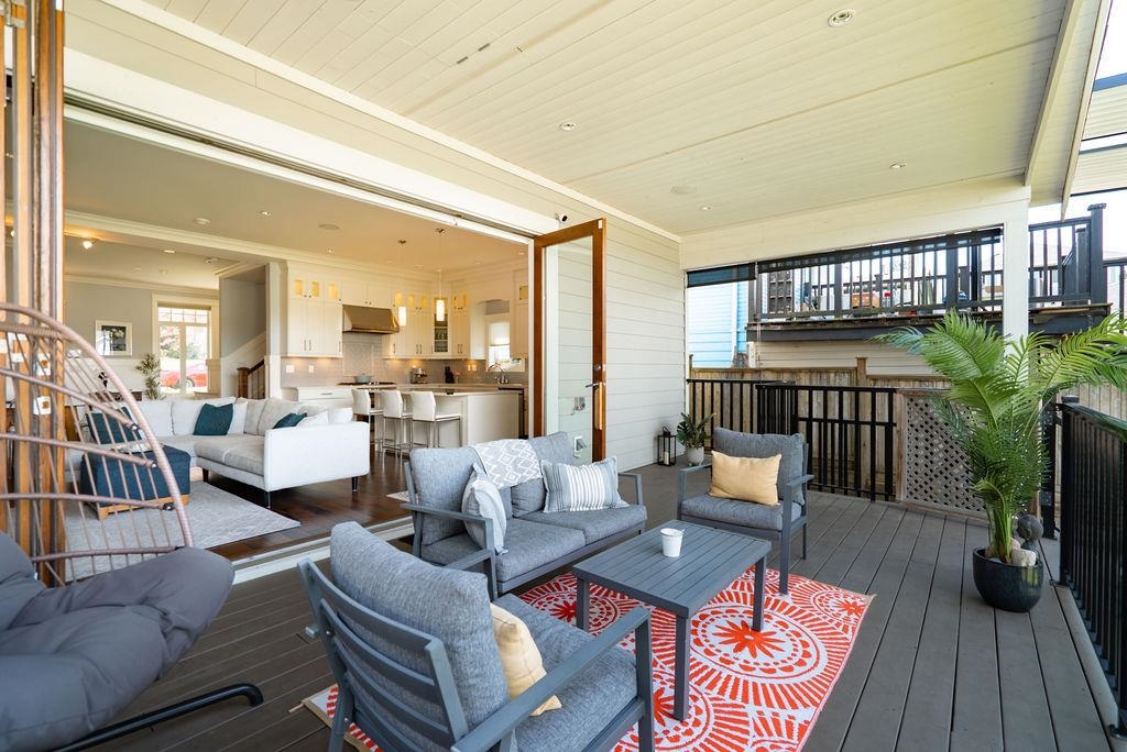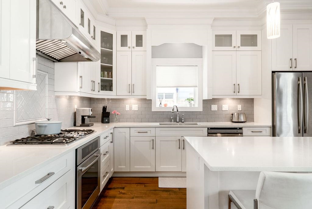 Custom built in Glenbrooke North! This newer (2014) 4 bed, 3.5 bath home has been meticulously maintained. Bright, airy main with stunning 12 ft accordion doors opening to a large sundeck overlooking a beautifully landscaped garden. Three bedrooms up plus a self contained 1 bed legal suite below with separate entrance and laundry. Entertainer’s kitchen with quartz counters, soft close cabinetry, and JennAir appliances. Dedicated office/den on the main, perfect for working from home. Spacious primary with pr...