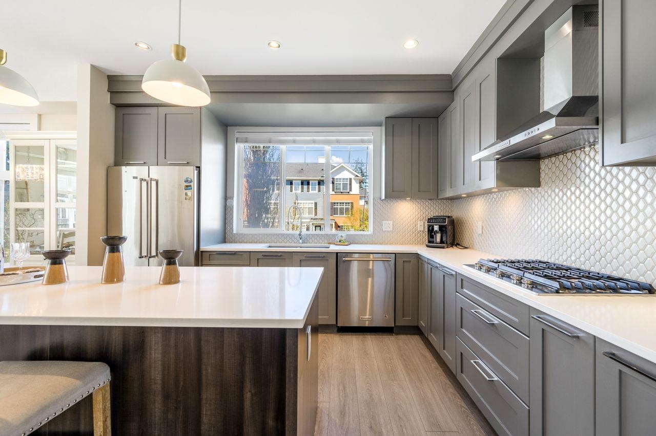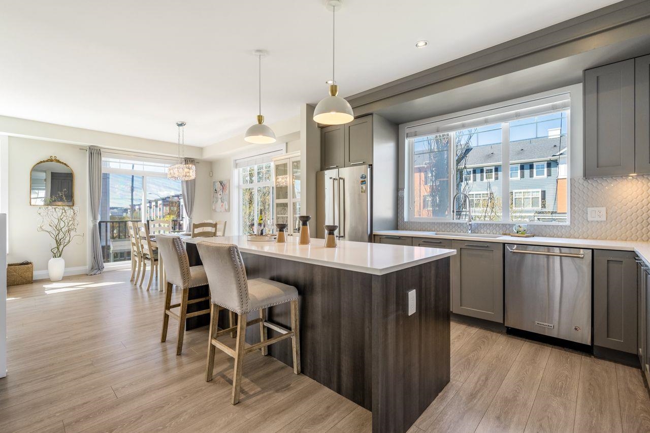 Evolve! One of the best locations in the complex! This exclusive 4 bed/4 bath, 2,100+sqft. corner townhome in sought-after Grandview Heights was the former showroom, showcasing premium finishes and thoughtful upgrades throughout with air conditioning. Expansive windows on three sides flood the home with natural light. The well-appointed kitchen features stainless steel appliances, quartz countertops, and a gas stove. The family room includes a cozy fireplace and sliding doors opening to a spacious sundeck. ...