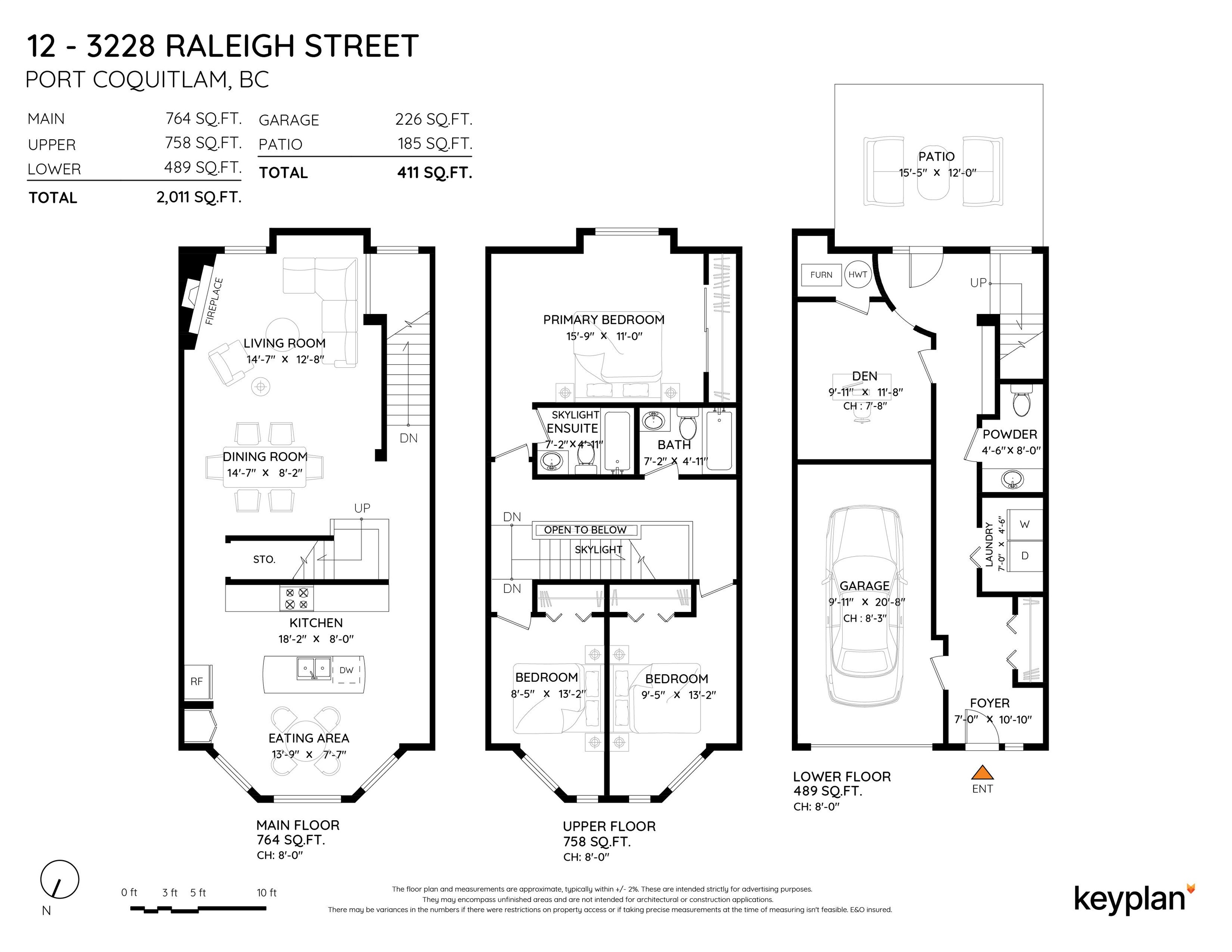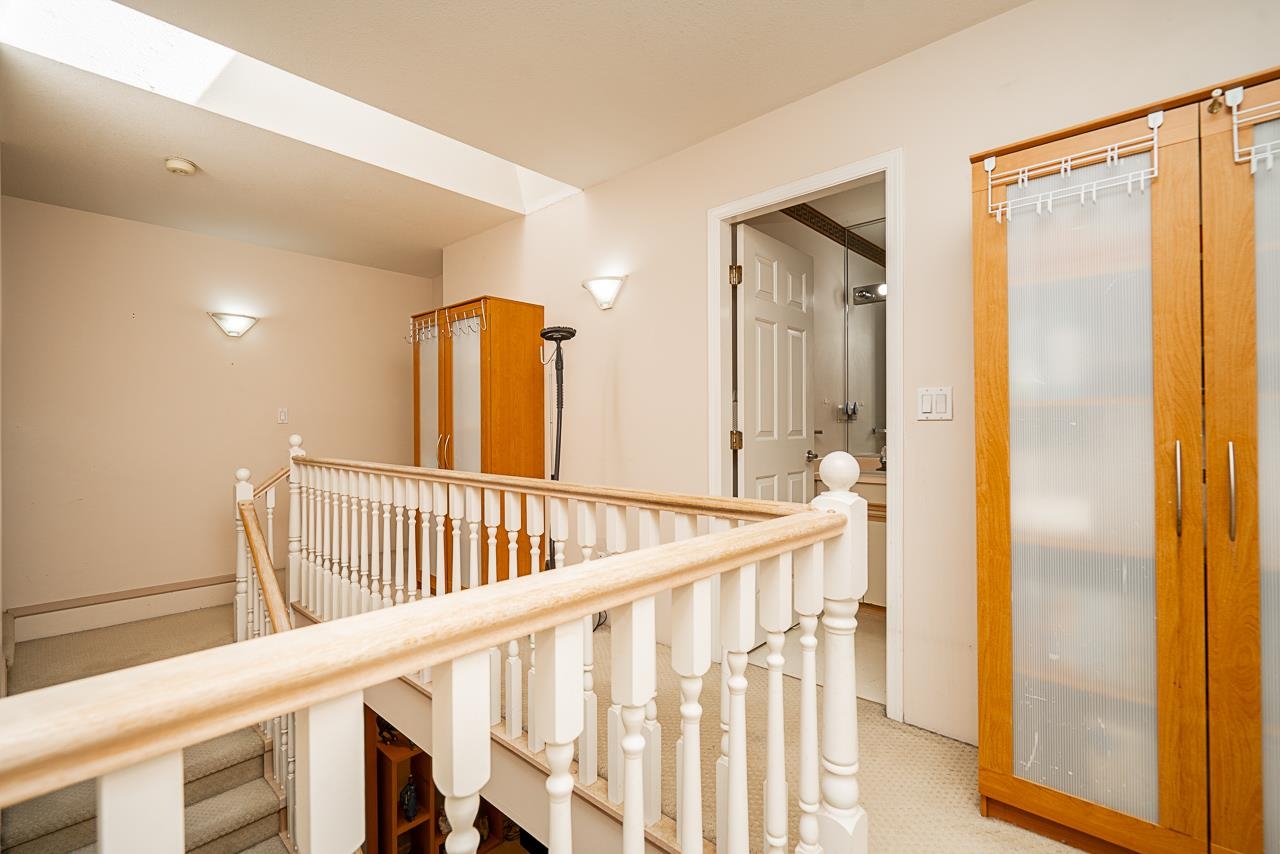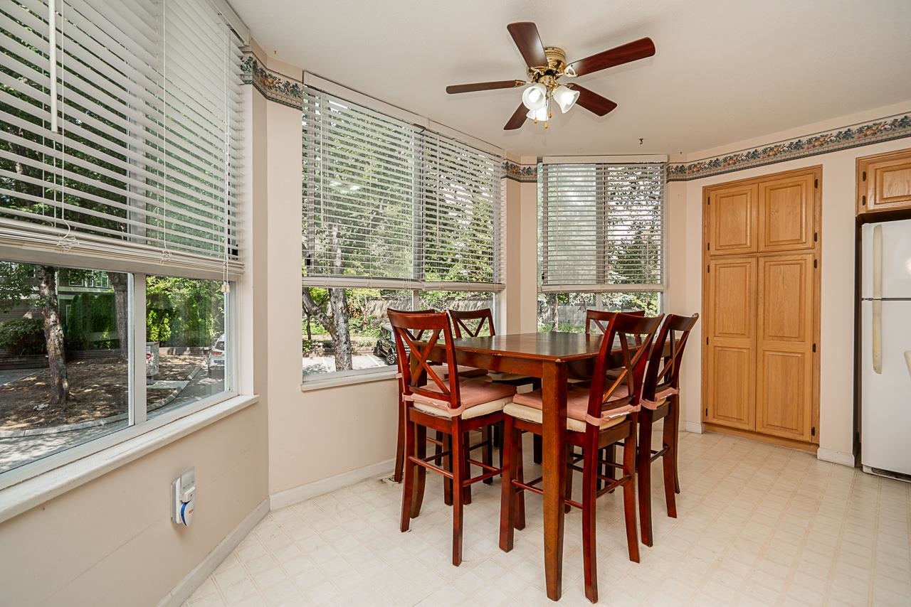 Extremely spacious 2011 Sq Ft townhome at Maple Creek! Featuring 3 bedrooms upstairs with a massive primary bedroom, kitchen & eating area separated from the living & dining area on the main and a den & a powder room downstairs. One car garage. Peaceful & private back patio space backing onto a salmon stream & trees. Walk to Coquitlam River which includes hikes and trails. Short Drive to Costco, Carnoustie Golf Course, Coquitlam Public Library, Lions Park, Town Centre Park, and Coquitlam Centre; Which inclu...
