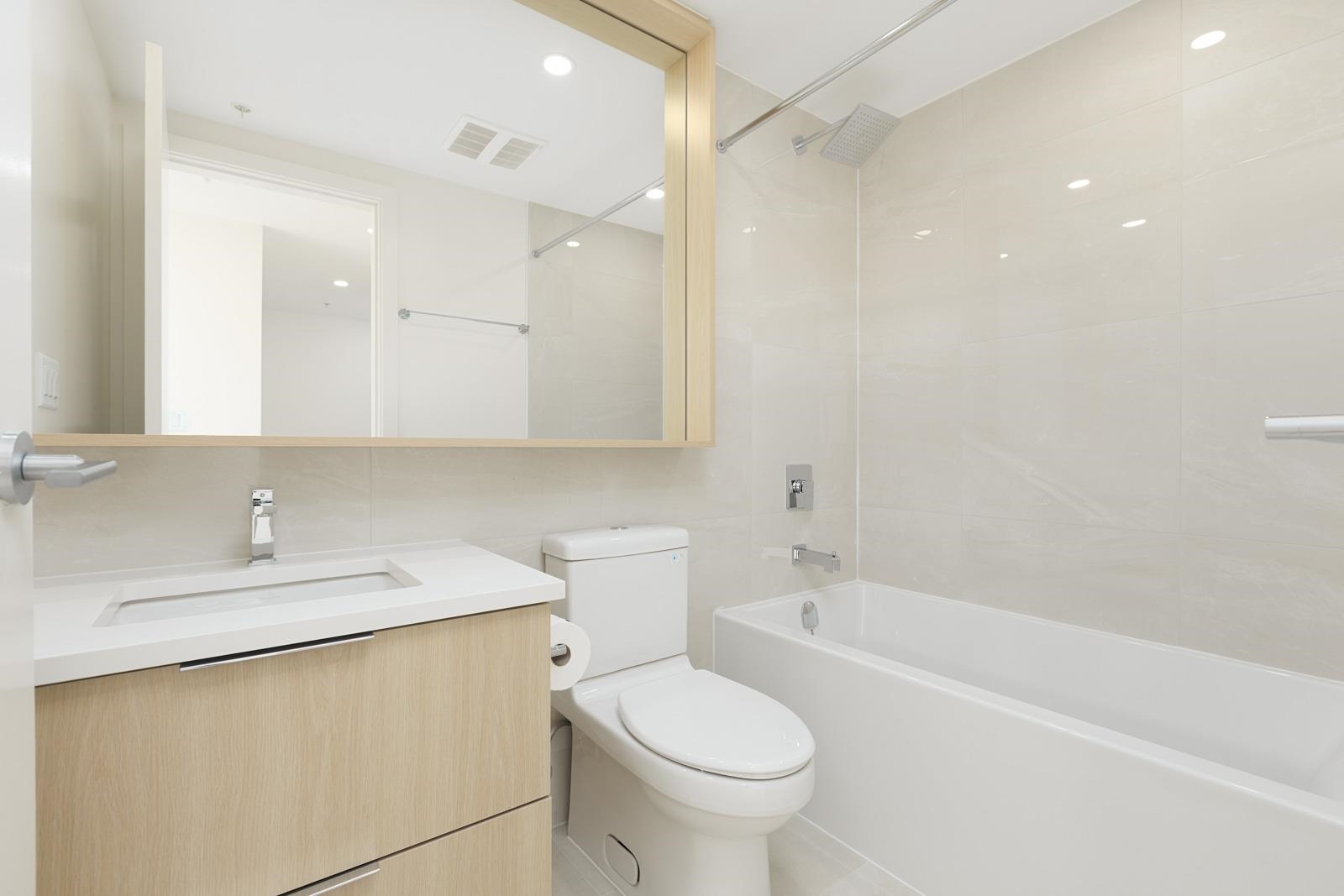 Welcome home to Linea, situated in the sought-after Surrey area. This luxury condo features wide-plank laminate flooring throughout, 8'8" ceilings, and floor-to-ceiling windows that flood the home with natural light. Relax on the 250 sq ft wraparound balcony, overlooking mountain views. The gourmet kitchen is thoughtfully designed with custom cabinetry, integrated Blomberg and Fulgar Milano appliances, Caesarstone quartz countertops, and an island with a waterfall edge. Residents of Linea have access to 14,...