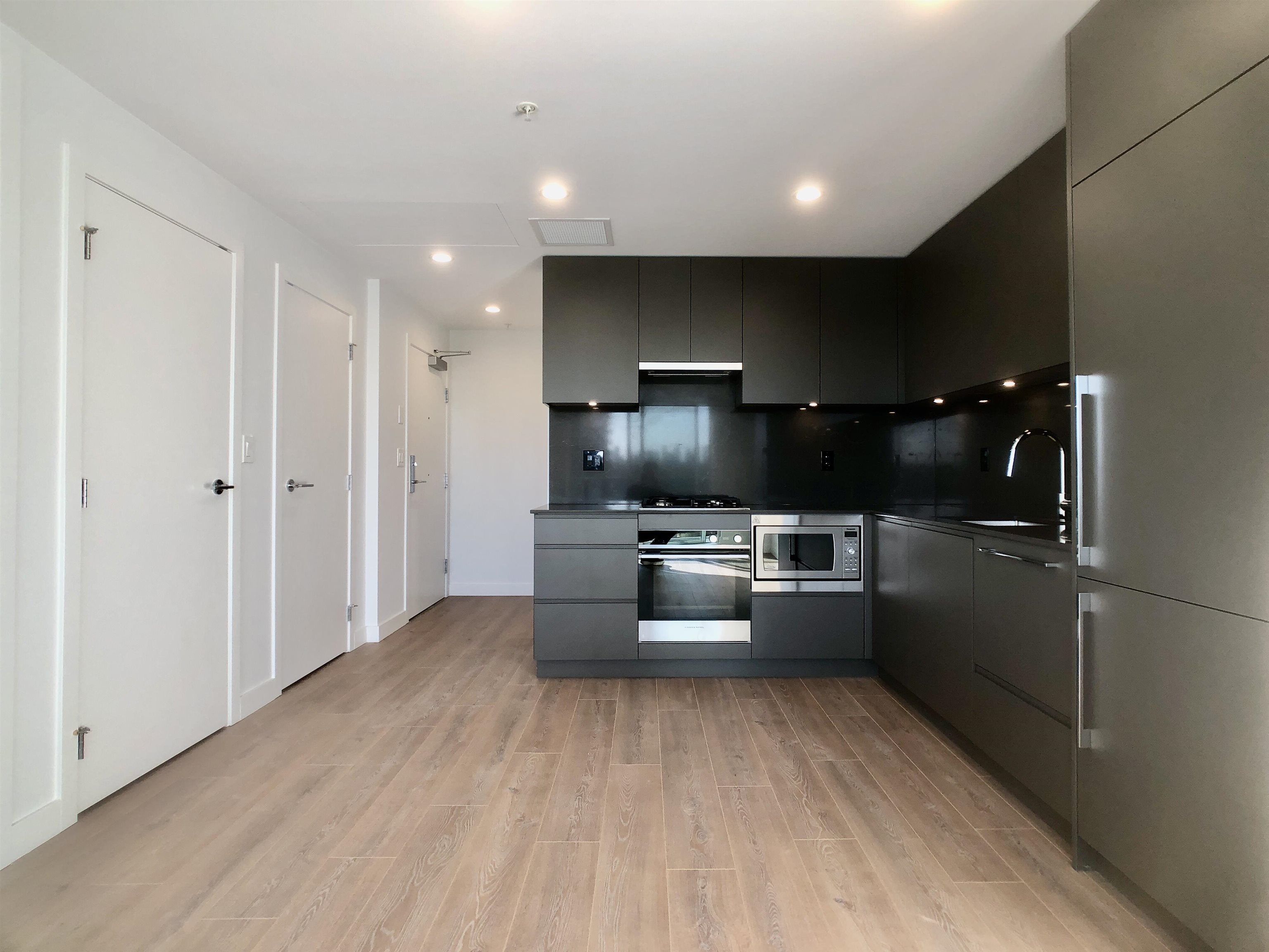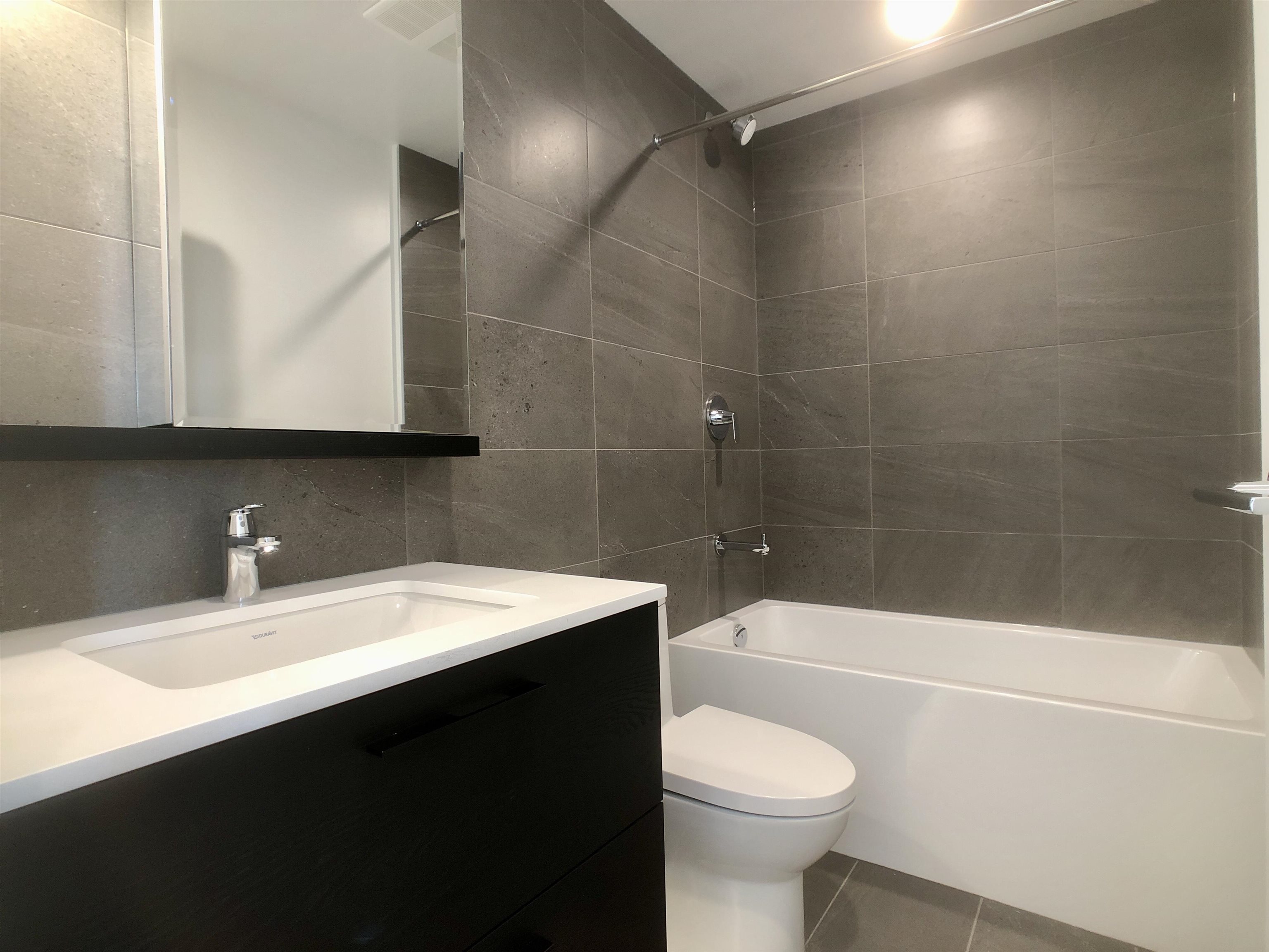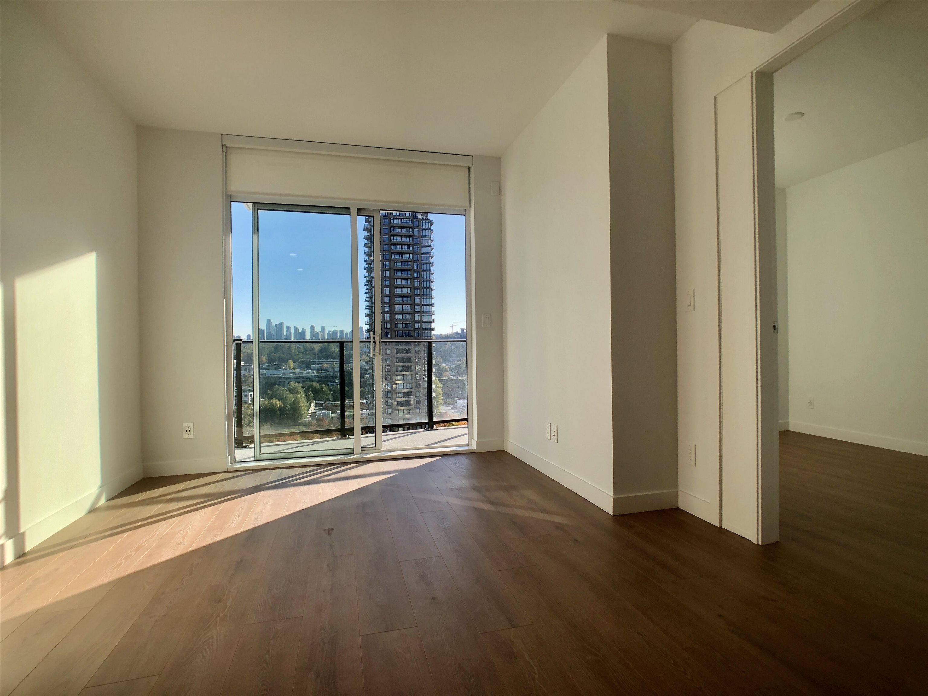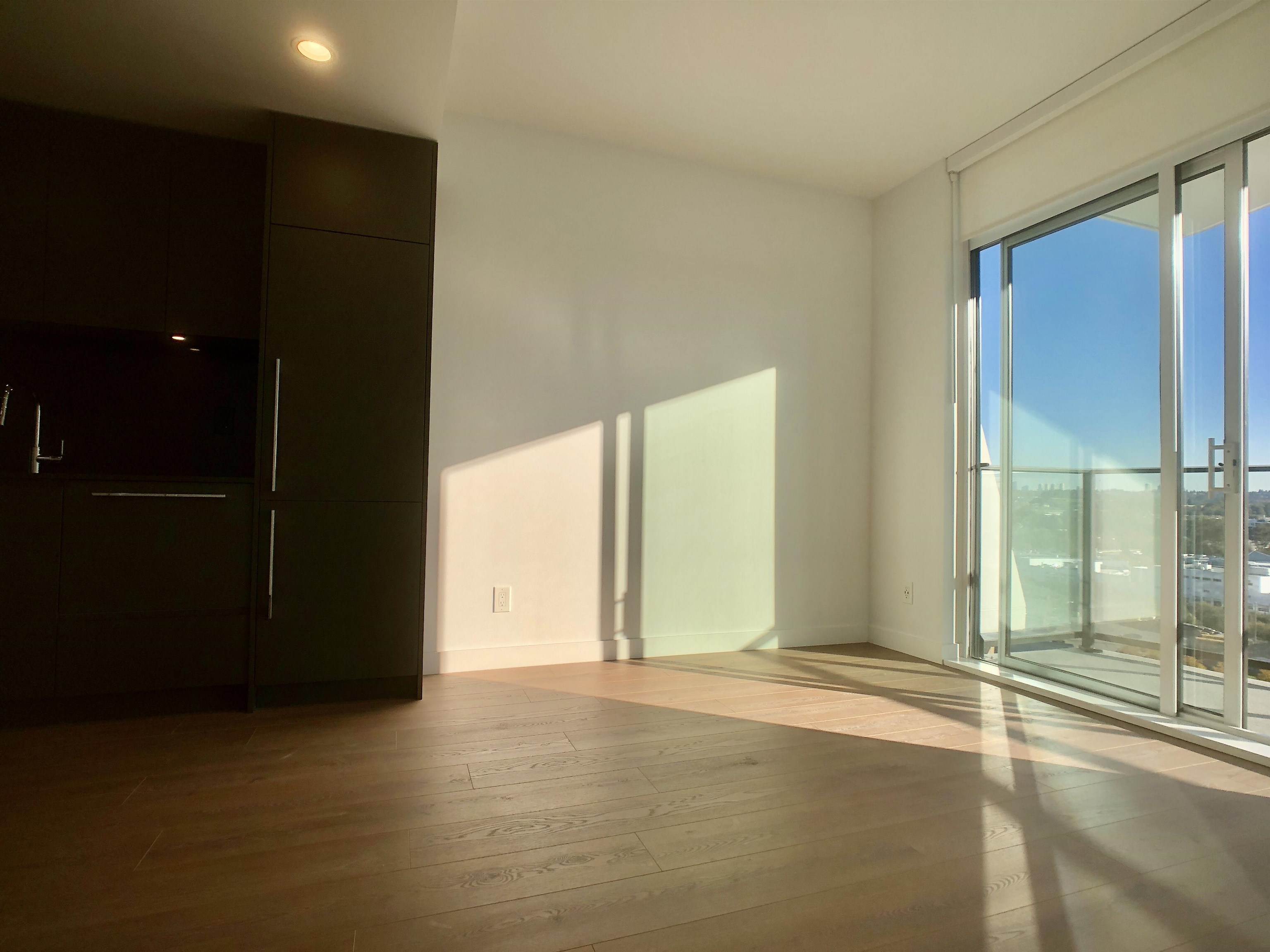 Fairly new concrete high rise in Brentwood of Burnaby North, just a block from Gilmore SkyTrain station. Most daily errands can be done by walking. Building is called Akimbo, and it is a modern design condo with concierge service, exercise room, party room, rooftop garden, parcel lockers, guest suites and a meeting room. This unit is on the 12th floor, South facing with lots of natural light. Wood flooring throughout, integrated appliances, fan coil unit for heating and cooling. Rent does not include electr...