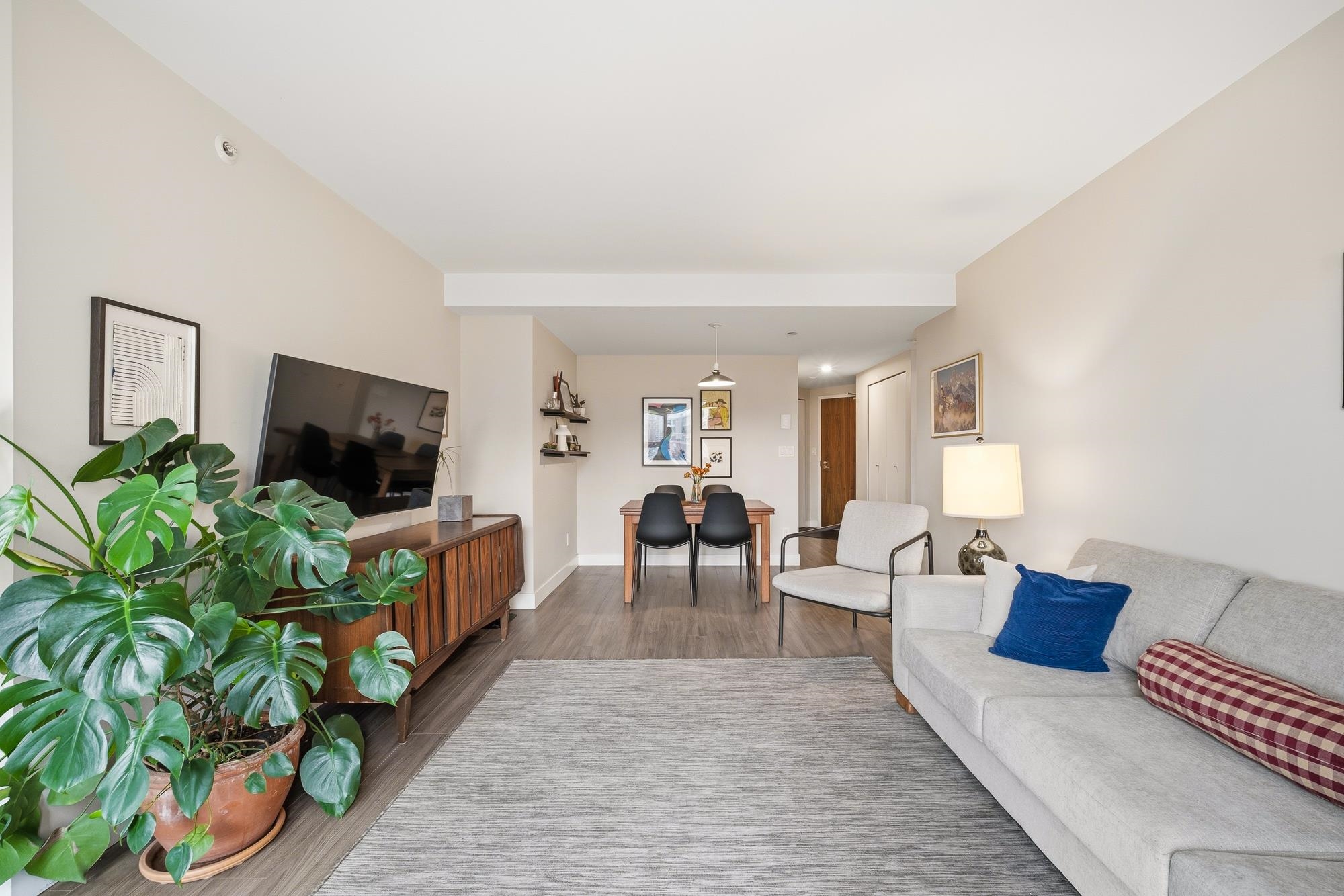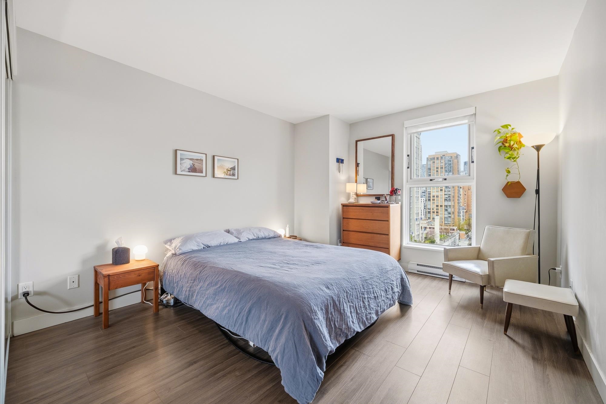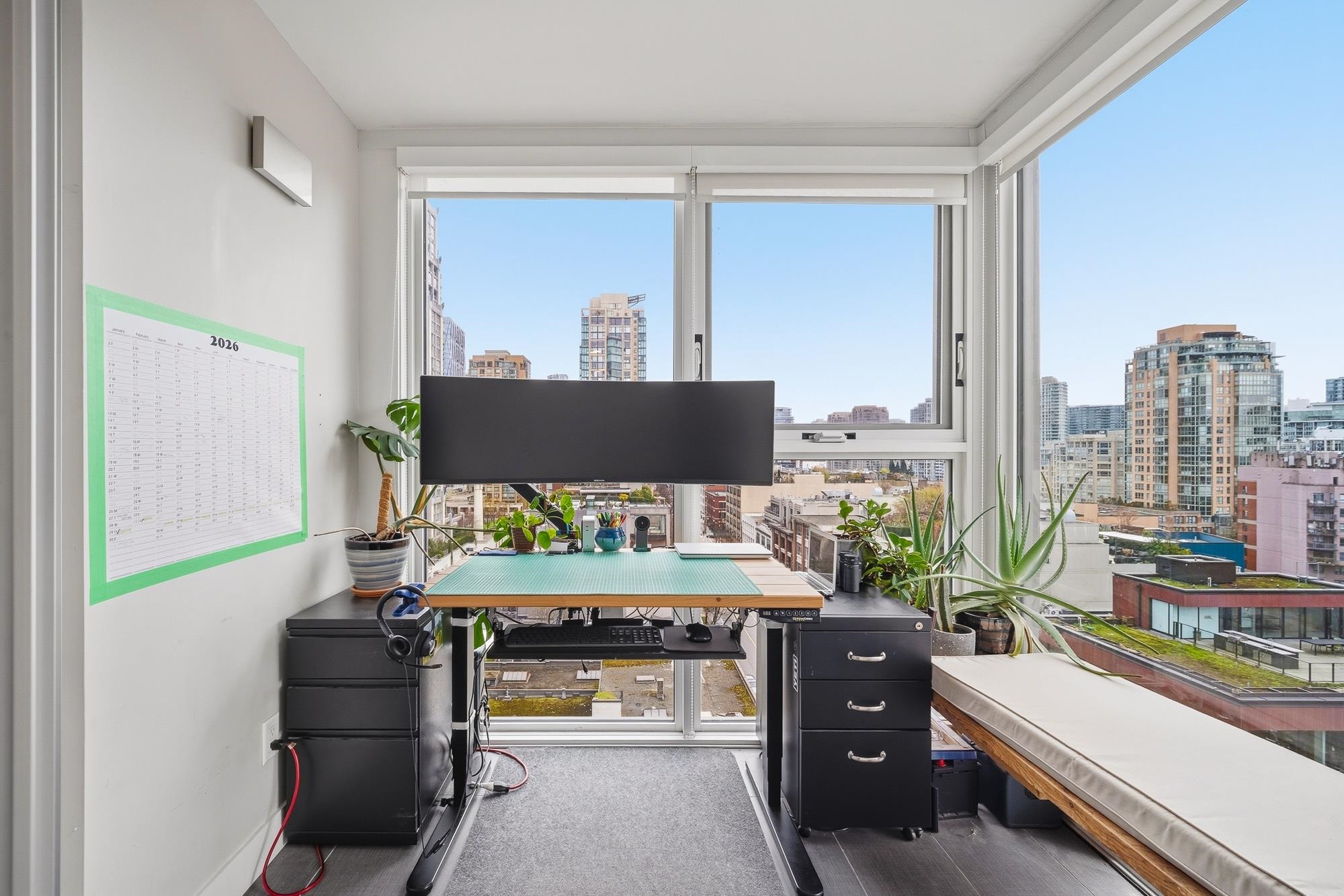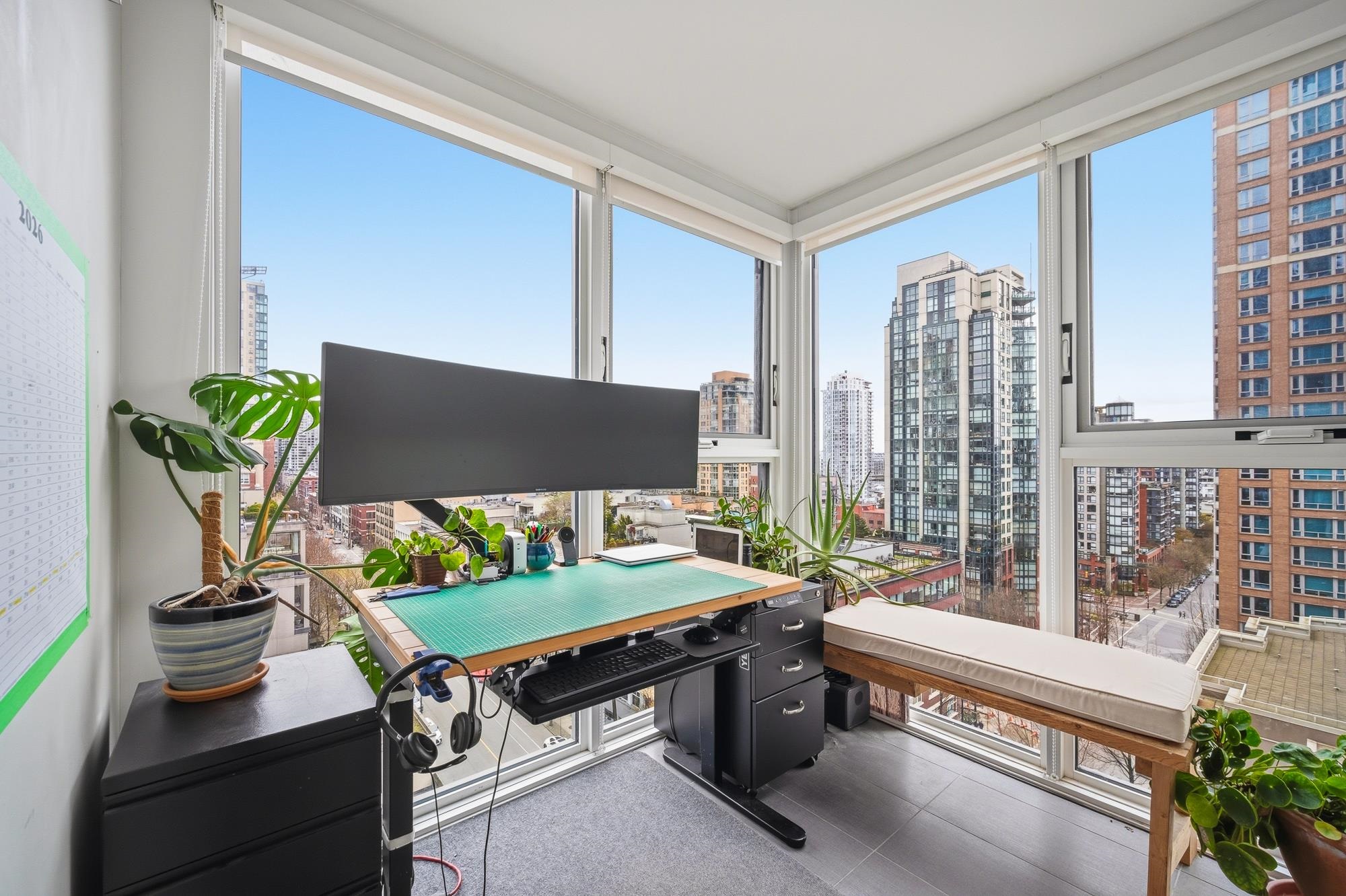 Perched in the heart of Yaletown, this exceptional 1 Bed + DEN home at Pacific Point II offers breathtaking unobstructed views of False Creek, David Lam Park, & the city skyline through expansive windows that flood the home w/ natural light. Thoughtfully designed w/ laminate flooring, this spacious open-concept living area flows into a refined galley kitchen featuring premium s/s appliances, quartz countertops, & custom cabinetry. The versatile DEN w/ floor-to-ceiling glazing is ideal as a bright home offic...