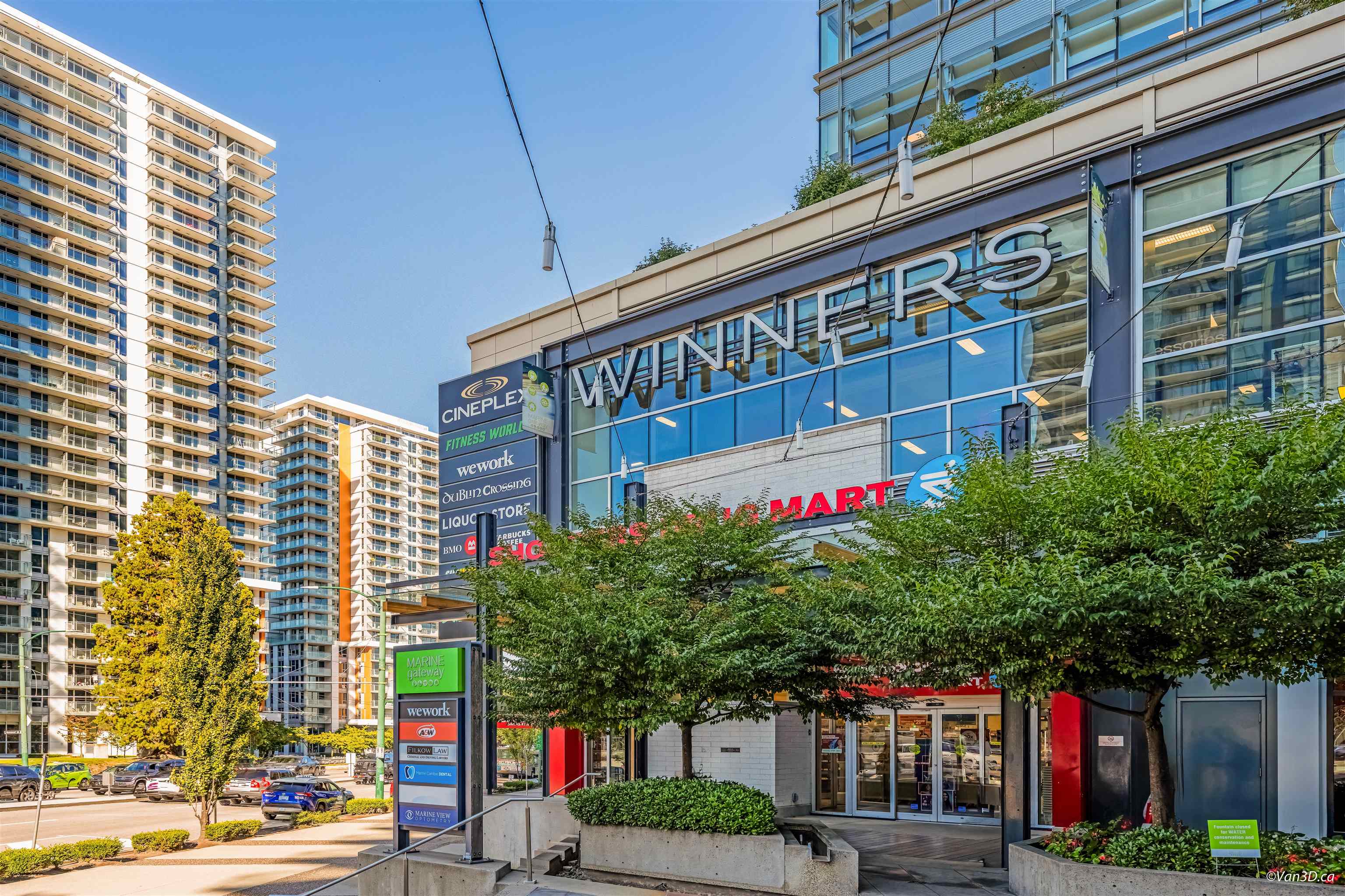 Marine Gateway by PCI Developments offers everything at your doorstep! This LEED gold community presents a 1 BED residence with a larger covered balcony & spectacular west-sider sunsets. The gourmet galley kitchen is equipped with stone counters, full-height cabinetry, integrated Blomberg appliances, task lighting & smooth-top stove. In-suite laundry & strong add practicality. Building highlights include a lounge, rooftop terrace w/BBQ & playground. Just downstairs, you'll find Cineplex, T&T, banks, Shopper...