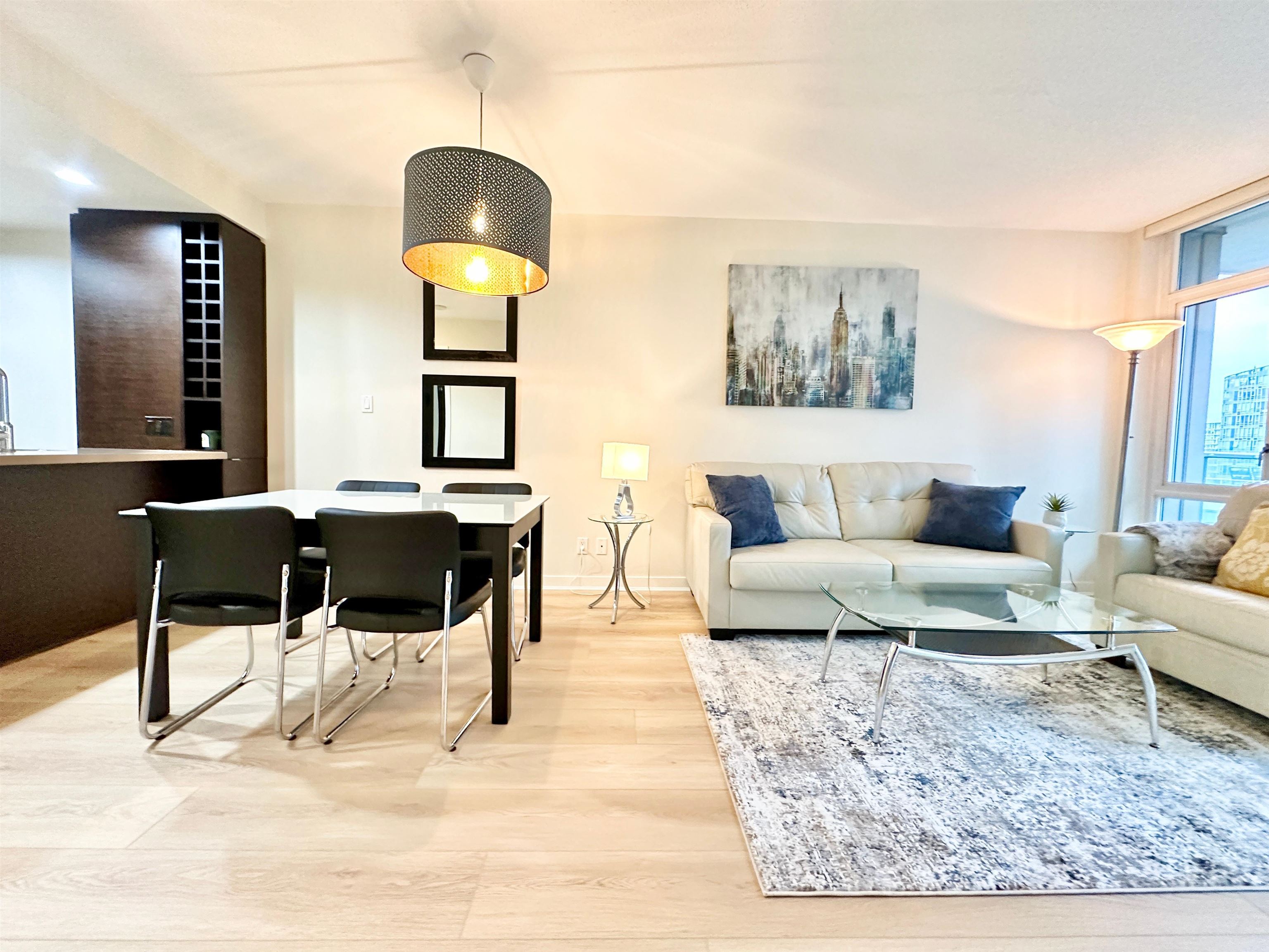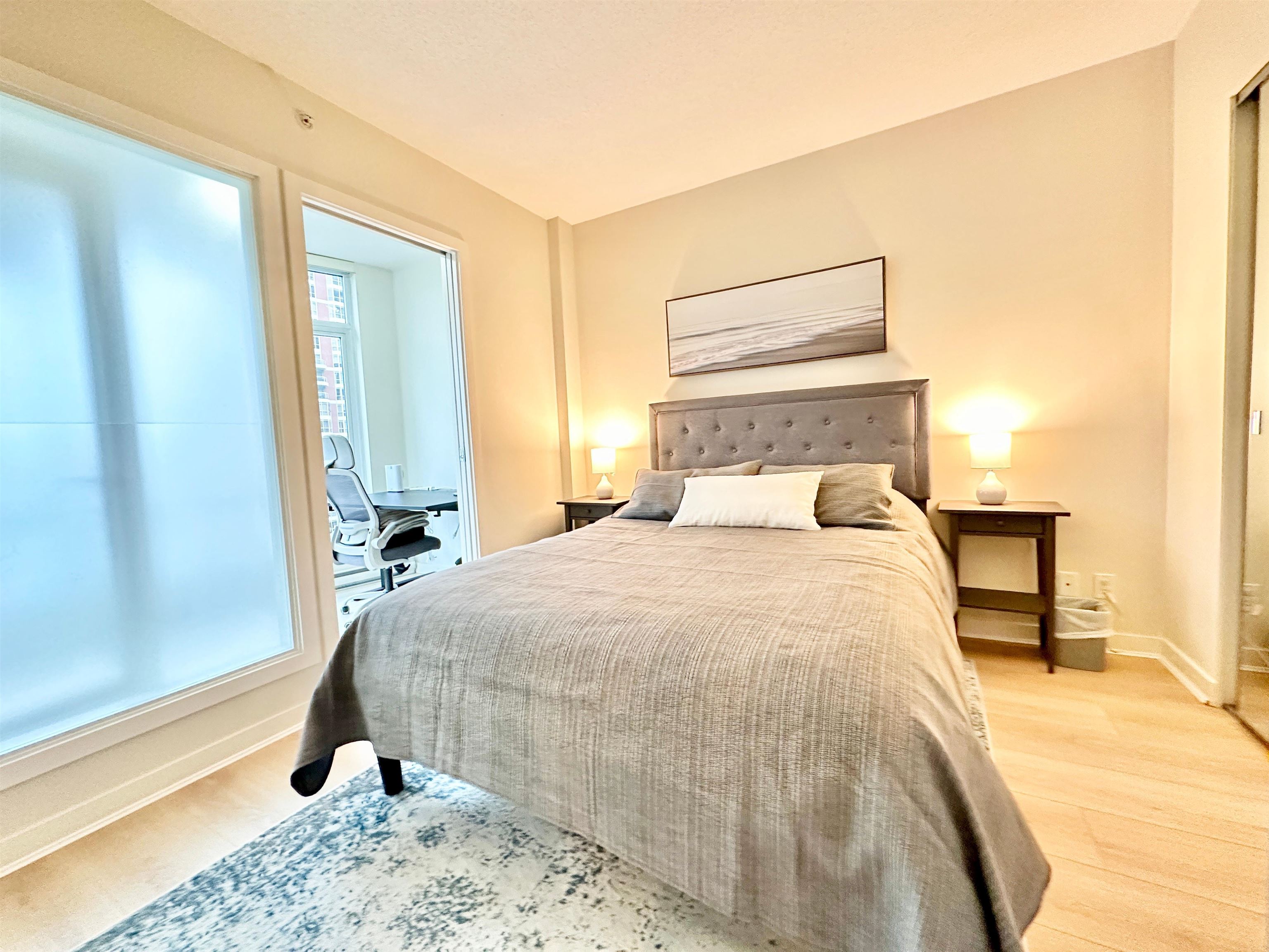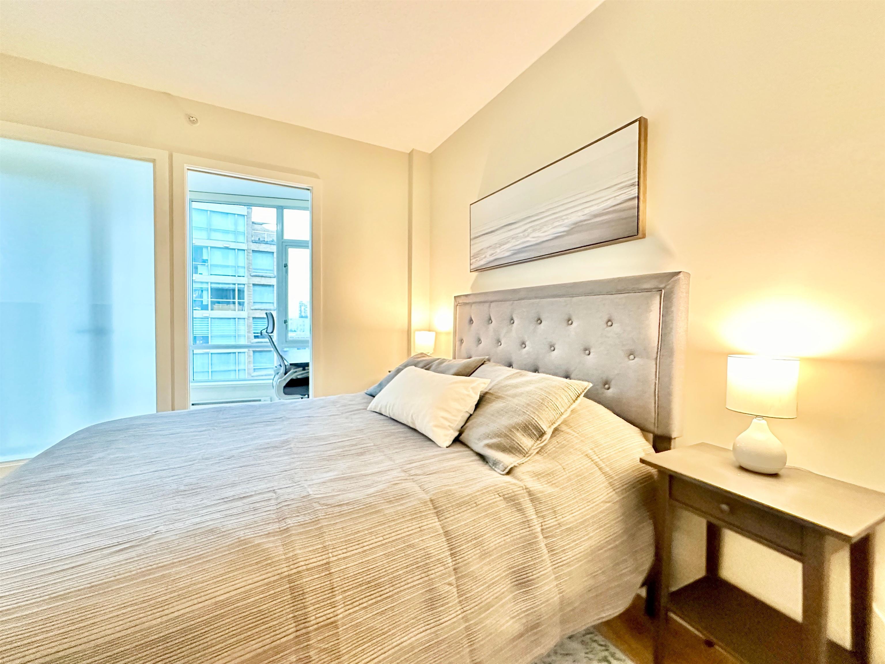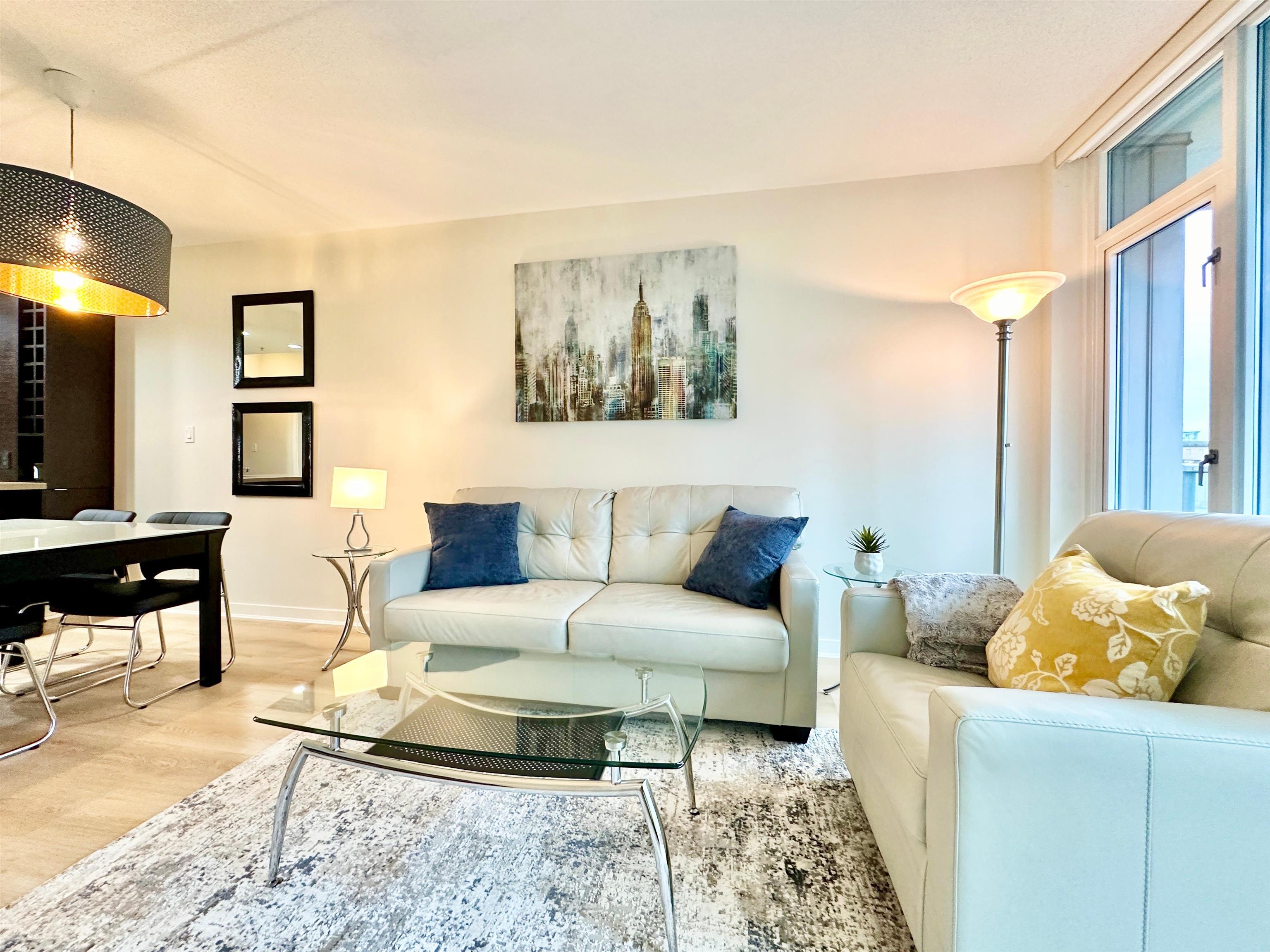 Discover the pinnacle of urban living in this elegantly furnished condo in Vancouver. Spanning 690 square feet, this one-bedroom, one-bathroom residence offers a perfect blend of modern amenities and sophisticated design, ideal for those who appreciate both comfort and style. Step inside to find a bright and inviting space, enhanced by its south-facing orientation and stunning city views. The open-concept living area is complemented by an adjoining office den, providing a versatile space for work or leisure...