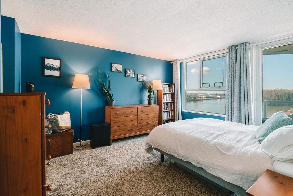 Waterfront living with sweeping river and city views from north to south. This spacious 2 bedroom + extra large den corner suite offers a large living room and a dining area perfect for hosting. The large den/office could easily be a 3rd bedroom or opened up for additional family space! Both bathrooms have been freshly renovated, and the home features stainless steel appliances, granite countertops, in-suite laundry, and a covered balcony with stunning river views you can enjoy year-round. Very well-maintai...
