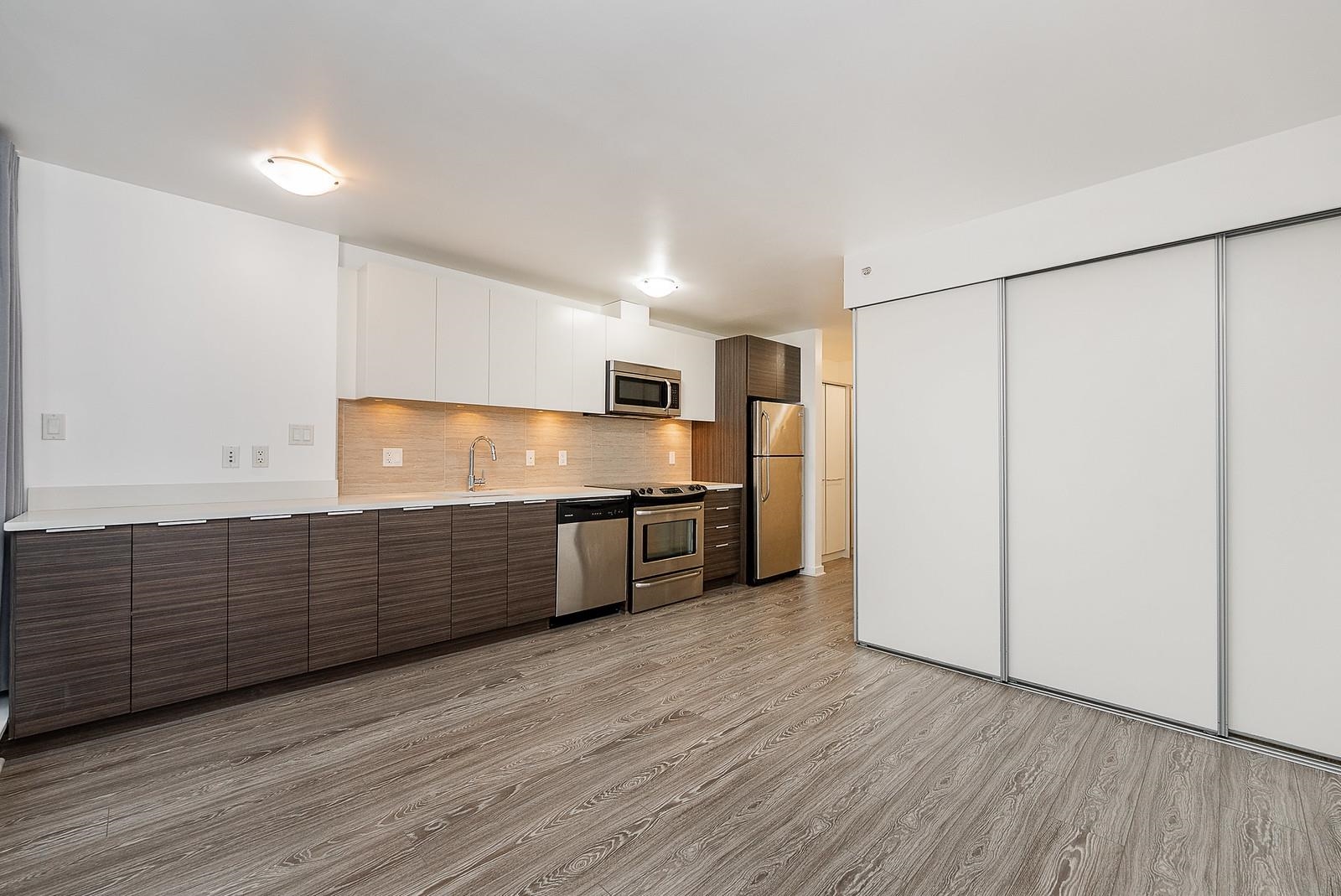THIS HOME OFFERS A VERY FUNCTIONAL 1-BEDROOM PLUS DEN WITH SLIDING WALL SYSTEM LOCATED IN DOWNTOWN SURREY. FEATURES QUARTZ COUNTERTOPS, STAINLESS APPLIANCES. GREAT SOUTHERN VIEWS ON YOUR 13' X 6' DECK. COMPLETE WITH GORGEOUS ROOF TOP DECK AND BBQ AREA, LOUNGE PARTY/ROOM. WAVE FEATURES CUTTING-EDGE ARCHITECTURE, WITH EACH FLOOR CURVED DIFFERENTLY THAN THE ONE IMMEDIATELY ABOVE OR BELOW IT, IMPARTING A GRACEFUL WAVE SHAPE TO THE ENTIRE BUILDING. CONVENIENTLY LOCATED IN SURREY DOWNTOWN, CLOSE TO SKYTRAIN SURRE...
