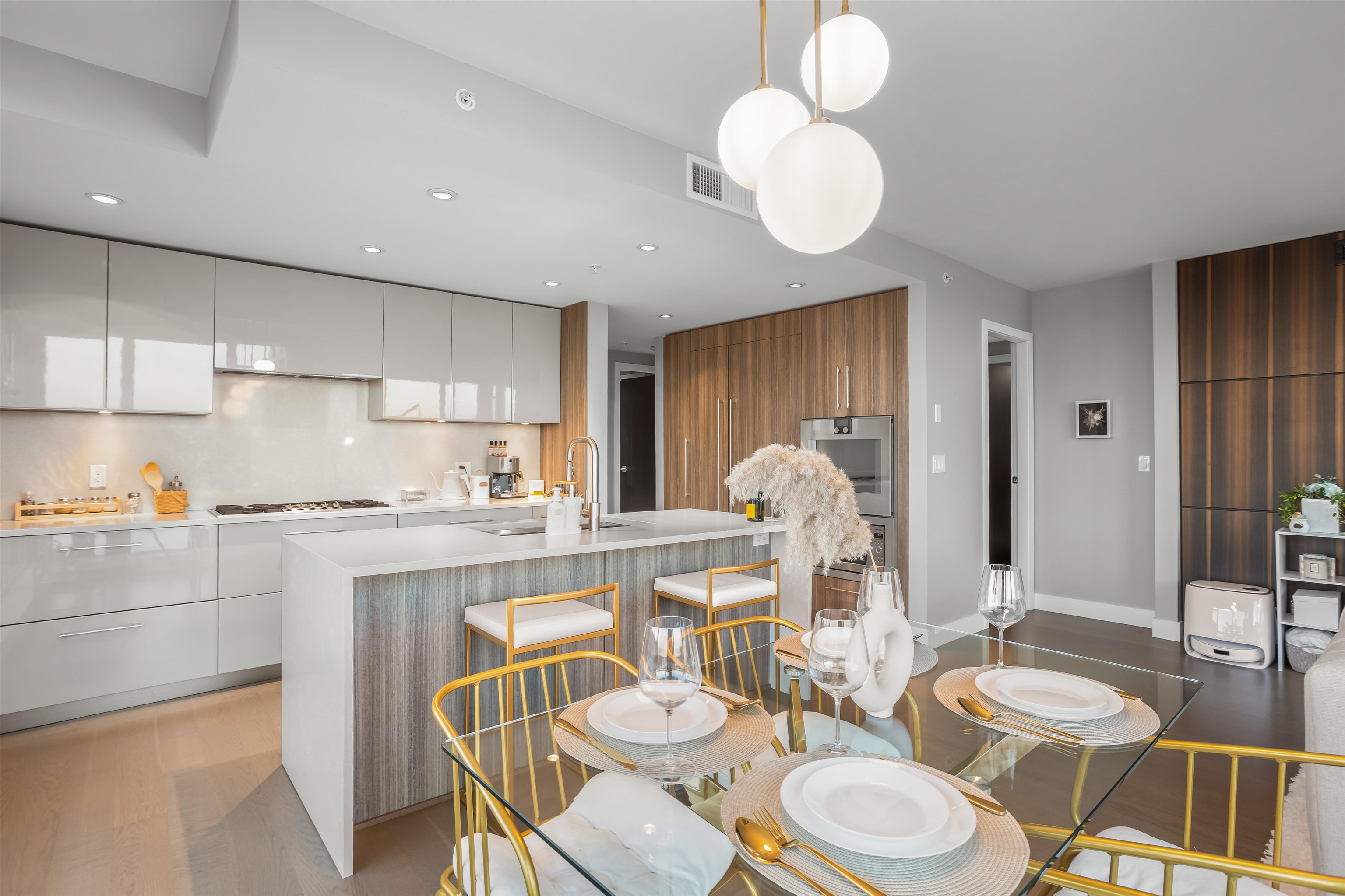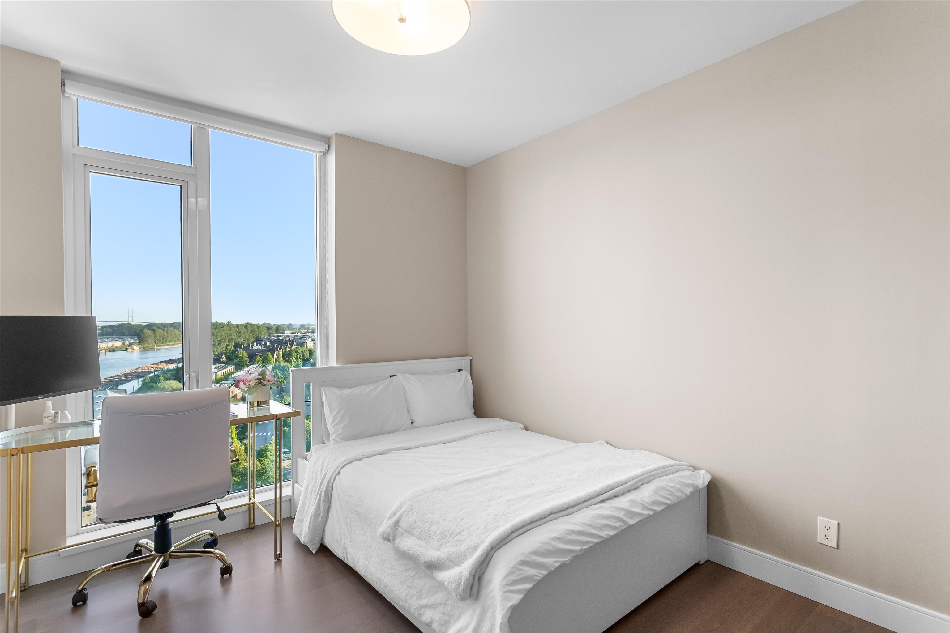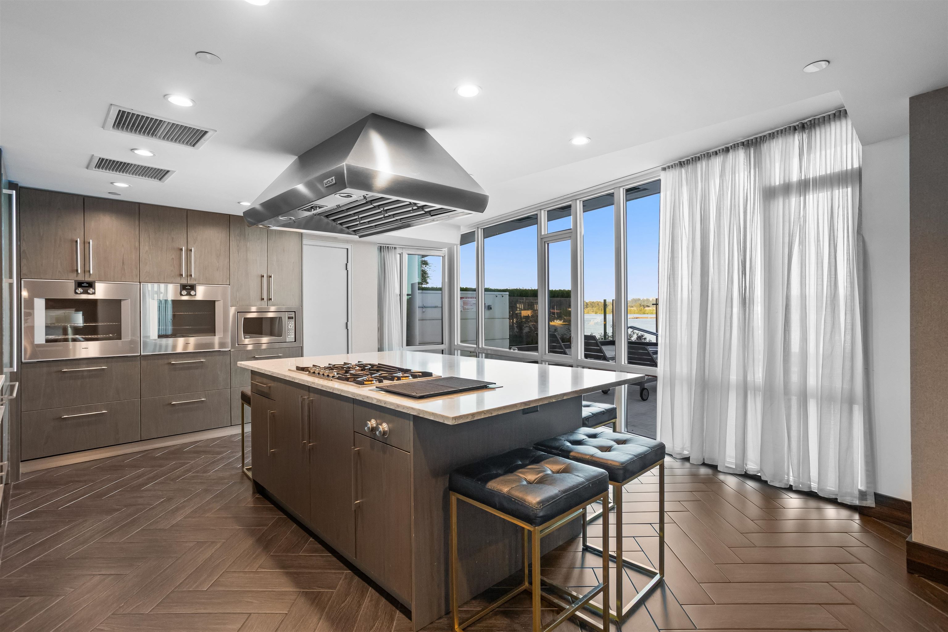 Welcome to The Peninsula, where riverfront living meets everyday luxury. This beautifully maintained CORNER residence is filled w/ natural light + showcases breathtaking SE views of the Fraser River through bright floor-to-ceiling windows. 2 bed 2 bath 1,104 sf + 72 sf balcony, the home features premium Gaggenau appliances, hardwood flooring, 5-piece ensuite + newer laundry appliances. Enjoy 15hr concierge service, fitness centre, theatre room, steam room, entertainment lounge, guest suites + 1 parking incl...