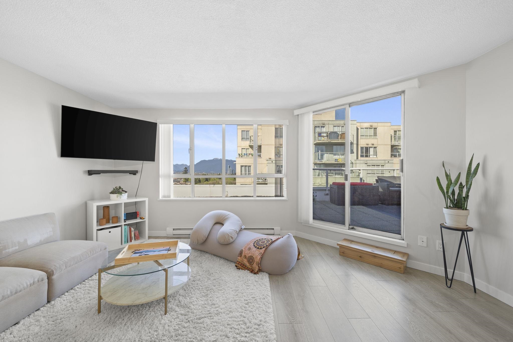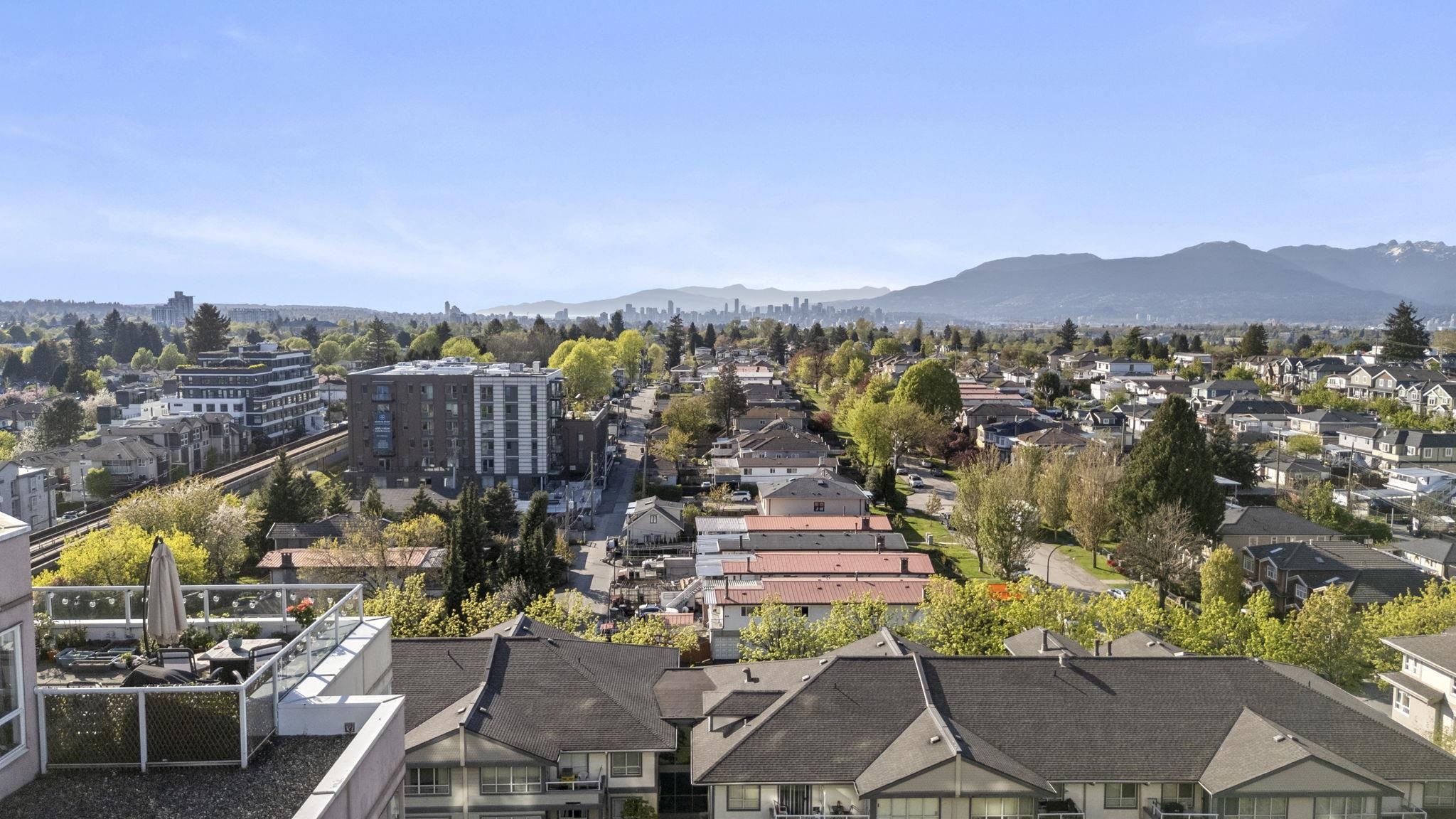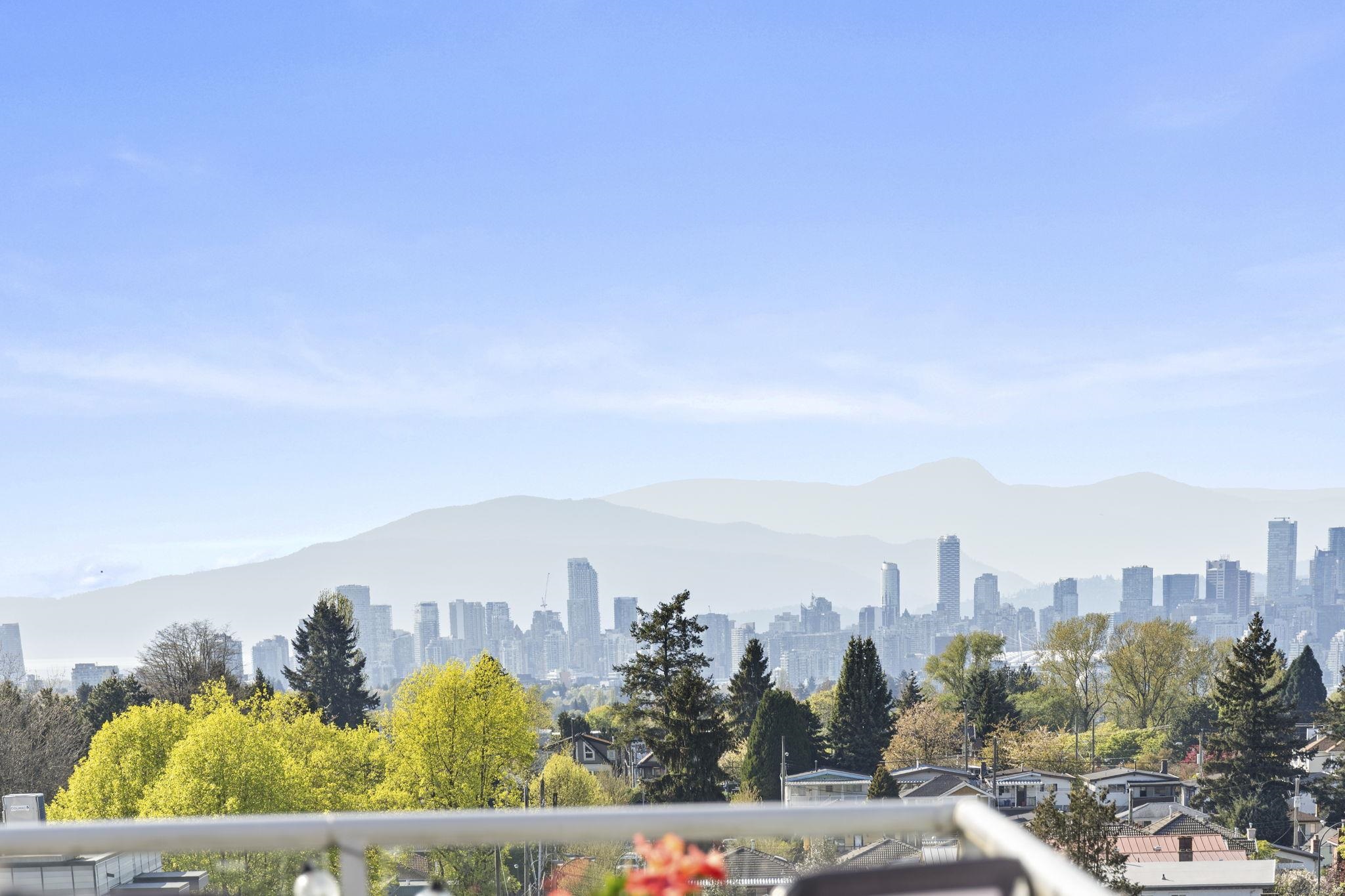 Attention first-time buyers! Breathtaking North Shore mountain & city views await you from this 2 bedroom corner home in Collingwood! Featuring a highly-functional floor plan on the quiet side of the building, this home has been kept meticulously (think SHOW HOME!) and has been updated with laminate flooring throughout, quartz countertops, bathroom & appliance upgrades, and more! Enjoy summer evenings on your oversized & private 275sf terrace capturing the city's best views! The building offers a well-manag...