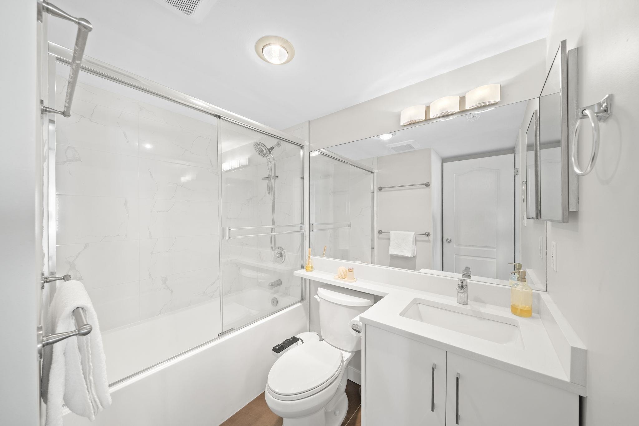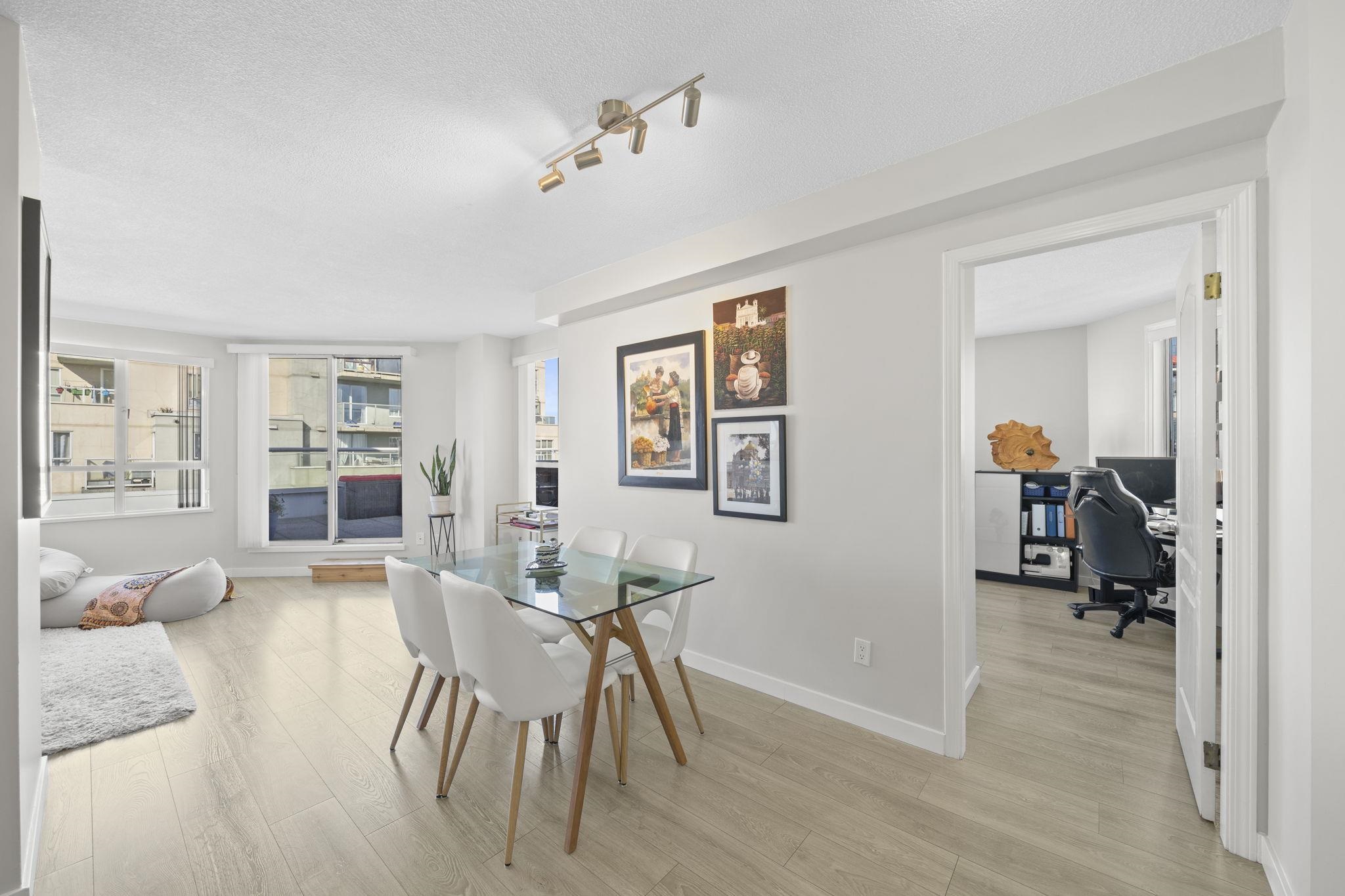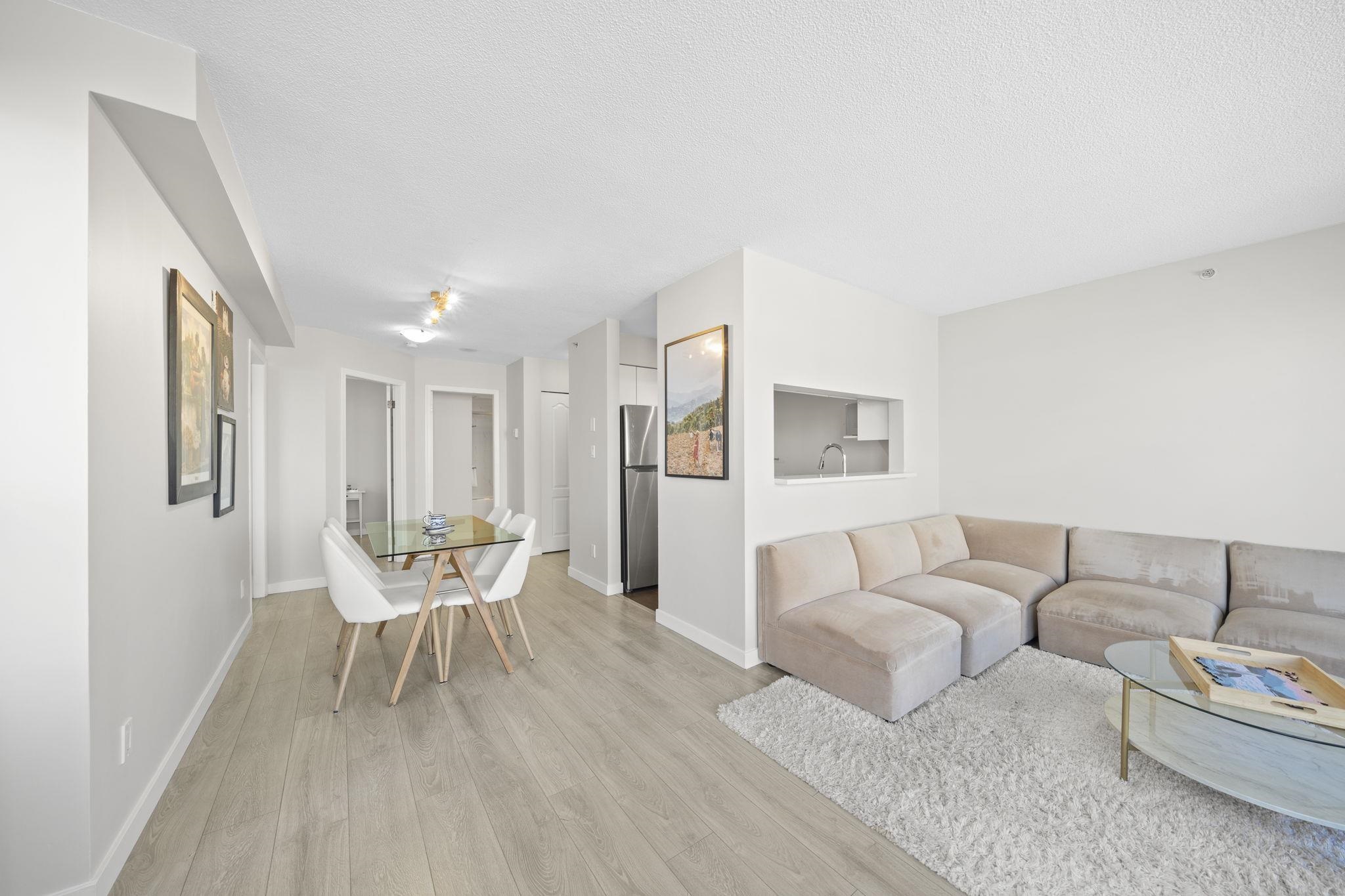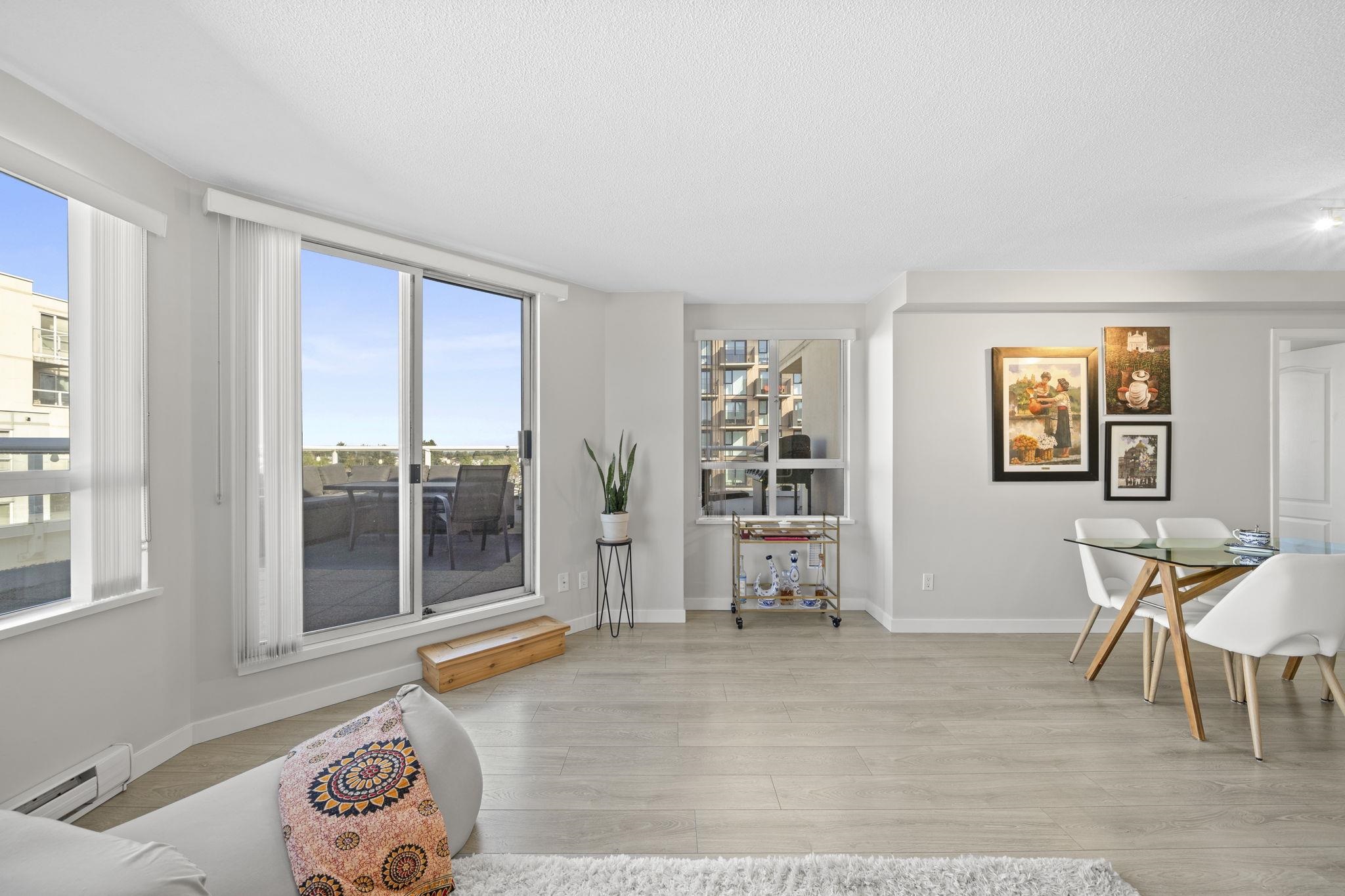 Attention first-time buyers! Breathtaking North Shore mountain & city views await you from this 2 bedroom corner home in Collingwood! Featuring a highly-functional floor plan on the quiet side of the building, this home has been kept meticulously (think SHOW HOME!) and has been updated with laminate flooring throughout, quartz countertops, bathroom & appliance upgrades, and more! Enjoy summer evenings on your oversized & private 275sf terrace capturing the city's best views! The building offers a well-manag...