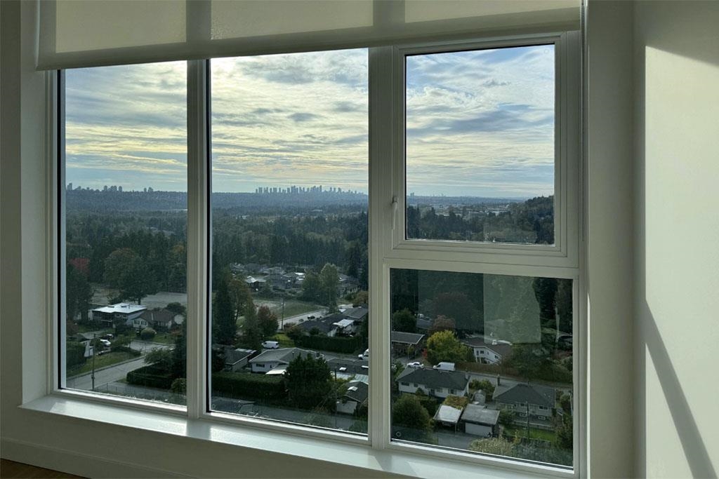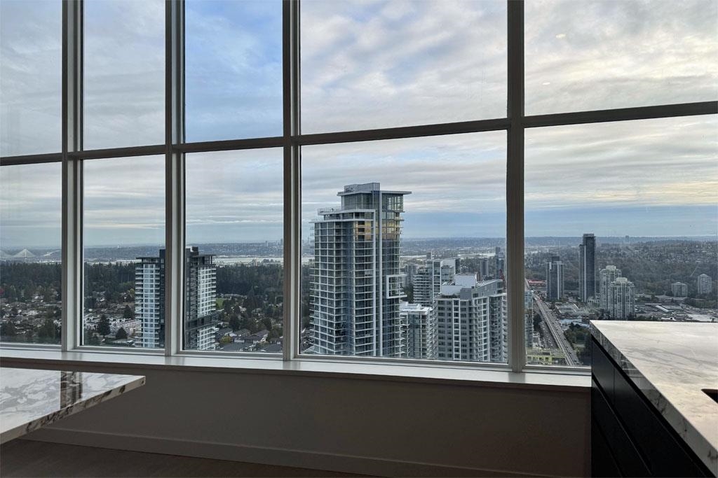 This brand-new 875sf southwest corner unit offers 2 bedrooms, 2 bathrooms, 9' ceilings, laminate floors, and a 233sf view deck with stunning panoramic views of Fraser Valley, Fraser River, Metrotown, Brentwood, and Burnaby Mountain. The proper foyer features a coat closet and built-in niche with lighting, a magnetic board, and charging station. The bright living-dining area has two glass walls for maximum sunlight. The chef’s kitchen boasts a large island, full-height cabinets, quartz countertops, and stain...