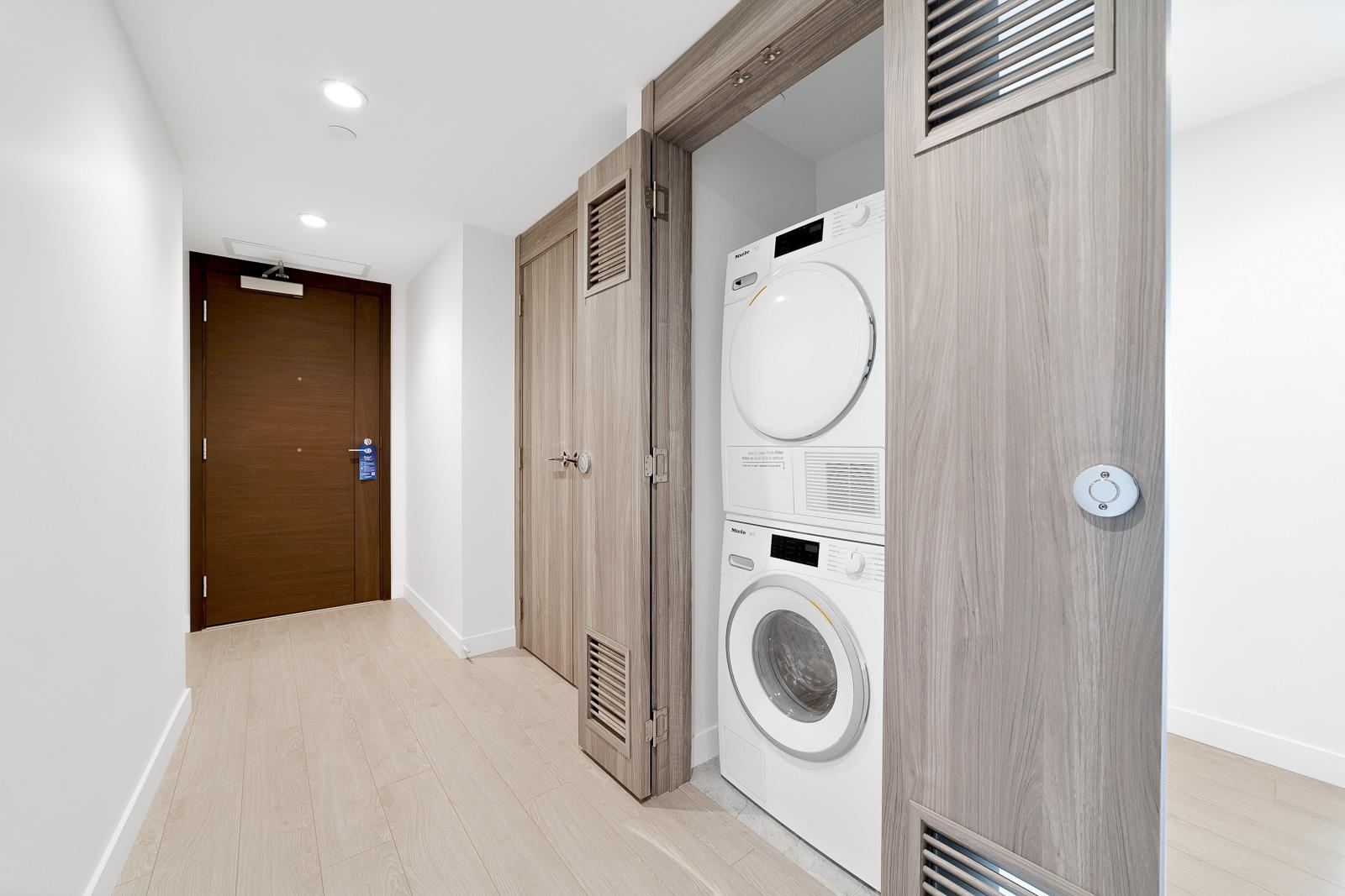 Stunning air-conditioned 535 sq.ft. 1-bed unit in Avenue One by concord pacific! This luxurious SE corner unit features high-quality finishings incl. craftsmanship details, floor-to-ceiling windows, gourmet kitchen w/ gas stove, chimney fan, miele S/S 24" appliances, wall oven, Panasonic microwave, designer cabinetry, & quartz countertops. spacious bedroom opens to Juliet balcony; insuite Miele washer & dryer.Unit includes private storage on the same floor w/ exclusive access. Enjoy top-notch amenities: 24-...