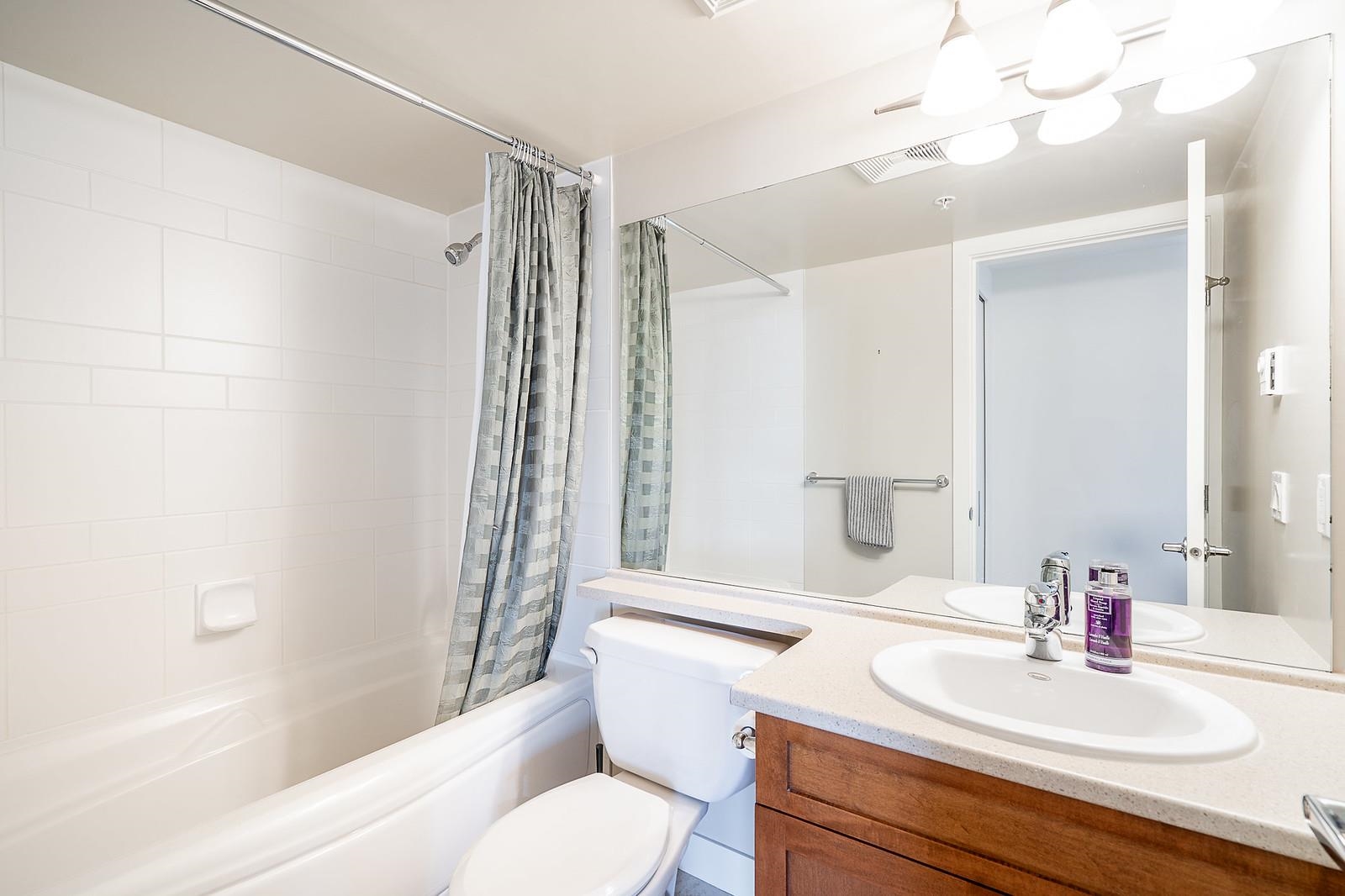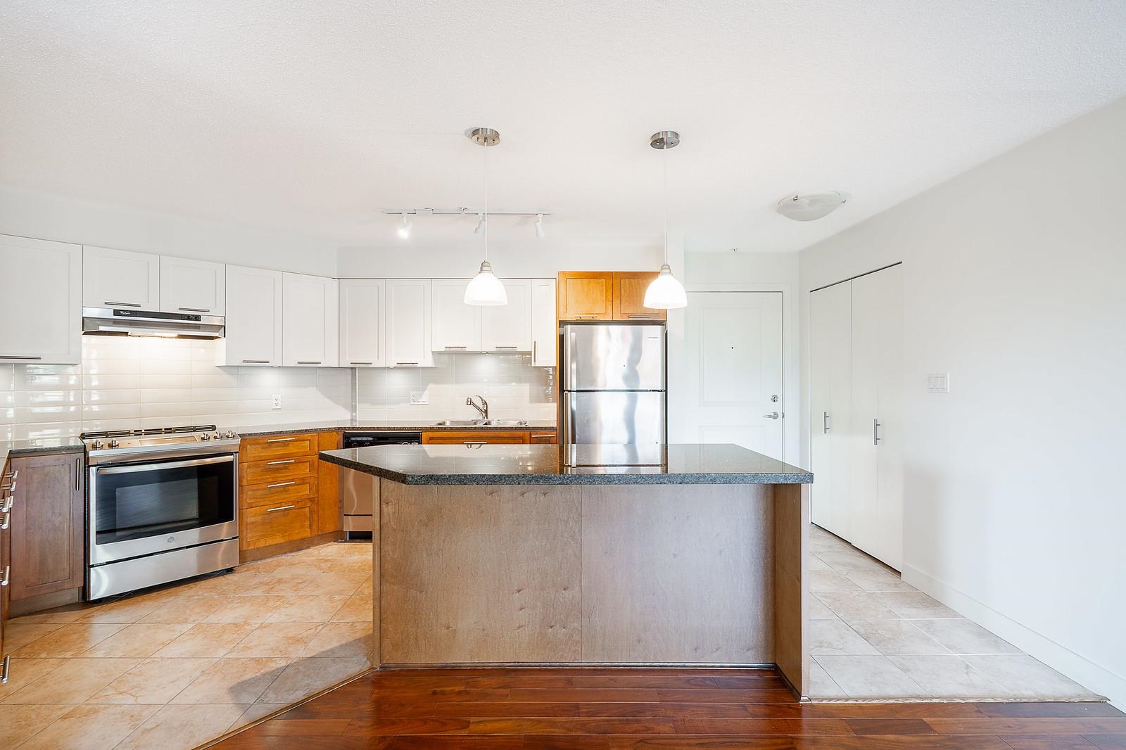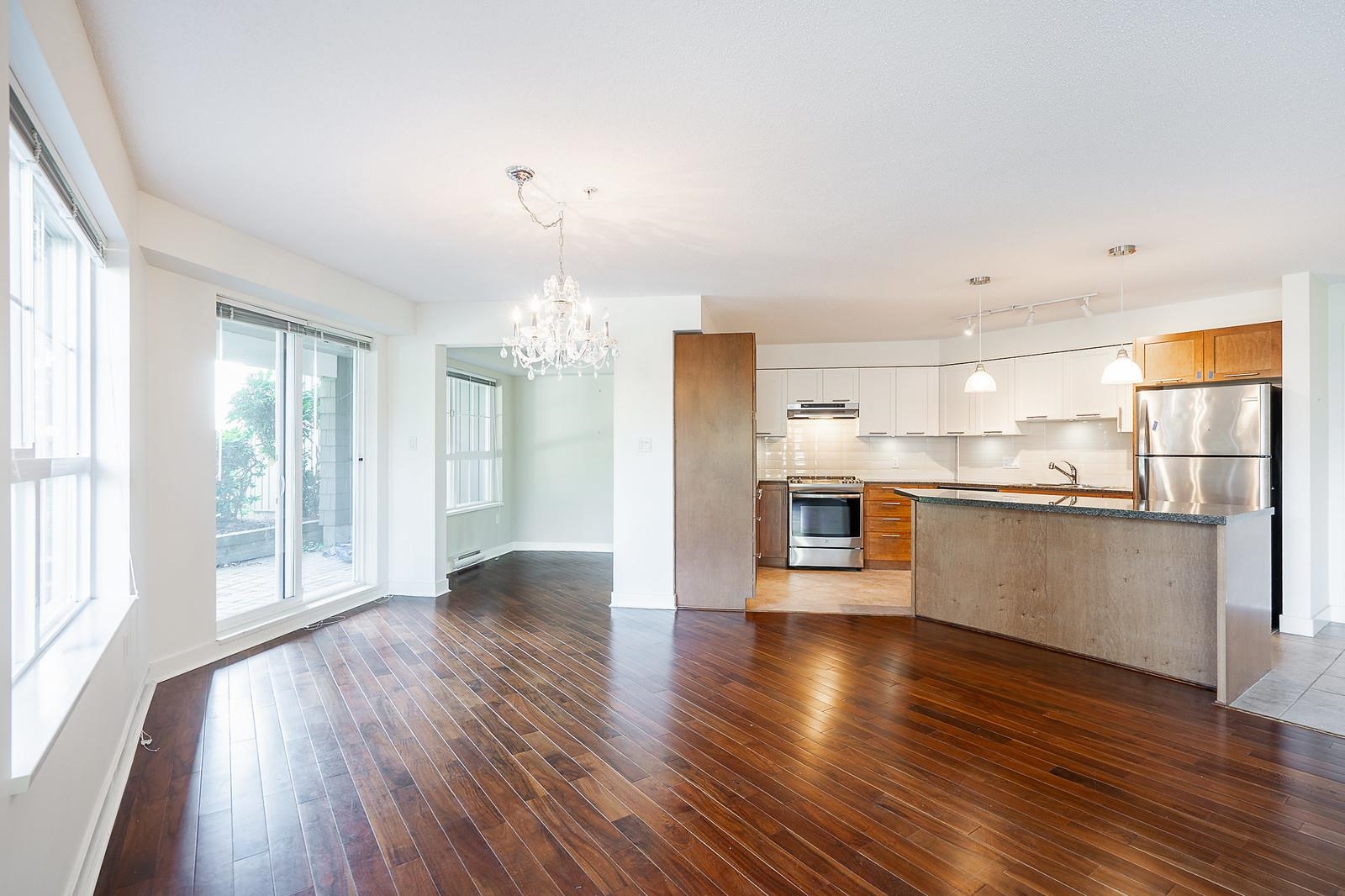 Welcome to this huge 1,344 sq ft ground-floor corner unit featuring 2 bedrooms, a versatile den, 2 full bathrooms, and a large patio. Enjoy engineered hardwood flooring throughout the bright and open living and dining areas. The kitchen comes equipped with updated appliances, including a 2-year-old stove/oven, a 1.5-year-old washer and dryer, and a recently upgraded fridge—making this home truly move-in ready. Large windows fill the space with natural light and offer stunning views of surrounding mountains ...