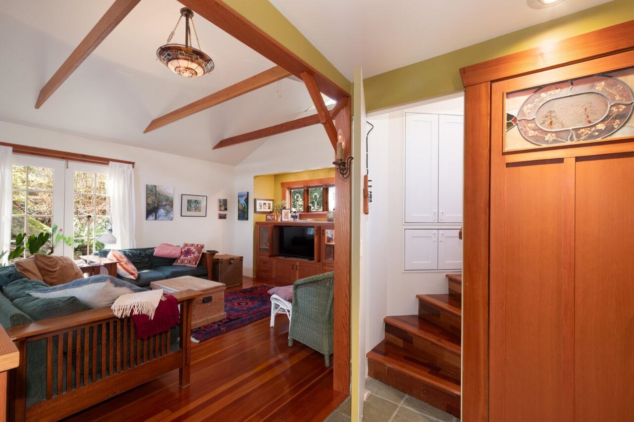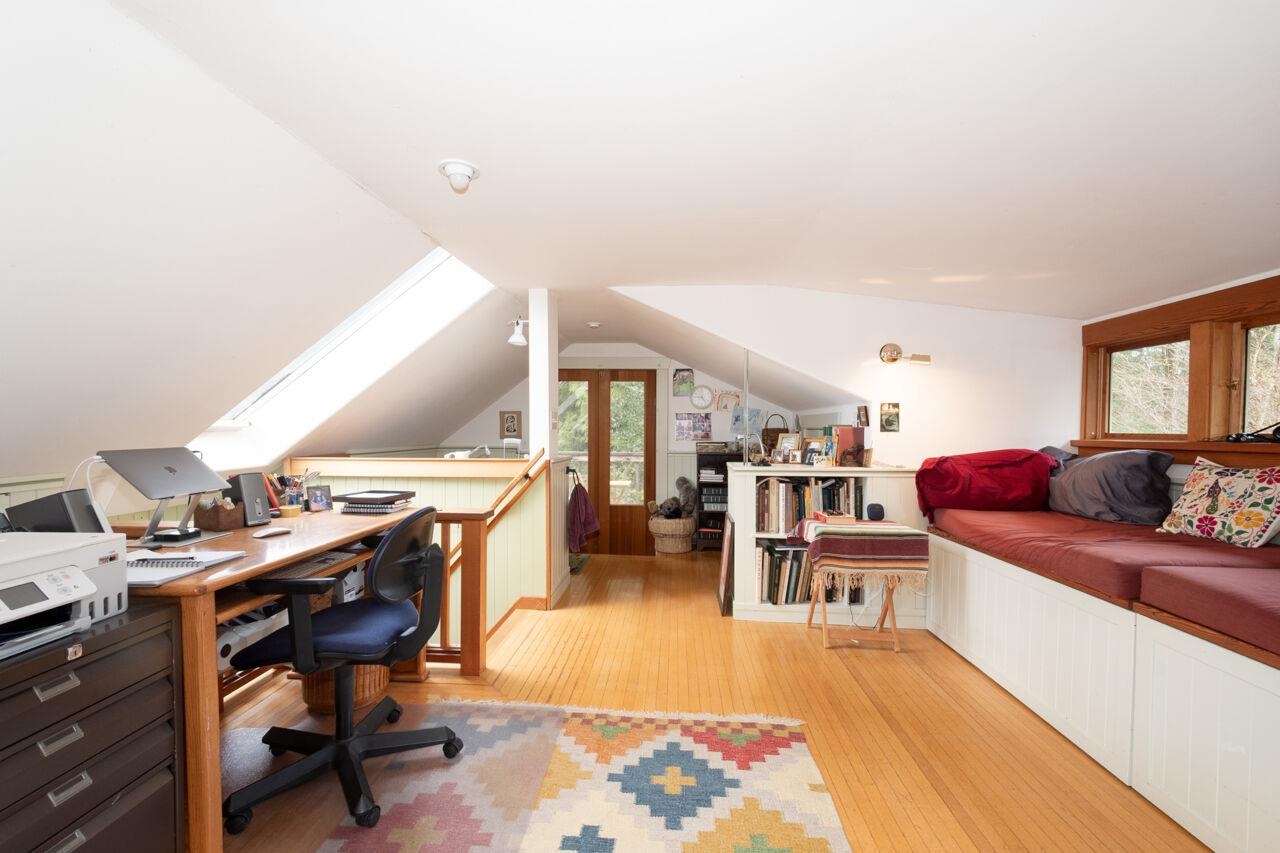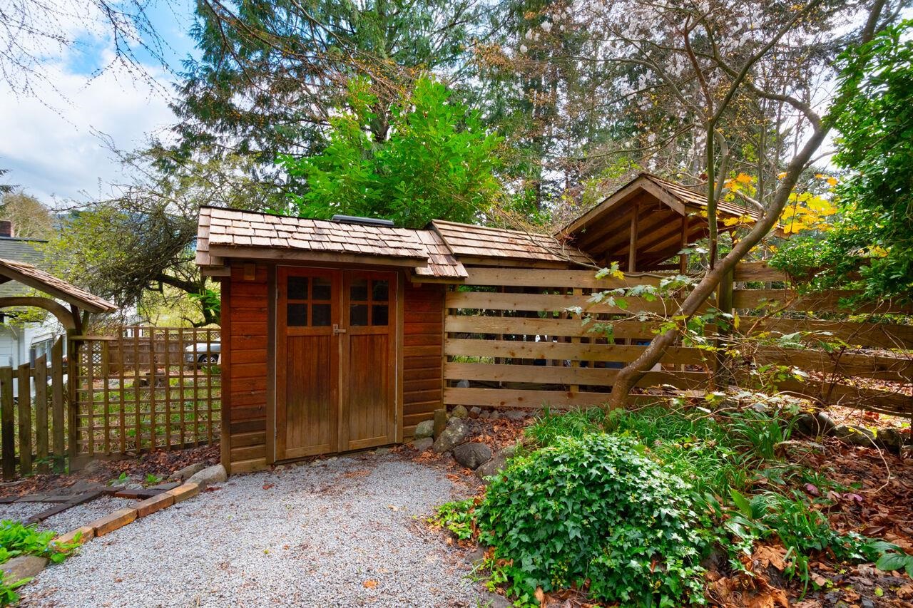 Charming and very fun, this cottage harkens back to Bowen's past while embracing some modern touches. Gorgeous wood-work everywhere, with fir floors throughout much of the home. Single level living for both bedrooms, with a spacious art studio above. A top secret passageway leads to a reading nook at the top of a turret - can you find the hidden door? Outside features a much-loved and fully-fenced yard with plenty of room to garden, as well as a workshop/garage at the back of the property. close to the Cove...