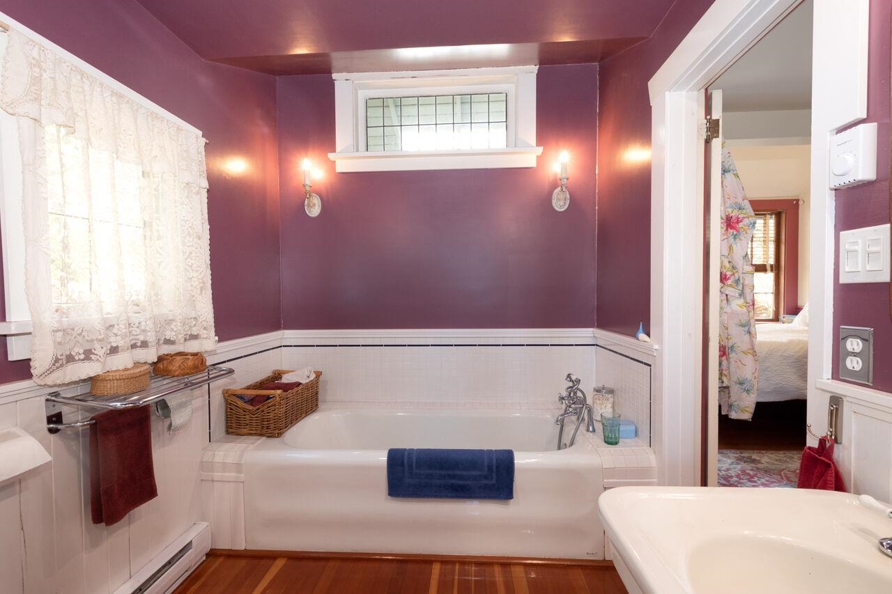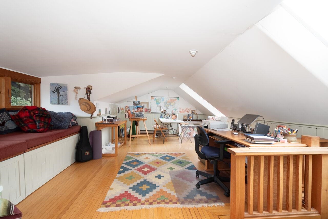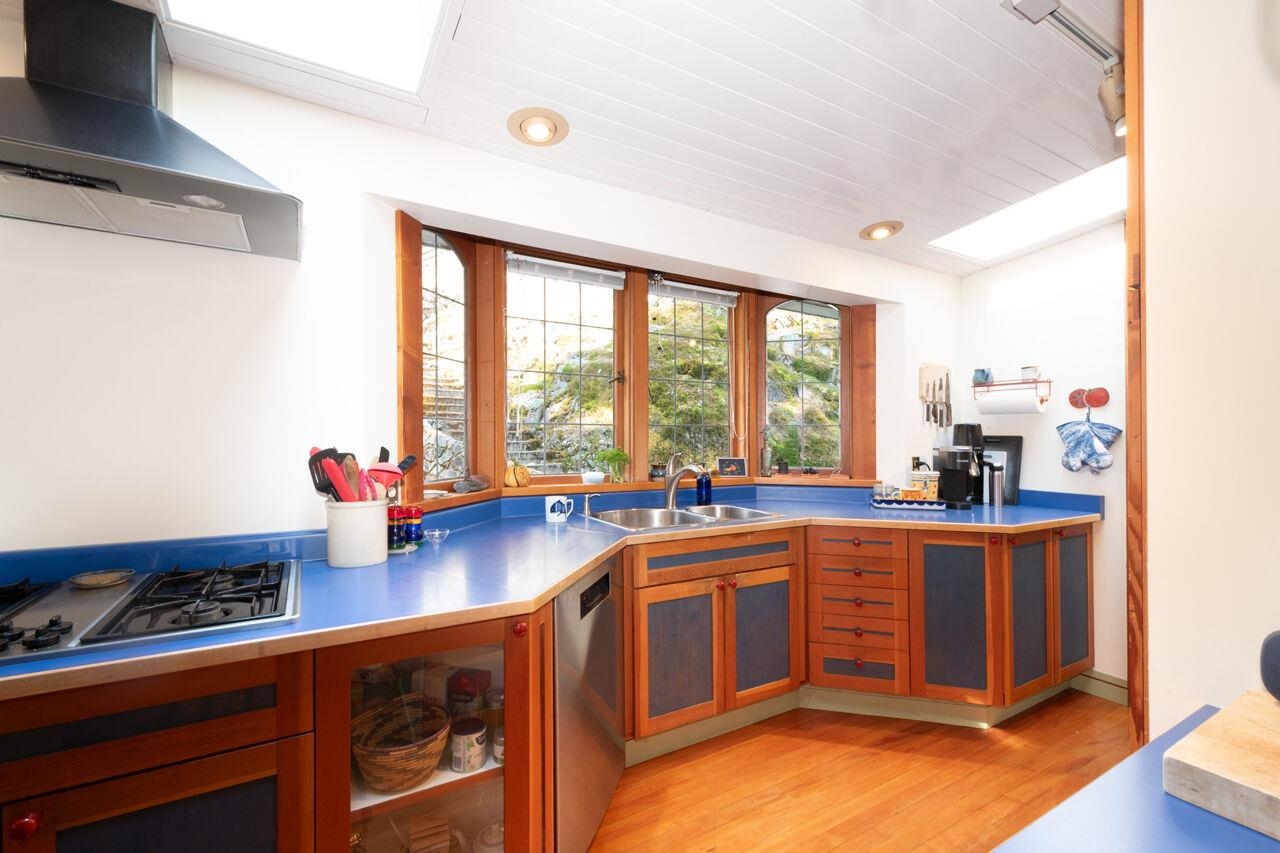 Charming and very fun, this cottage harkens back to Bowen's past while embracing some modern touches. Gorgeous wood-work everywhere, with fir floors throughout much of the home. Single level living for both bedrooms, with a spacious art studio above. A top secret passageway leads to a reading nook at the top of a turret - can you find the hidden door? Outside features a much-loved and fully-fenced yard with plenty of room to garden, as well as a workshop/garage at the back of the property. close to the Cove...