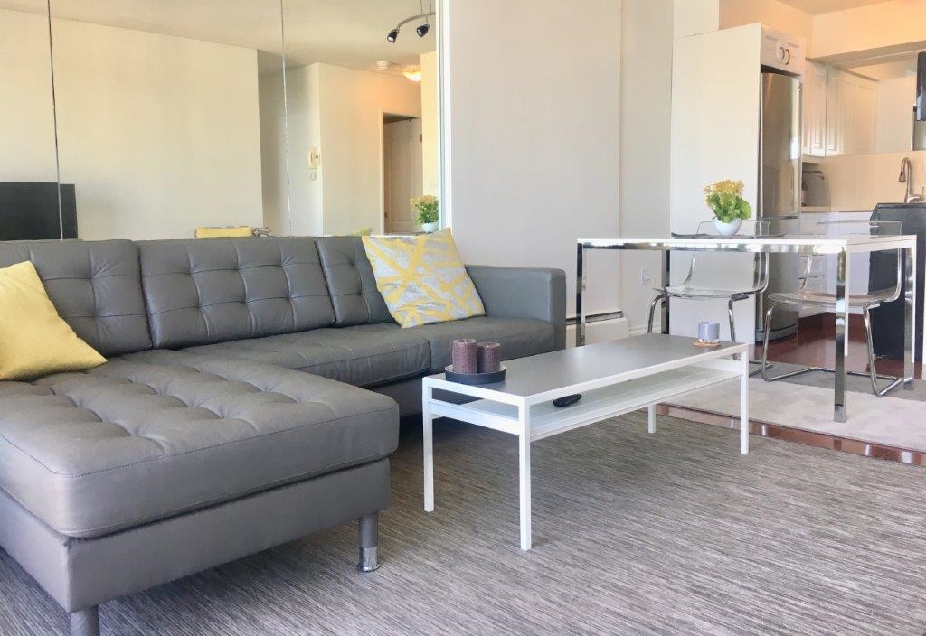 Simply stunning! This West End Vancouver Furnished Penthouse for Rent at Surfcrest offers 592 square feet, 1 bedroom, 1 bathroom, 1 balcony and incredible views. Delight in a space designed with your total comfort in mind. A spacious modern kitchen offers white cabinetry, stainless steel appliances and plenty of room to prepare your meals. Enjoy the perfect dining spot with stunning views at a chic table with seating for 2 or entertain in the adjoining living room where a tufted L-shaped sofa, flat screen T...