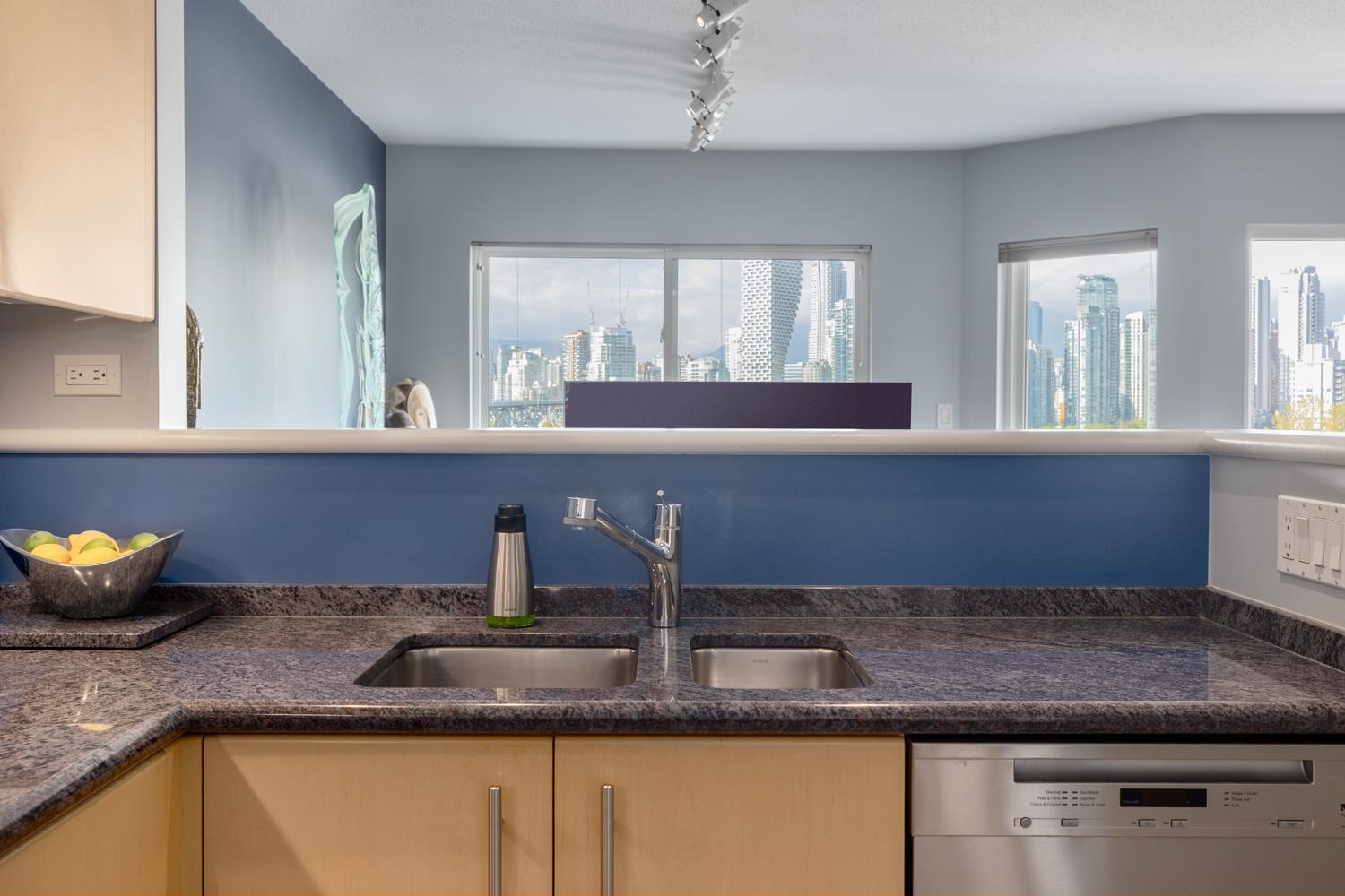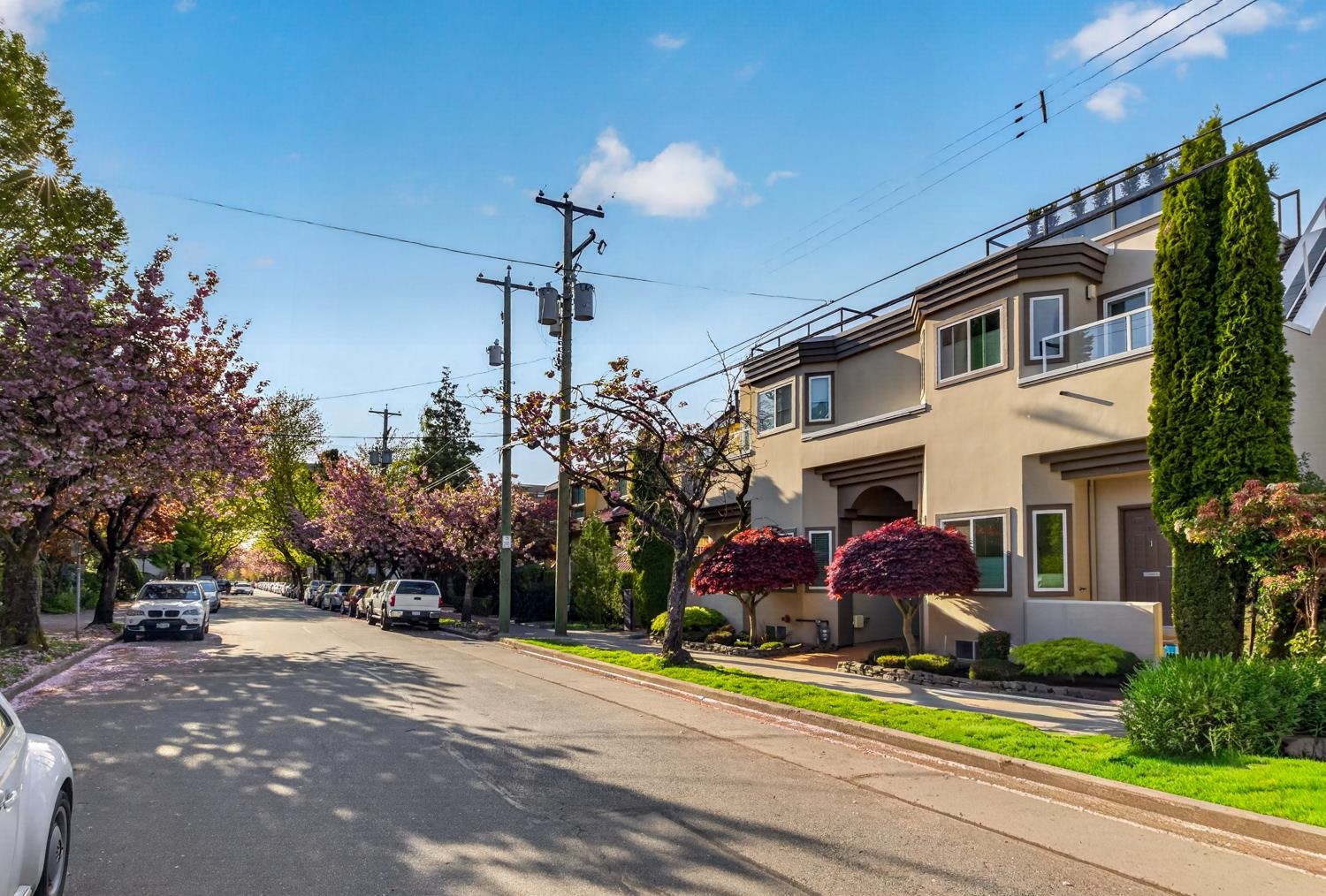 Welcome to a spectacular rarely available townhome situated on a serene, cherry blossom-lined street in the heart of Fairview Slopes. This 1,190sqft home features a breathtaking, panoramic view of downtown skyline & North Shore mountains. Main floor is perfect for entertaining, anchored by a spacious kitchen and an open living area against the backdrop of the city lights. Lower level features two oversized bedrooms and dedicated laundry room. Basement level is a hidden gem w/custom cabinetry, built-in wine ...