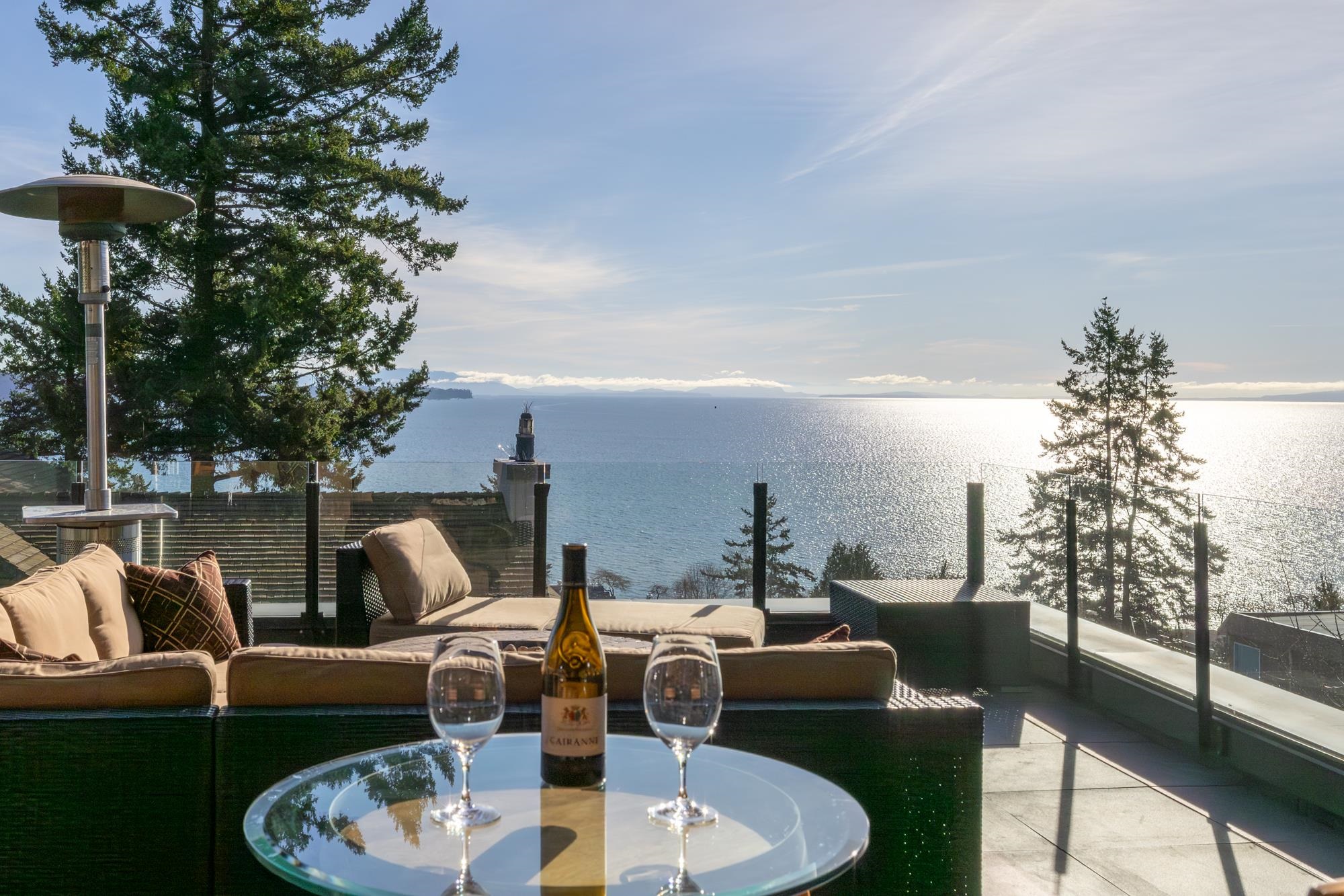 PANORAMIC OCEAN VIEWS! A view from every window in this stunningly renovated 4 bedroom, 4 bathroom home. An entertainer’s paradise, with spacious living and dining rooms and 16’ Nana Wall doors opening to a 591 square foot deck with a jaw-dropping view. Two large sundecks, with infrared heaters, natural gas firepits and rimless railing. Private backyard with greenhouse and root cellar, and fruit trees and blueberries in your front yard. Exterior has been extensively renovated. Updates throughout including c...