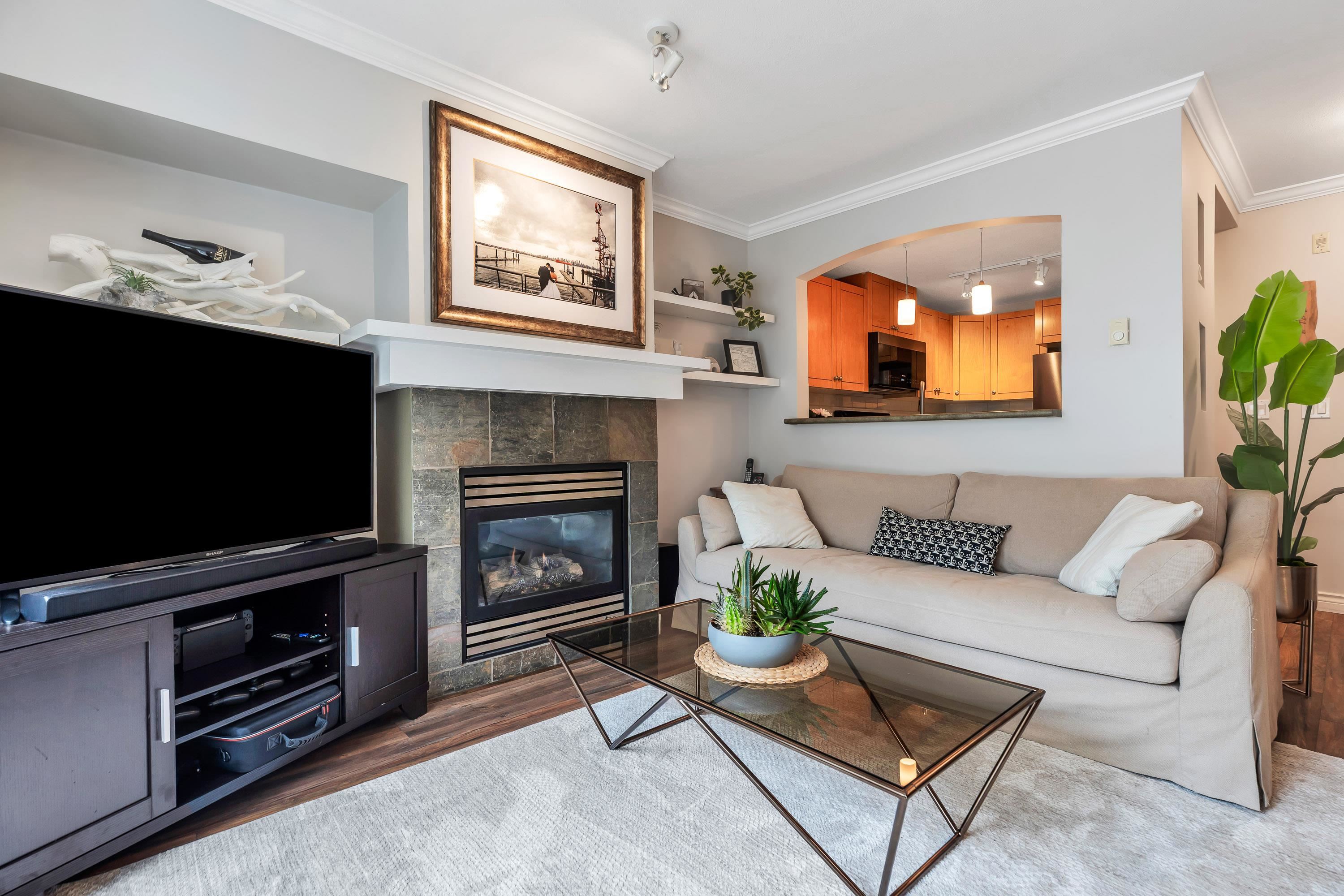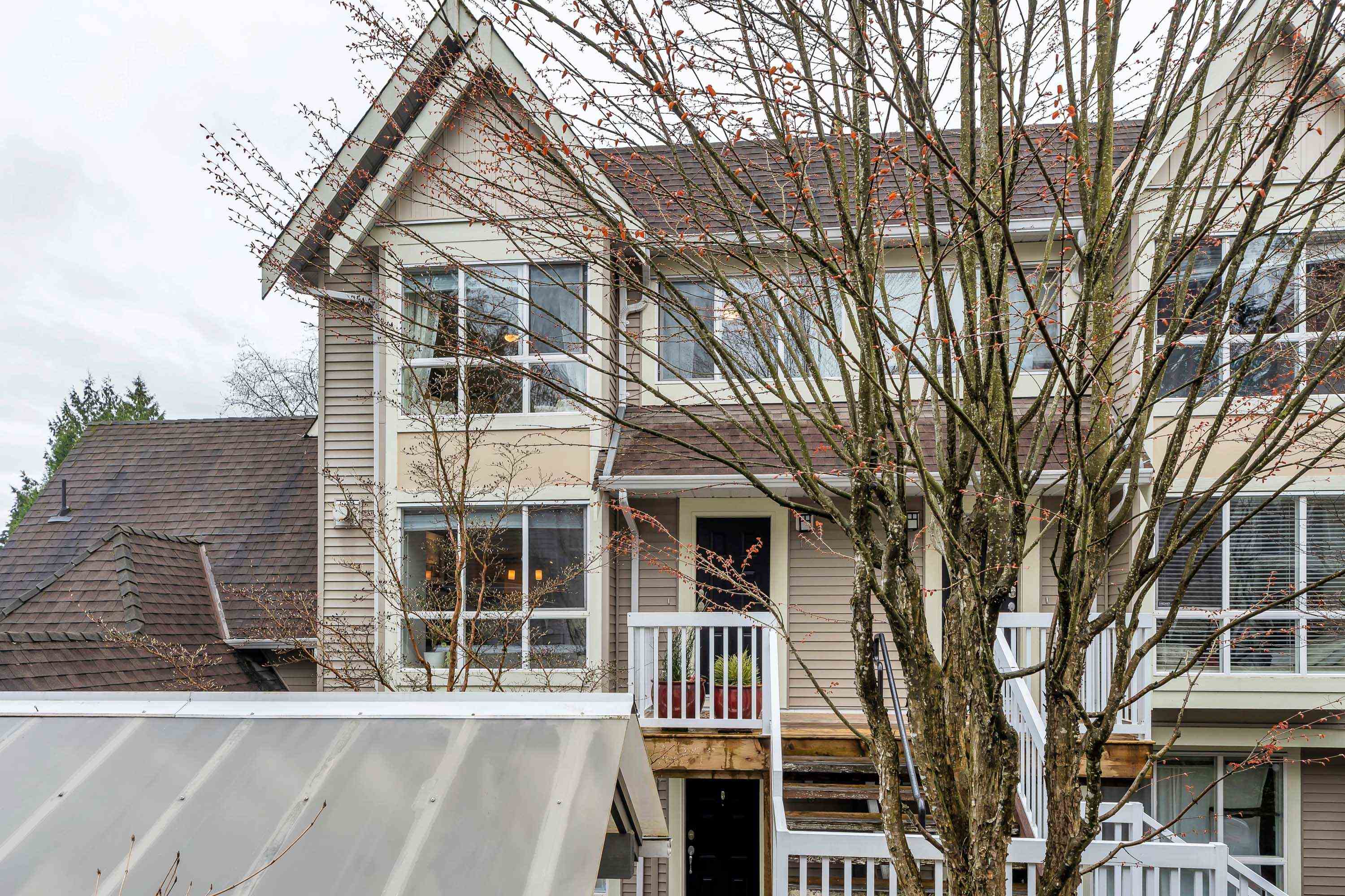 Lovely Lynn Valley Townhome, River Rock 2 - 3 level, 2 bed/2 bath, with private (271 sq ft), wrap around roof top deck - mountain views. Main level features open concept kitchen with stainless steel appliances, spacious living/dining rooms with laminate hardwood flooring, gas fireplace & bay window. Primary and 2nd bedroom are on the second level along with a walk-in closet and laundry. The quiet, upper level deck is great for entertaining/BBQs and outdoor relaxing. 2 parking and 1 storage locker. Steps...