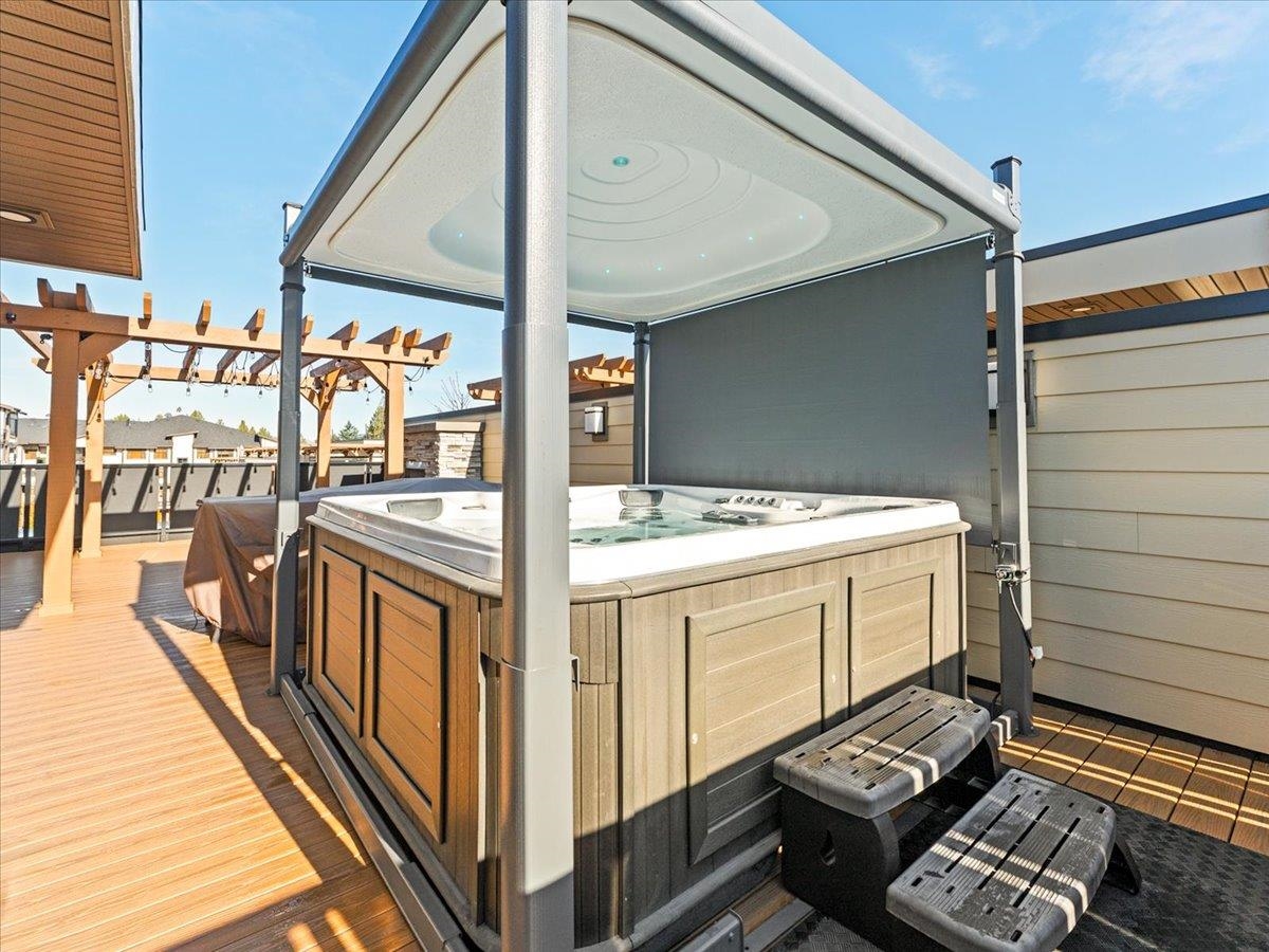Over $200K spent on upgrades on this end-unit, 4 bdrm, 5 bth t/h featuring every imaginable luxury. Take your own private elevator from basement to private roof deck. The main fl showcases gourmet kitchen with Miele & Bosch appl, quartz countertops. Enjoy seamless indoor/outdoor entertaining via Lumon glass-enclosed balcony and an expansive 700+ sqft roof deck with private hot-tub, gas fireplace, pergola, gas BBQ & bar sink. Full smart-home automation, heated bth floors, motorized blinds, A/C & high-efficie...