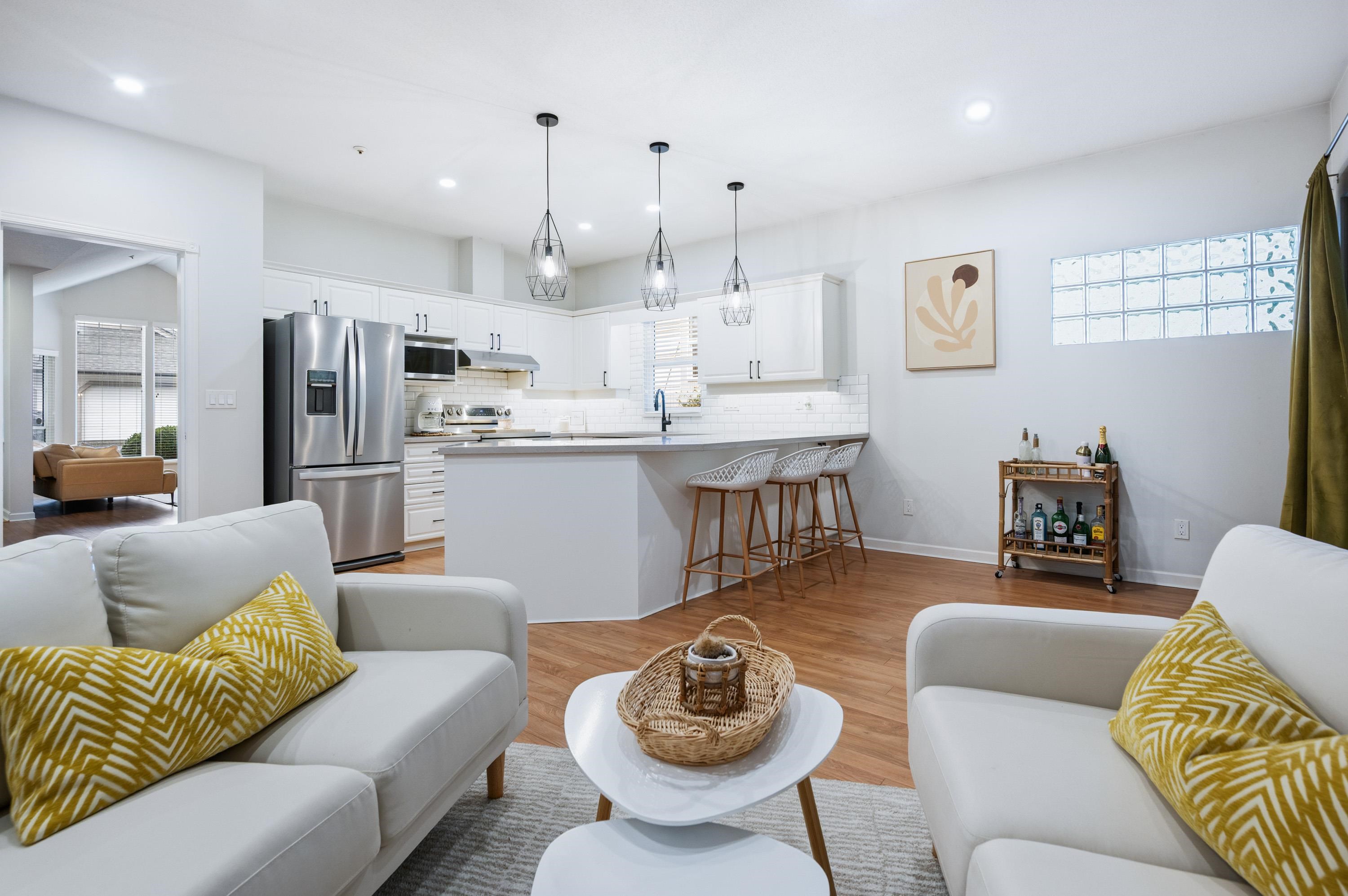 STUNNING fully renovated RANCHER in the highly sought-after gated community of Coventry Woods! This bright DUPLEX-STYLE offers a spacious layout w/large windows for abundant natural light. The beautifully updated kitchen features timeless white cabinetry, SS appliances, pantry for extra built-in storage. The living room boasts soaring ceilings & NEW modern gas fireplace, with a second fireplace in the cozy family room. The spacious primary bedroom includes an organized walk-in closet w/barn door & luxurious...