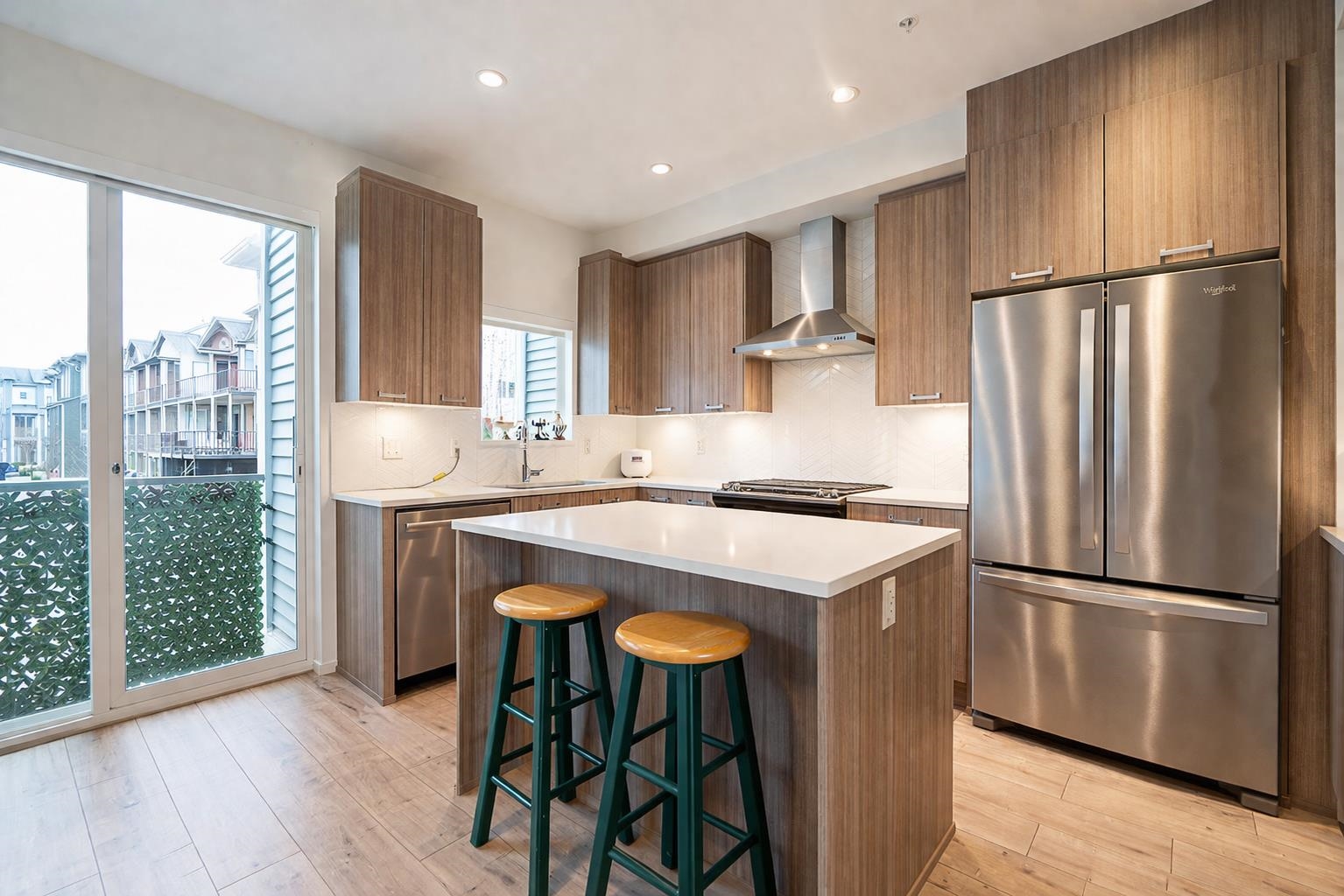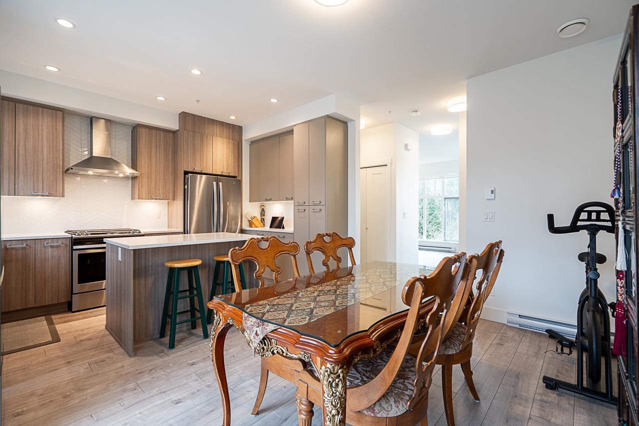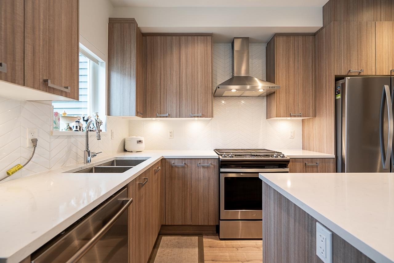 SPACIOUS 4BED 4BATH TOWNHOUSE BACKING ONTO TREES at Creekside built by Streetside! Features open floorplan allowing bright sunlight into spacious living and dining areas. Enjoy private South facing fenced yard/patio backing onto trees and deck off the living room with gas connection for BBQ. Entertain in your large kitchen equipped with stainless steel appliances, gas stove, quartz countertops with an island. Upper floor has primary bedroom featuring walk-in closet, ensuite with quartz counters, two sinks a...