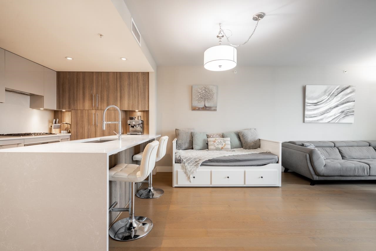 Resort-style living at its best. This beautiful 1-bedroom at The Peninsula offers stunning views, high-end finishes, and a sleek kitchen with fully integrated Gaggenau appliances. Enjoy a large covered deck with a natural gas BBQ hookup and the peaceful vibe of Queensborough, steps to parks, riverfront trails, and the Q-to-Q Ferry. Only 5 minutes to Costco for added convenience. The elegant 4-piece bath features in-floor heating, and the building offers concierge service, a full fitness centre, hot tub, ste...