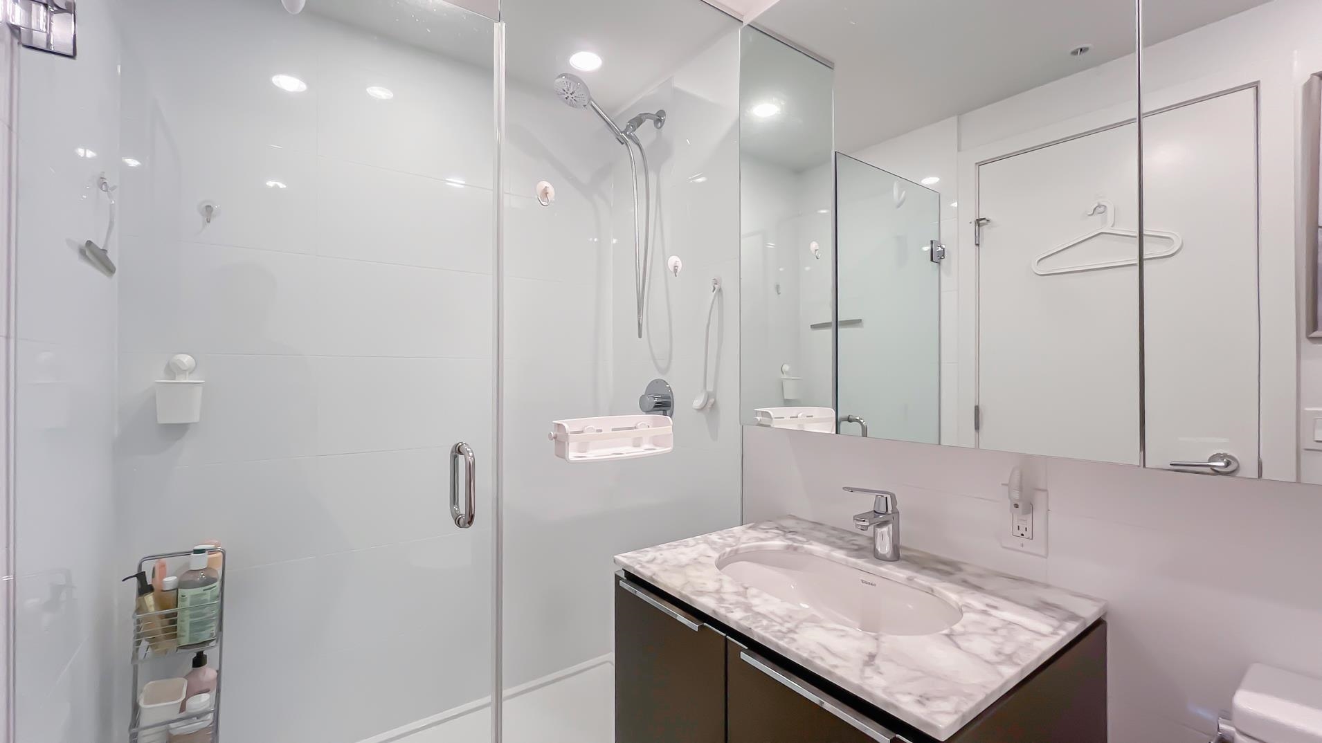 One River Park Place by Intracorp! BEST CORNER UNIT! Southwest facing 2 bedrooms 2 baths unit has lots of natural lighting and a marvelous view. Amenities at your door step includes concierge services, basketball court, fitness center, yoga room, music room, study room, media rooms and a courtyard garden. European s/s appliances, marble counters, stone back splash and heating & cooling system. Elegant appointed bathrooms with a soaker tub in one and a walk-in shower in another. 1 parking & 3 STORAGE LOCKERS...