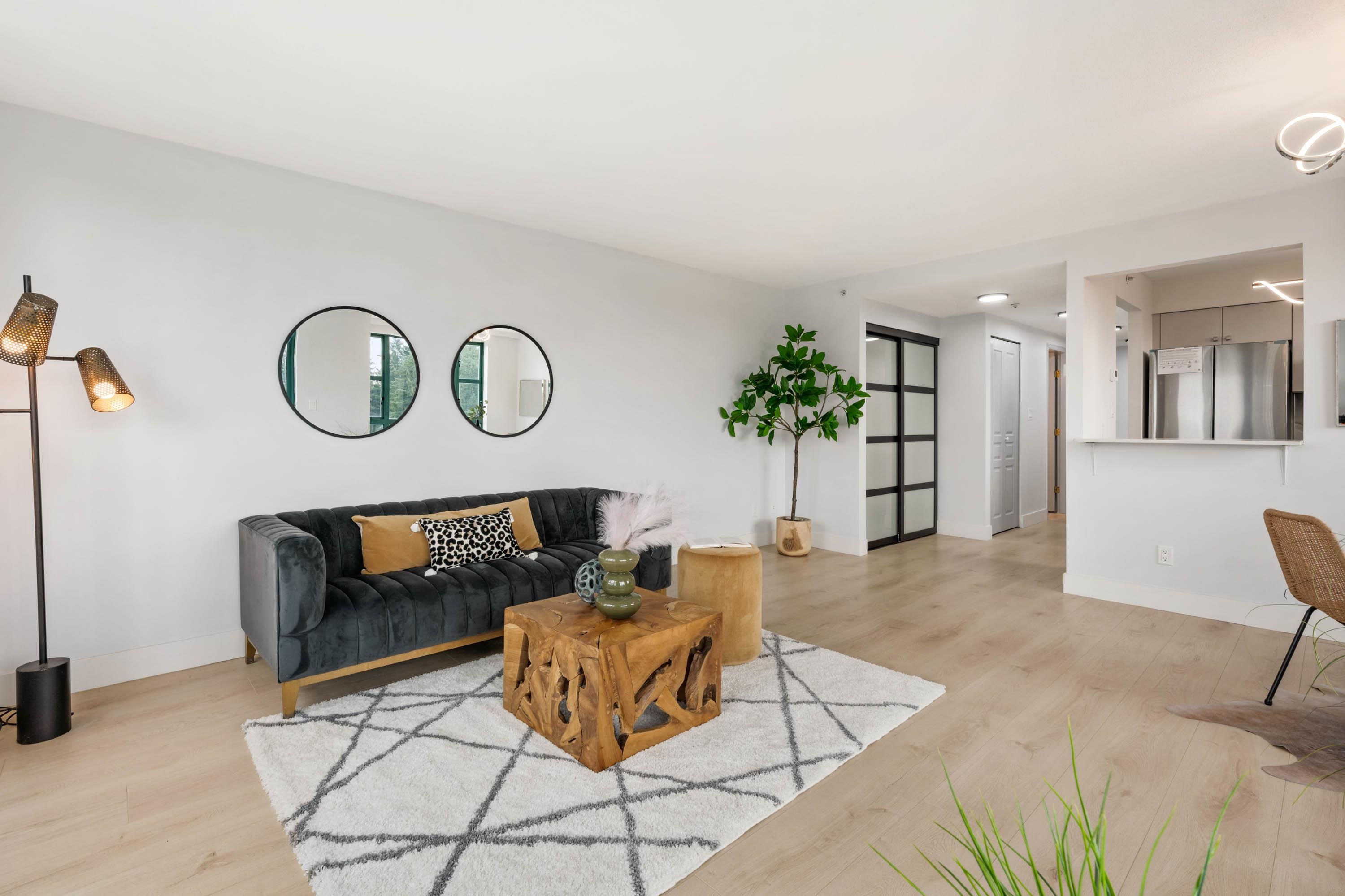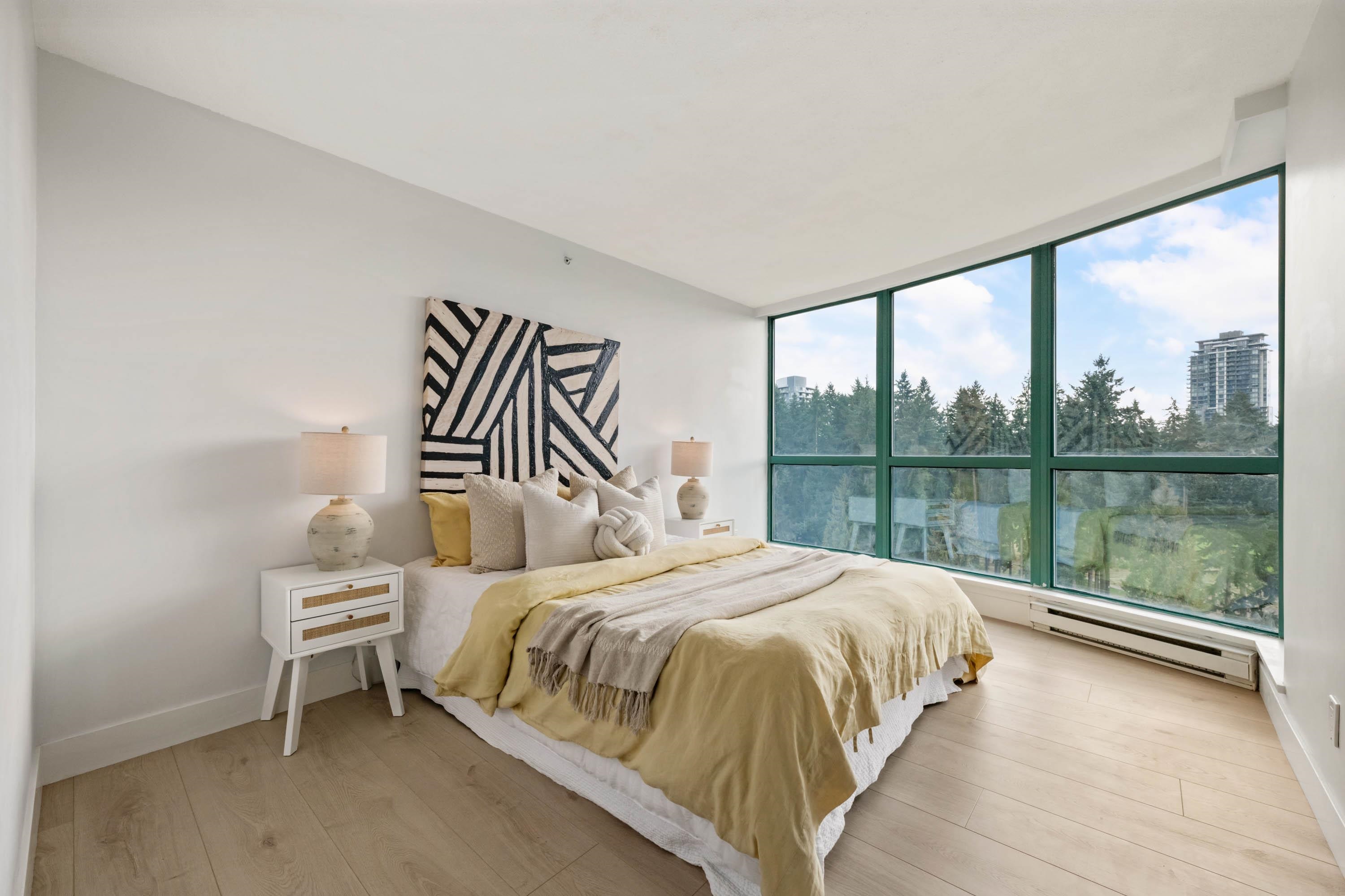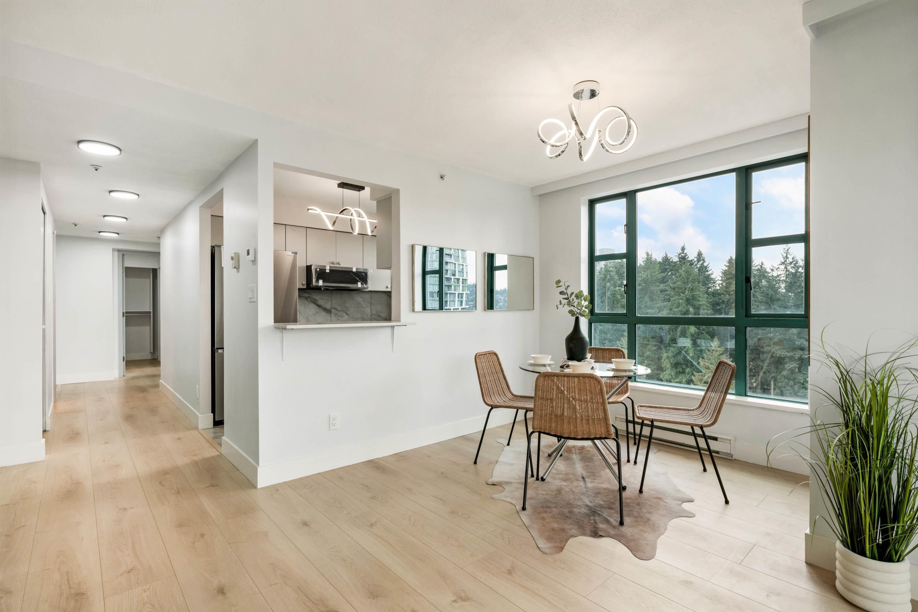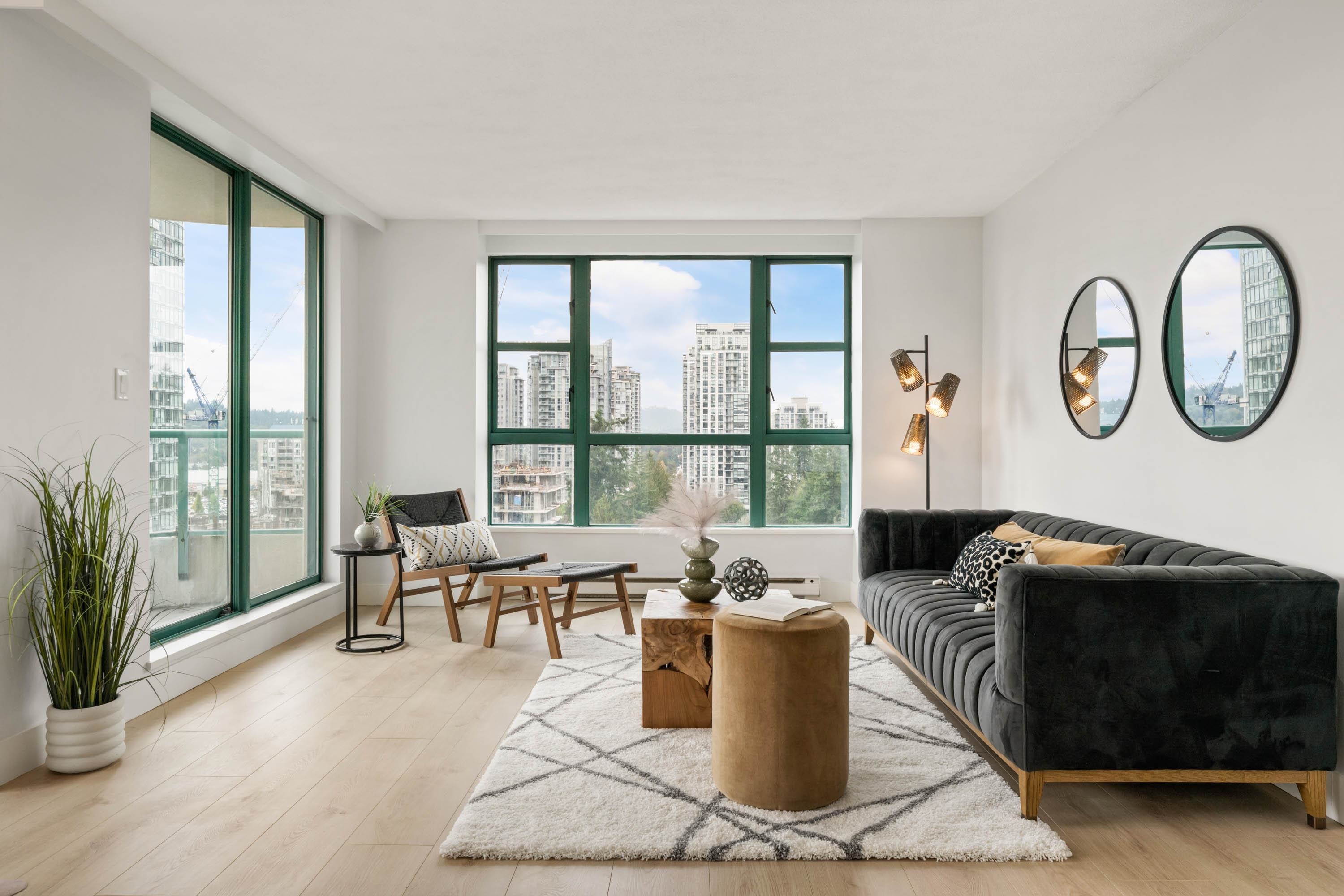 Welcome to Parc Laurent Highrise, located in the heart of Coquitlam! This bright & FULLY RENOVATED 2 bed + 2 bath CORNER UNIT offers over 1,000 sq. ft. of living space with beautiful south-facing views of the park, city & mountains. Renovated from top to bottom, featuring a modern kitchen with new cabinetry & SS appliances, updated baths with new tiles, fans, vanities, mirrors & tub, plus new flooring, lighting & fresh paint throughout. Bedrooms include custom built in closets & added living room storage. B...