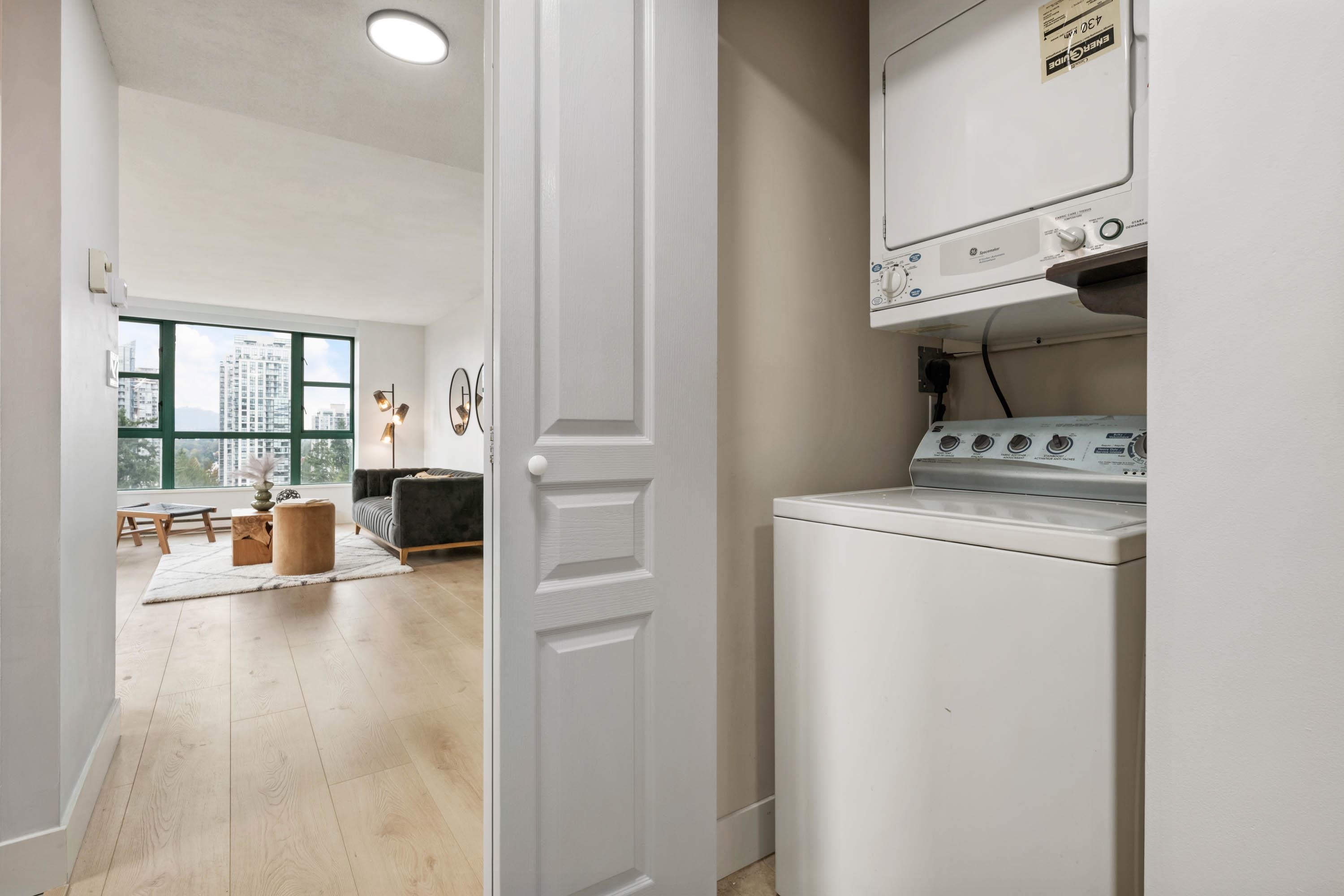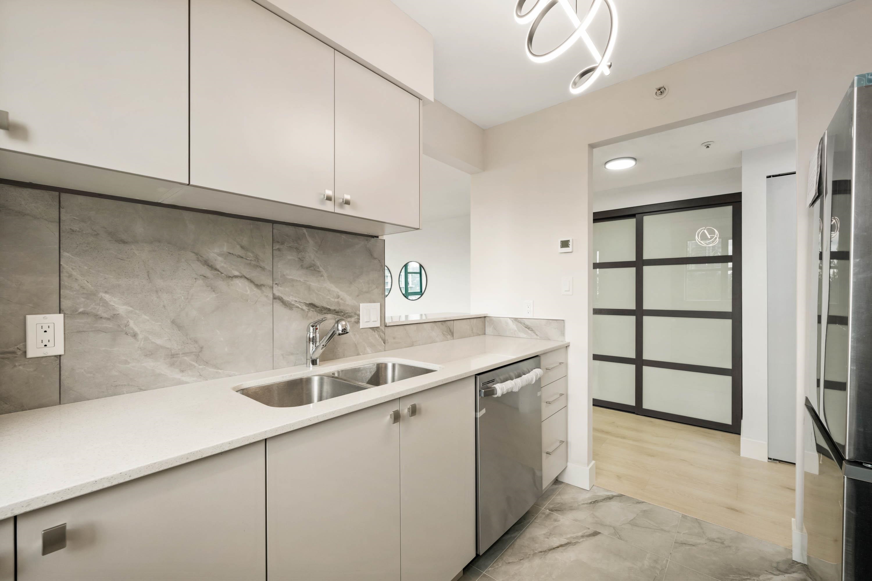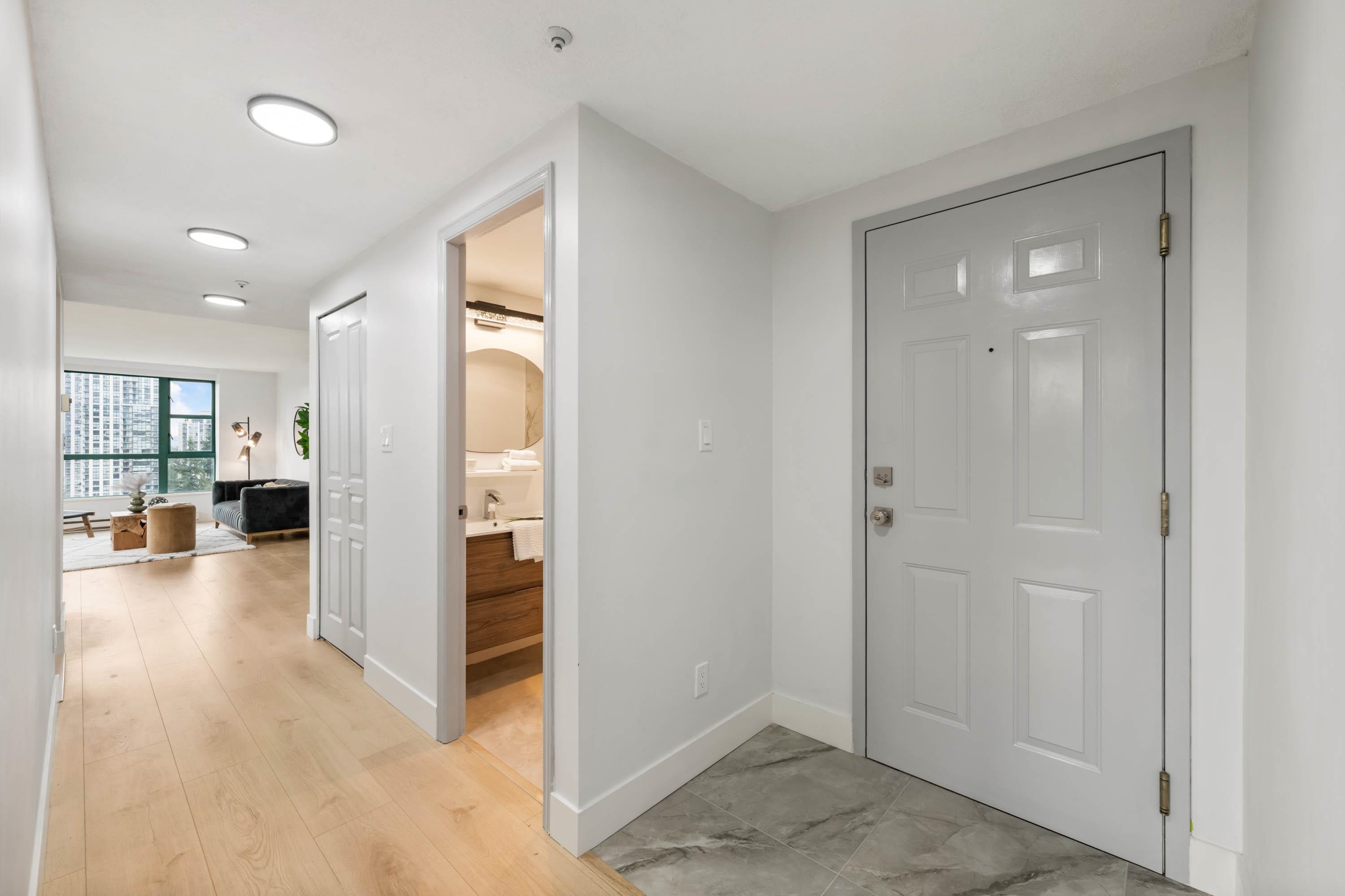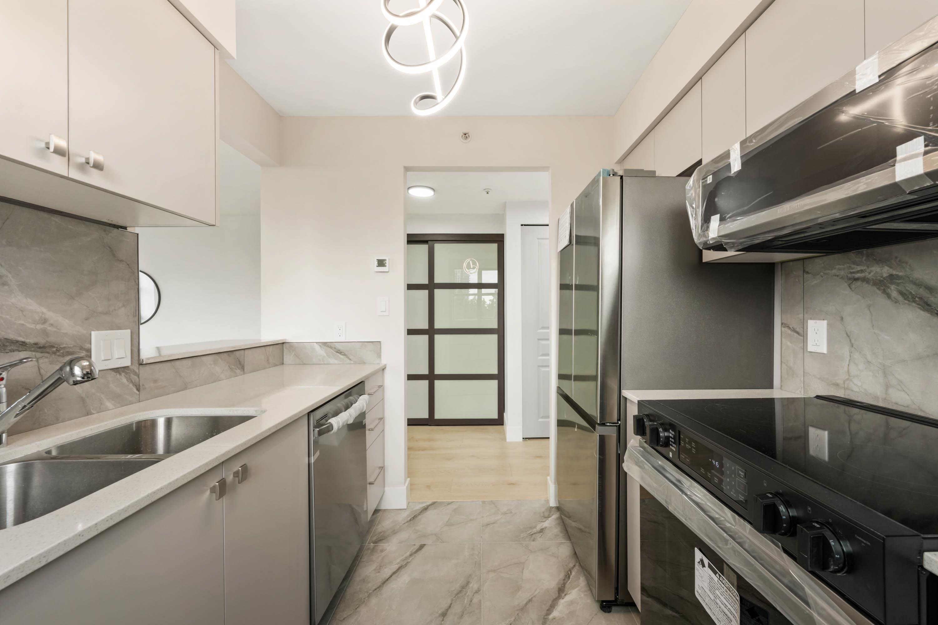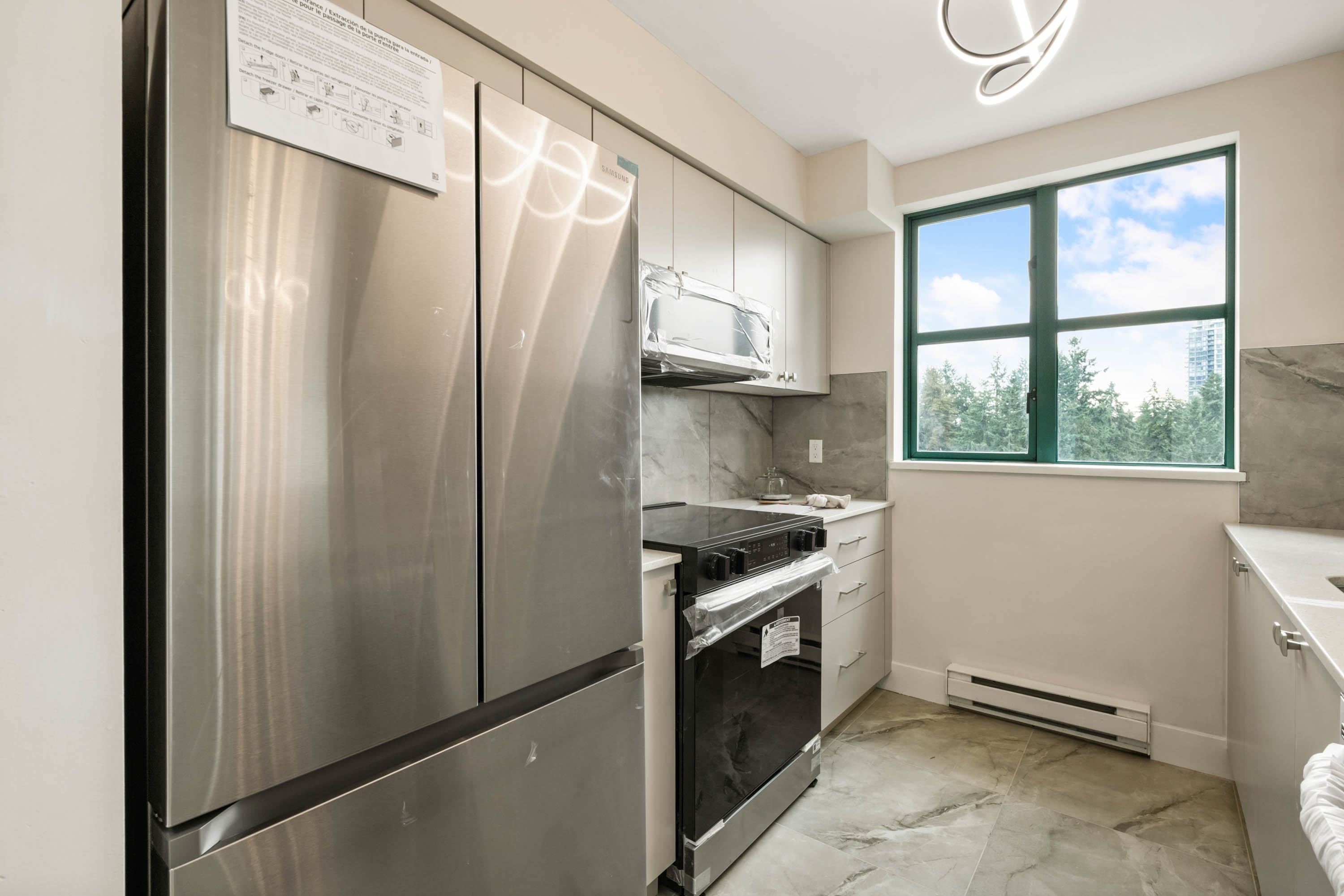 Welcome to Parc Laurent Highrise, located in the heart of Coquitlam! This bright & FULLY RENOVATED 2 bed + 2 bath CORNER UNIT offers over 1,000 sq. ft. of living space with beautiful south-facing views of the park, city & mountains. Renovated from top to bottom, featuring a modern kitchen with new cabinetry & SS appliances, updated baths with new tiles, fans, vanities, mirrors & tub, plus new flooring, lighting & fresh paint throughout. Bedrooms include custom built in closets & added living room storage. B...