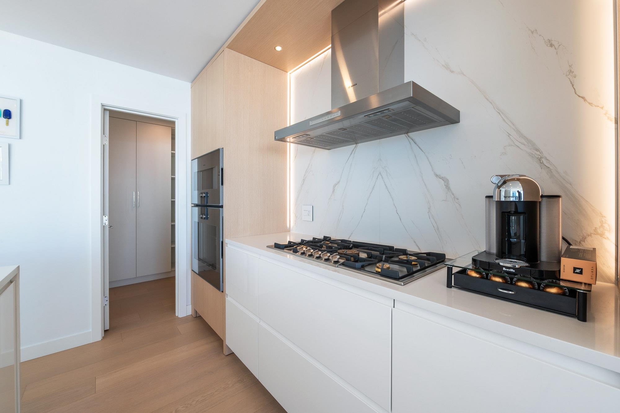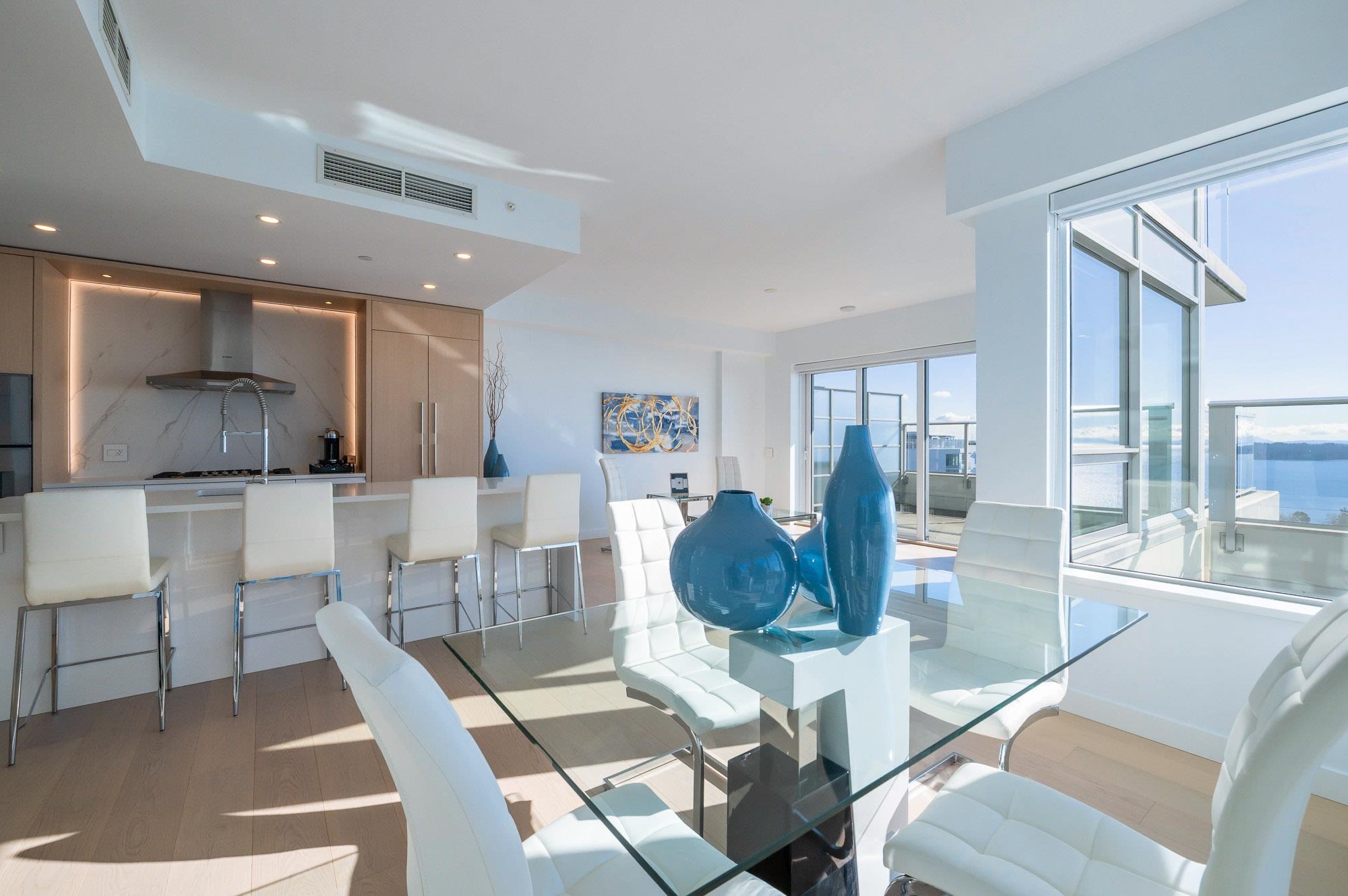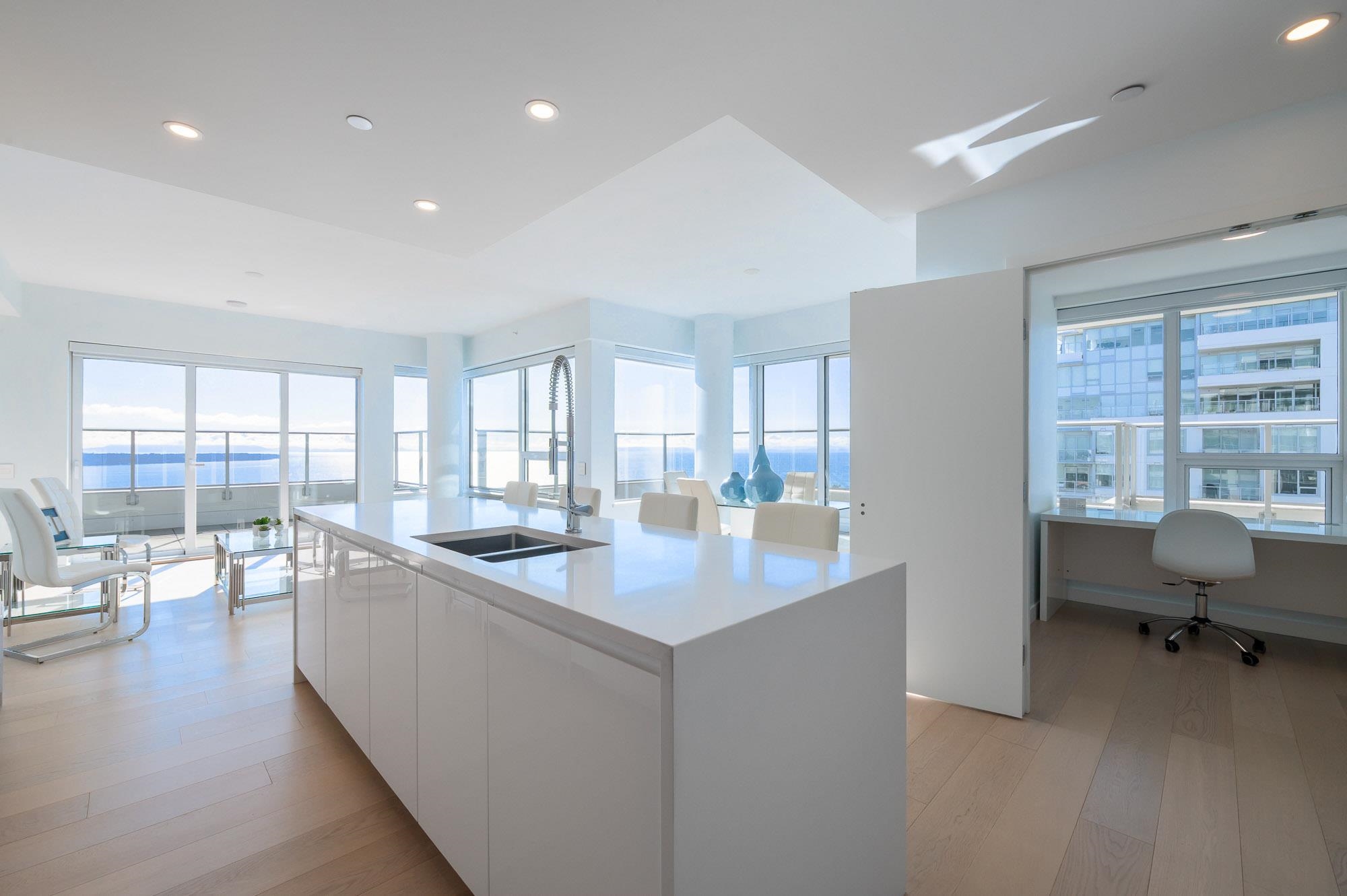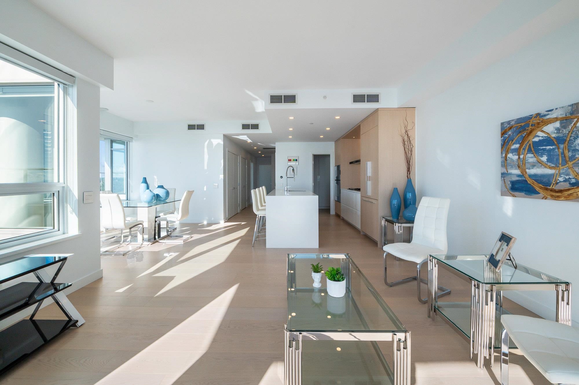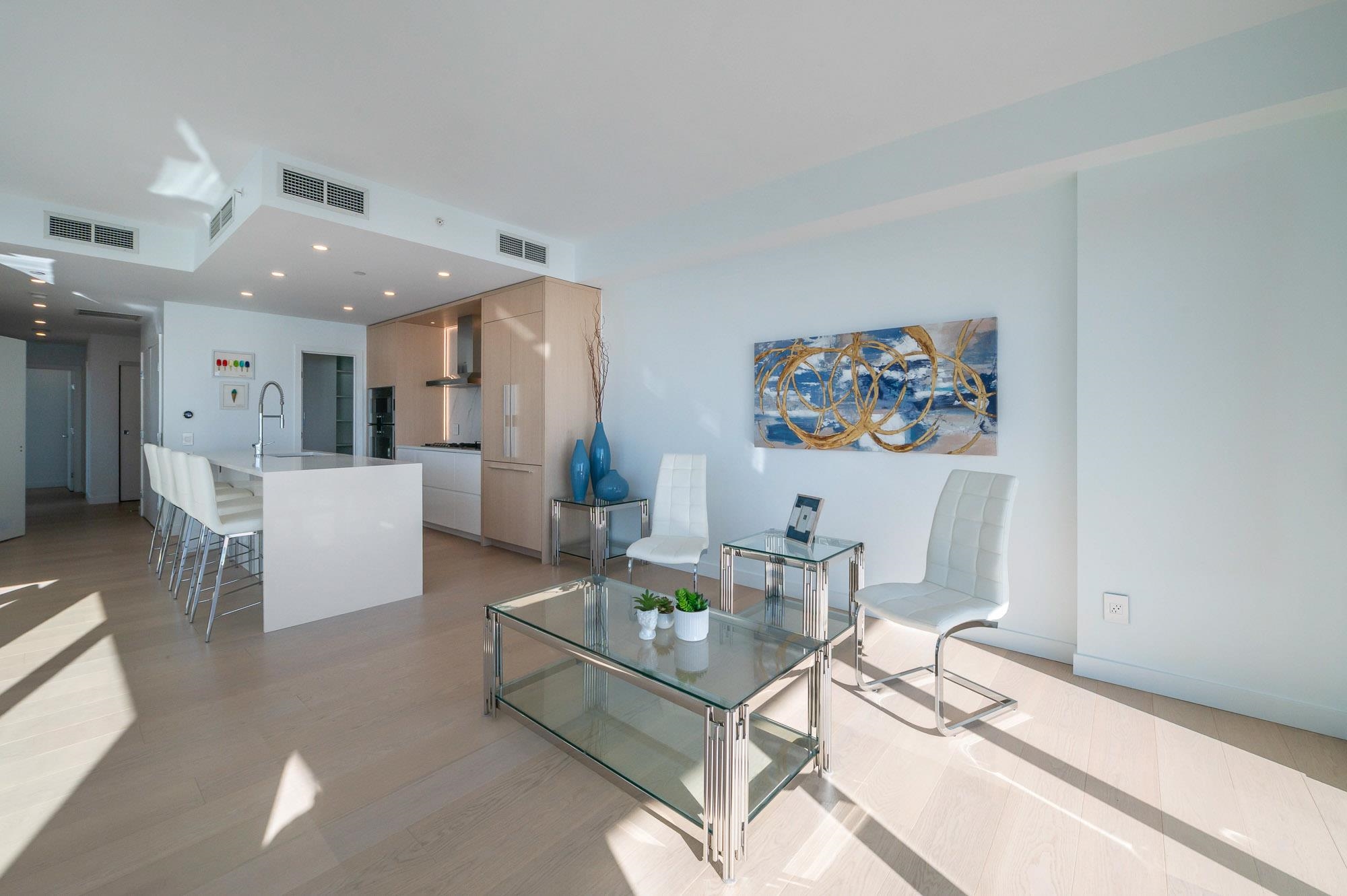 PANORAMIC OCEAN VIEWS!! SOUTH WEST Exposed SUB-PENTHOUSE in Miramar by Bosa Developments. A Truly ONE-OF-A-KIND Offering. Overlooks the Inner Courtyard with 750 sq. ft. wrap around Balconies. Open and Spacious Sundrenched Living area with a High end Kitchen, Gas Range, Island, and Large Pantry. 2 Bedrooms plus a Den. Primary Bedroom boasts Walk-in-Closet and wardrobe. Full Ensuite with double sinks. 4th floor courtyard includes and outdoor pool and hot tub. Gym and Putting Green. Located near various...