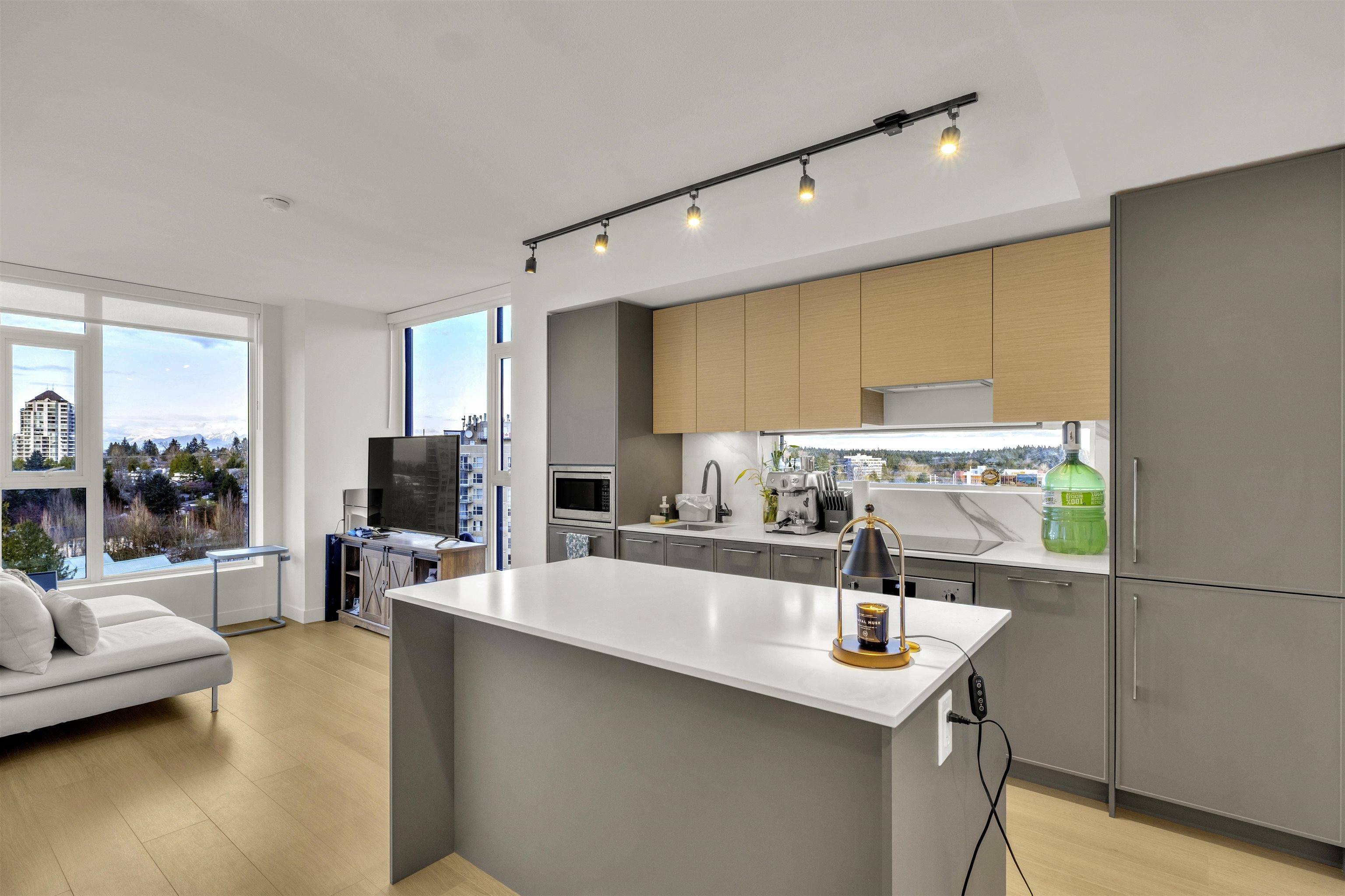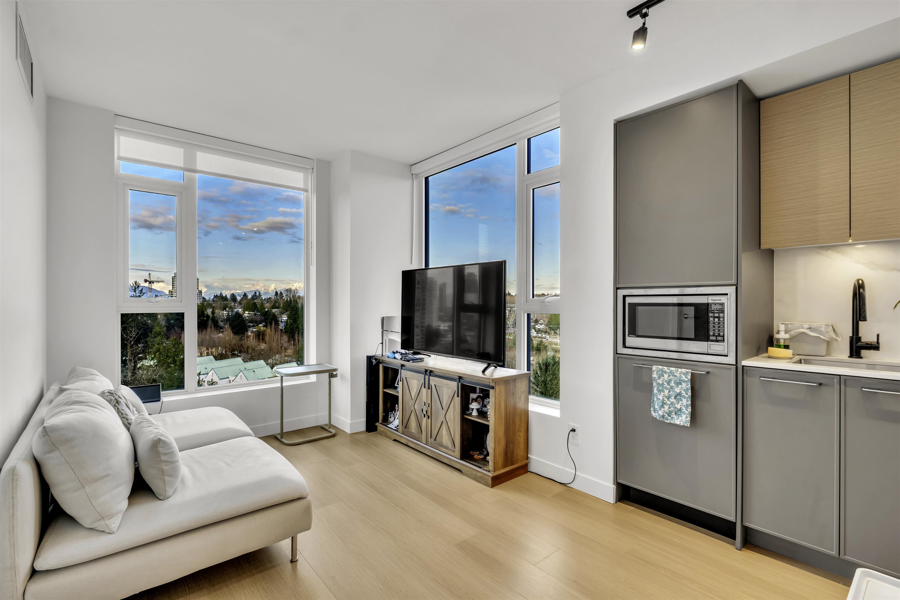 Buyer's Alert! Welcome to stunning 2 bed 2 bath unit in PLAZA 1 in King George Hub. Enjoy stunning mountain views, wide-plank flooring, high-end Fulgor Italian appliances, and quartz countertops, floor-ceiling windows offering ample of natural light. Stunning 42 storey high rise builing developed by PCI Group. Experience modern living in the heart of Surrey! This beautiful unit offers sleek finishes, spacious layout & unbeatable location-steps to transit, shopping & more. Social hub(Rooftop) includes dining...