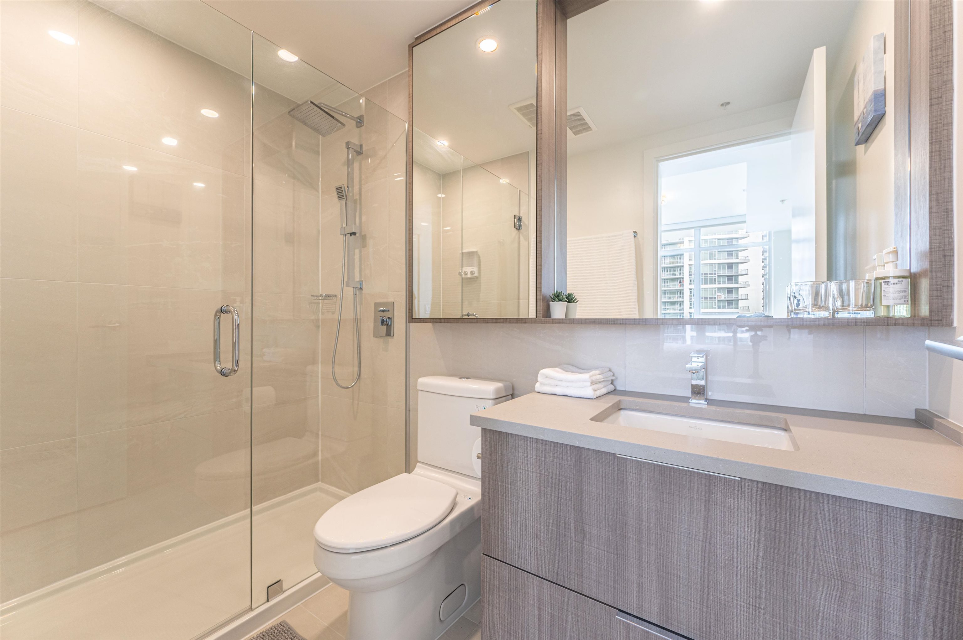 Surrey Center Premium 2 Bedroom Apartment for Rent. Fully furnished 2 bedrooms, 2 bathrooms + 1 parking space with air conditioning. Lighting from both sides, large balcony + great view. No Smoke No pets