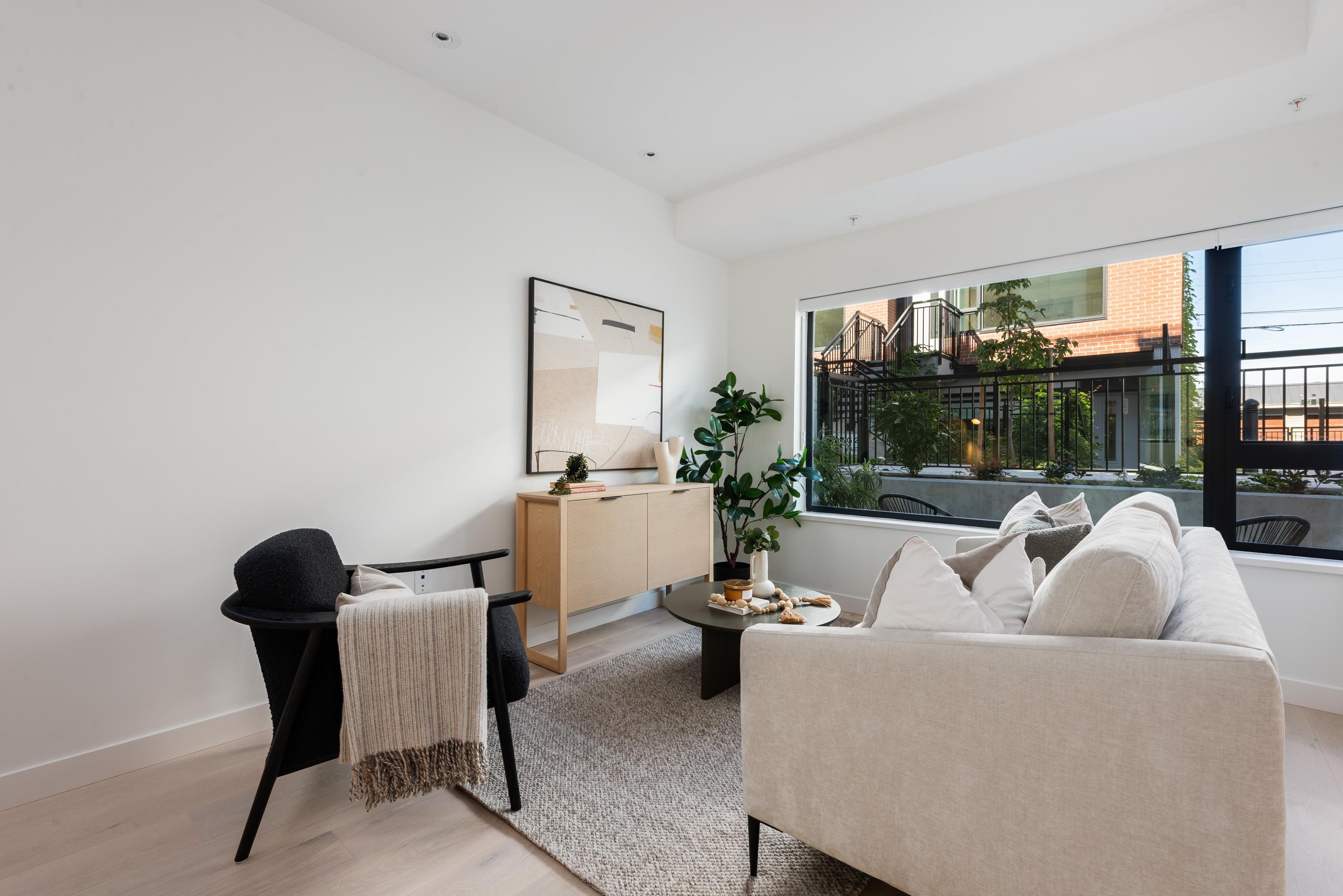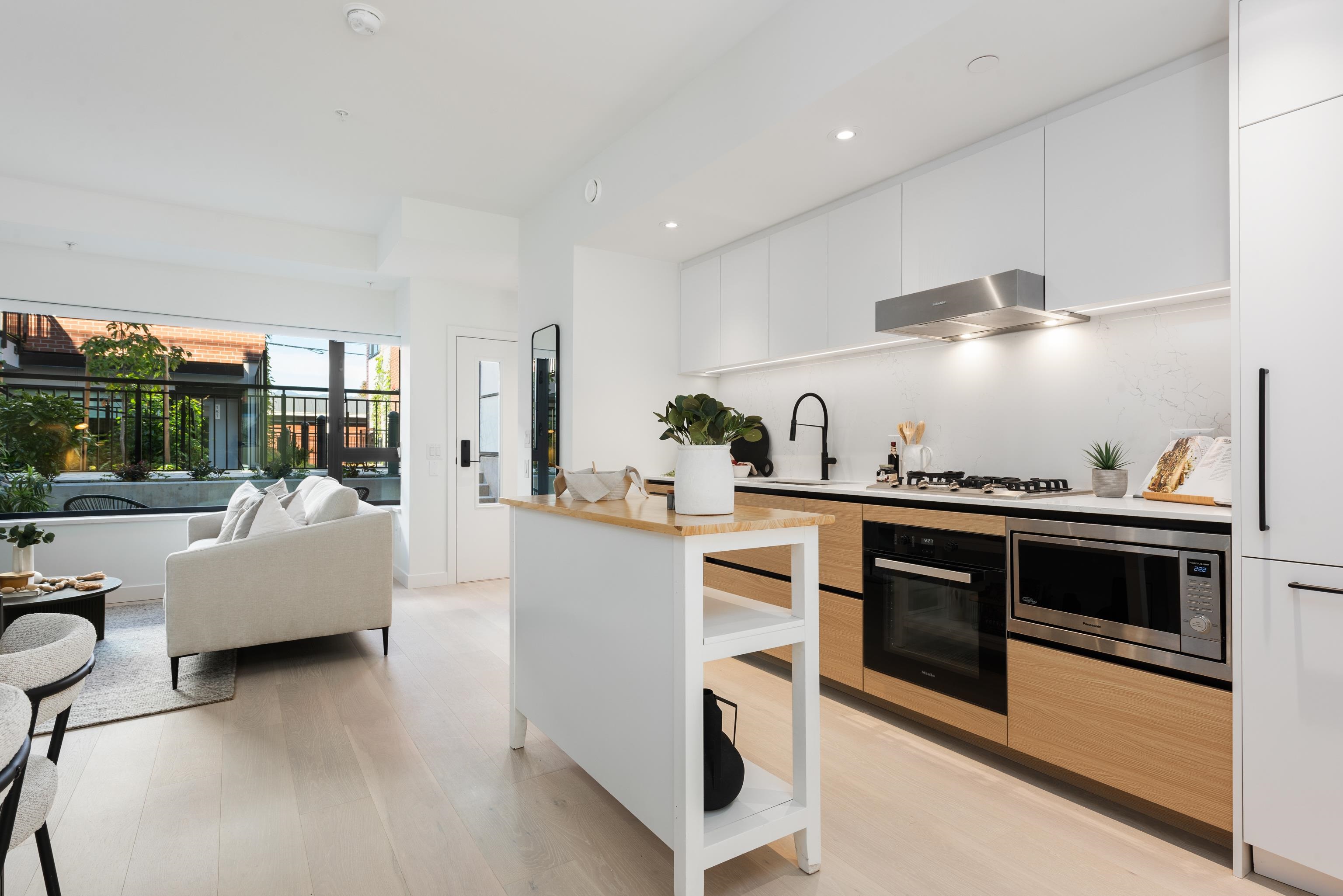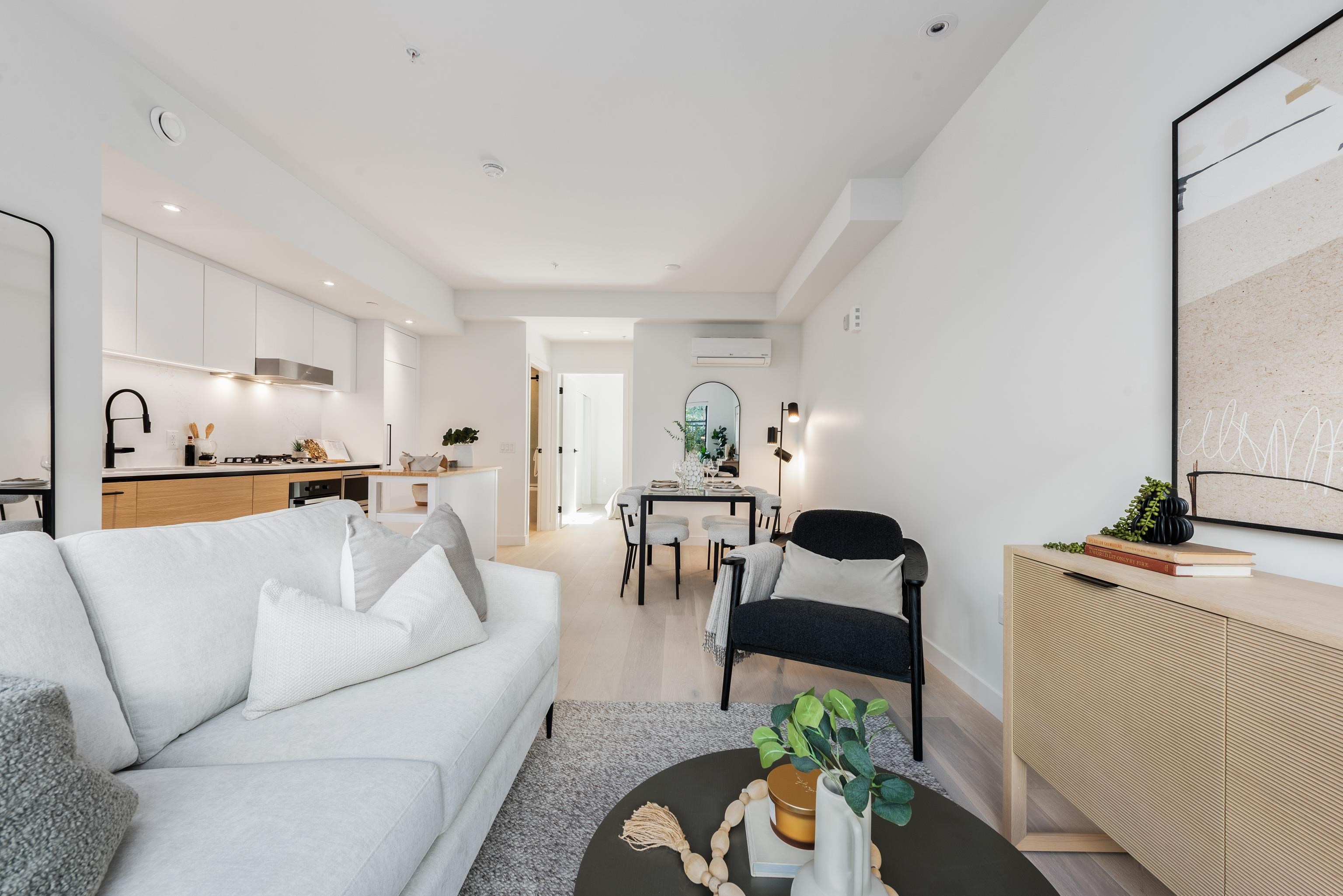 Discover Kinsley by Intergulf - this one bedroom garden flat is located on W 28th and Yukon, and move-in ready this Summer 2025. With nearby convenience to King Edward SkyTrain, top hospitals, Cambie Village shopping and restaurants, and next to Queen Elizabeth Park. Enjoy expansive outdoor patios while inside, high-end details shine —engineered hardwood floors, a premium integrated Miele appliance package with gas cooktop, A/C, triple-glazed windows, quartz countertops, and up to 9ft ceilings. Plus, 2000 S...