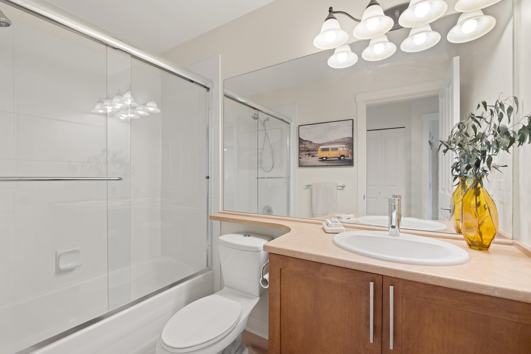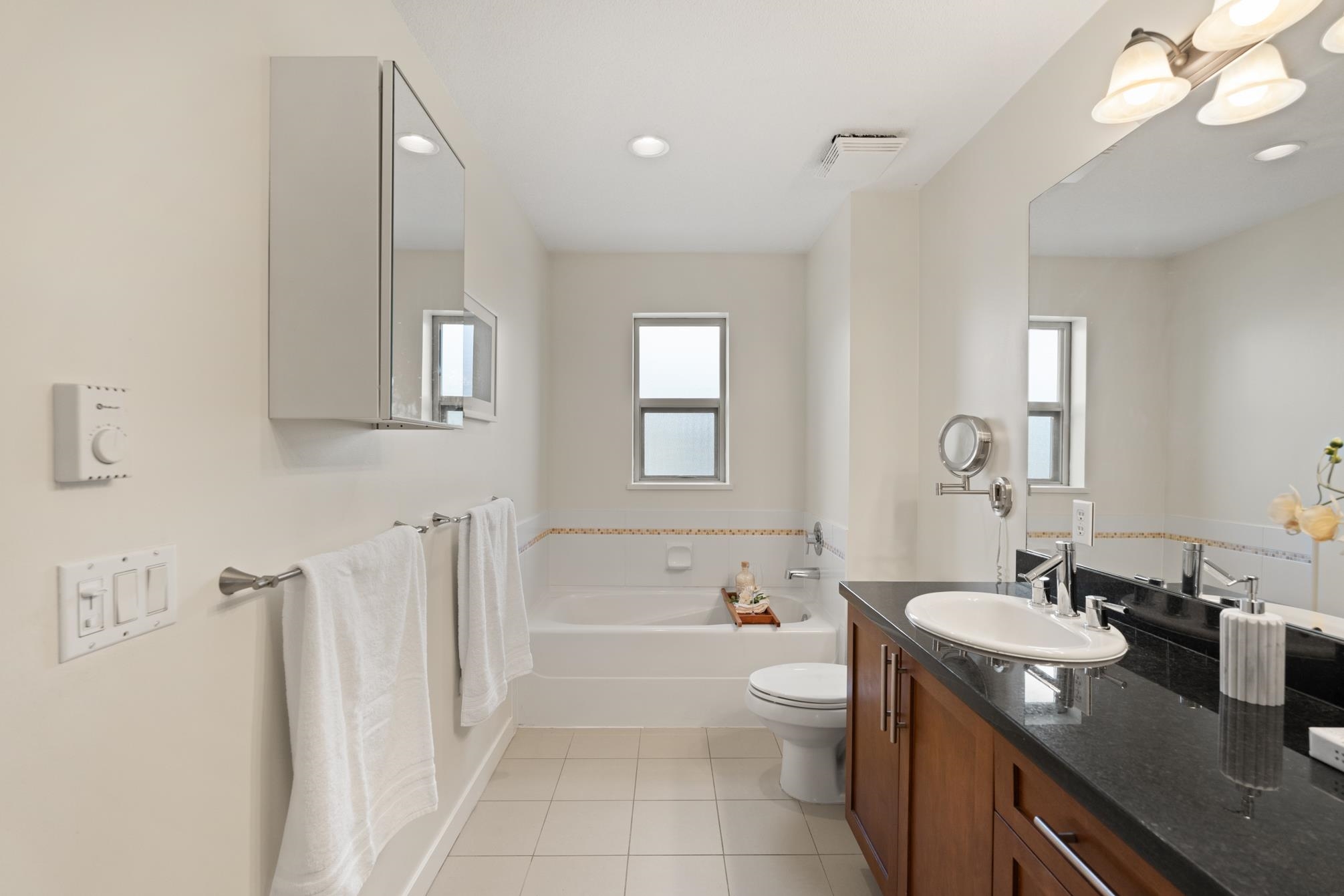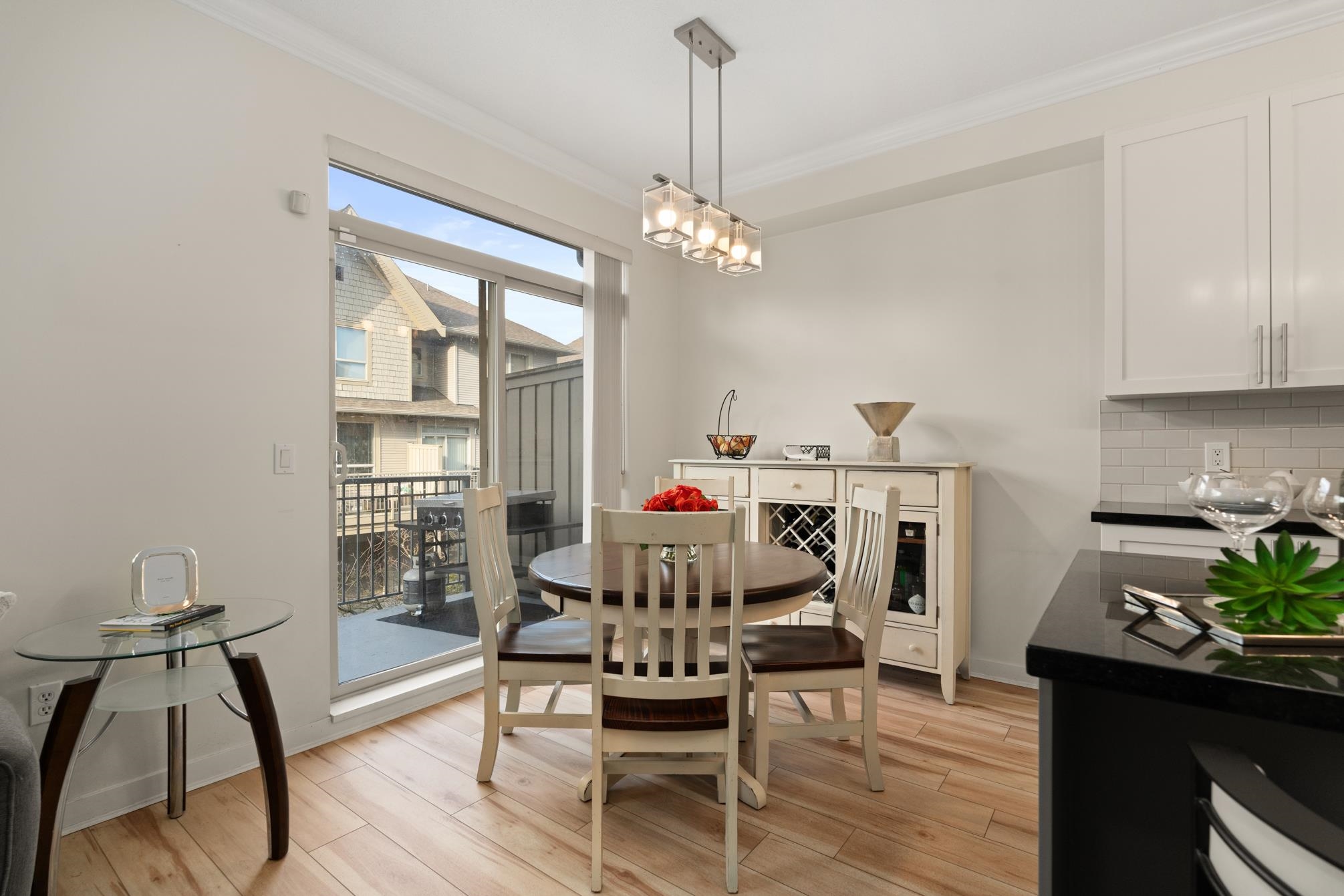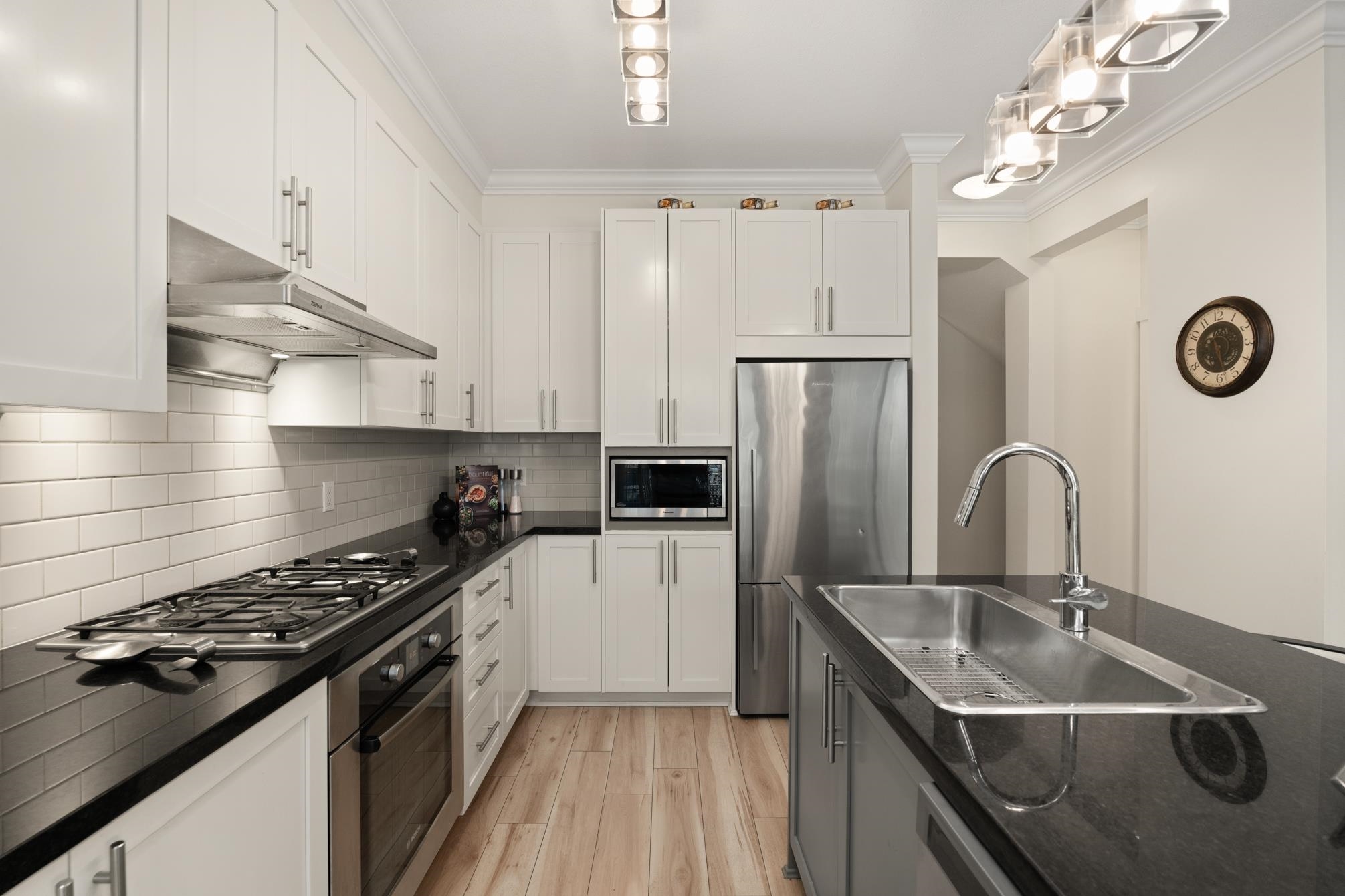 Nestled in the highly sought after Cathedral Grove community in the heart of South Surrey this beautiful 4 bdrm, 4 bath townhome offers an ideal blend of comfort & convenience. Boasting a rare 2 primary suites this spacious 2-storey w/ bsmt ftrs extensive updates including freshly refinished white kitchen cabinets, modern light fixtures, new vinyl flooring, stylishly repainted interior, custom closet organizers & a new garage door opener enhance both functionality and style. Enjoy fantastic outdoor spaces w...