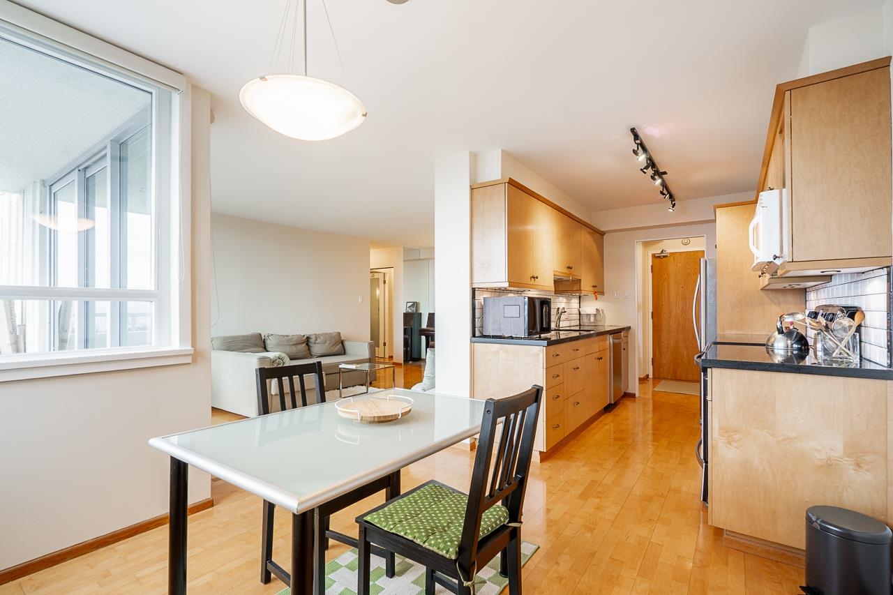 Enjoy breathtaking unobstructed views of the city and mountains in this north facing 792 sf unit. Nicely updated with hardwood floors, spa-like bathroom, and refreshed kitchen with granite countertops, wood cabinetry and undermount sink. Deluxe built with custom closets in bedroom. Rare oversized 04 Floor plan fits full sized furniture. Major building upgrades include: parkade, elevators, windows/sliding doors, building exterior, re-piping and roof. Comes with parking, storage locker and overnight securit...