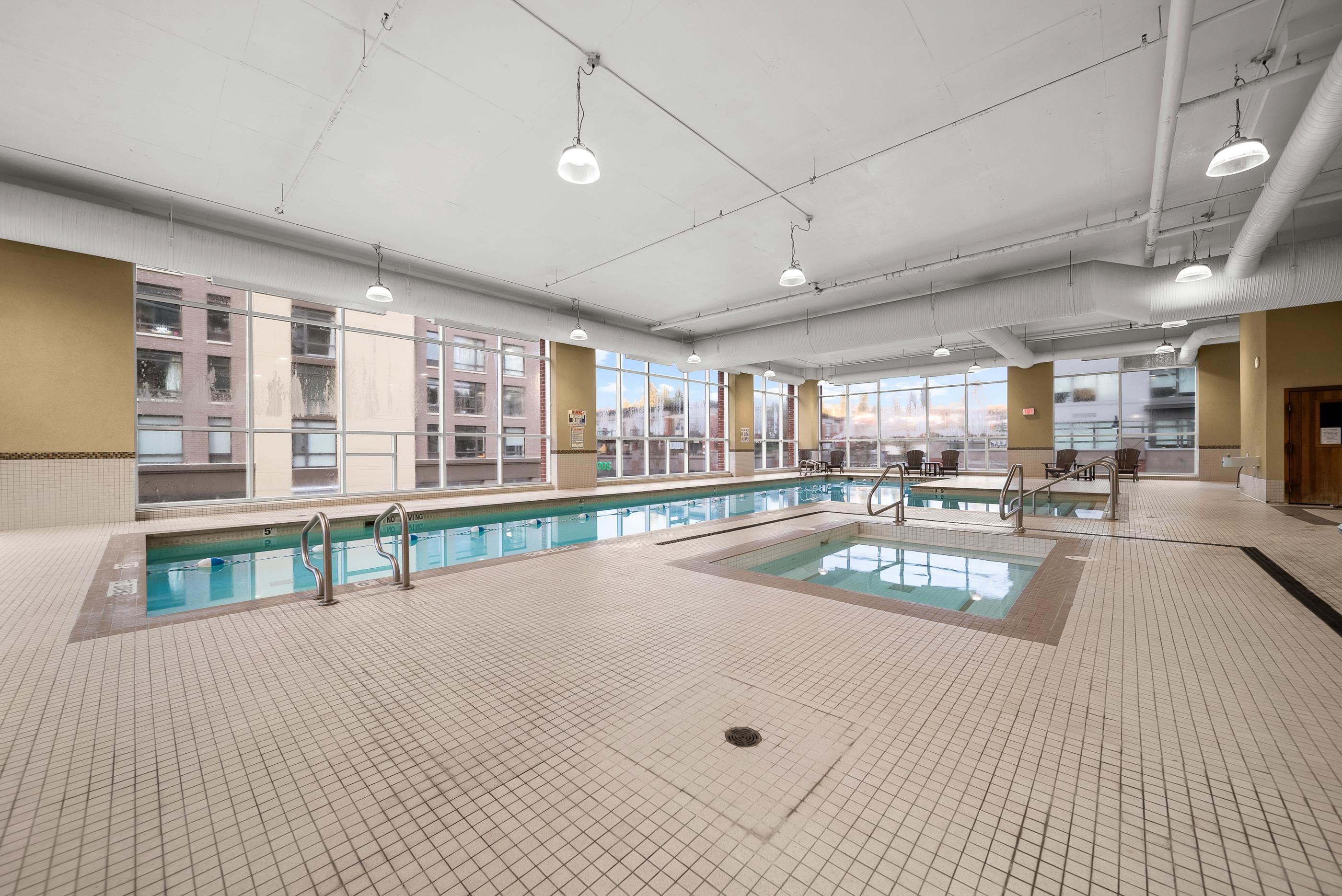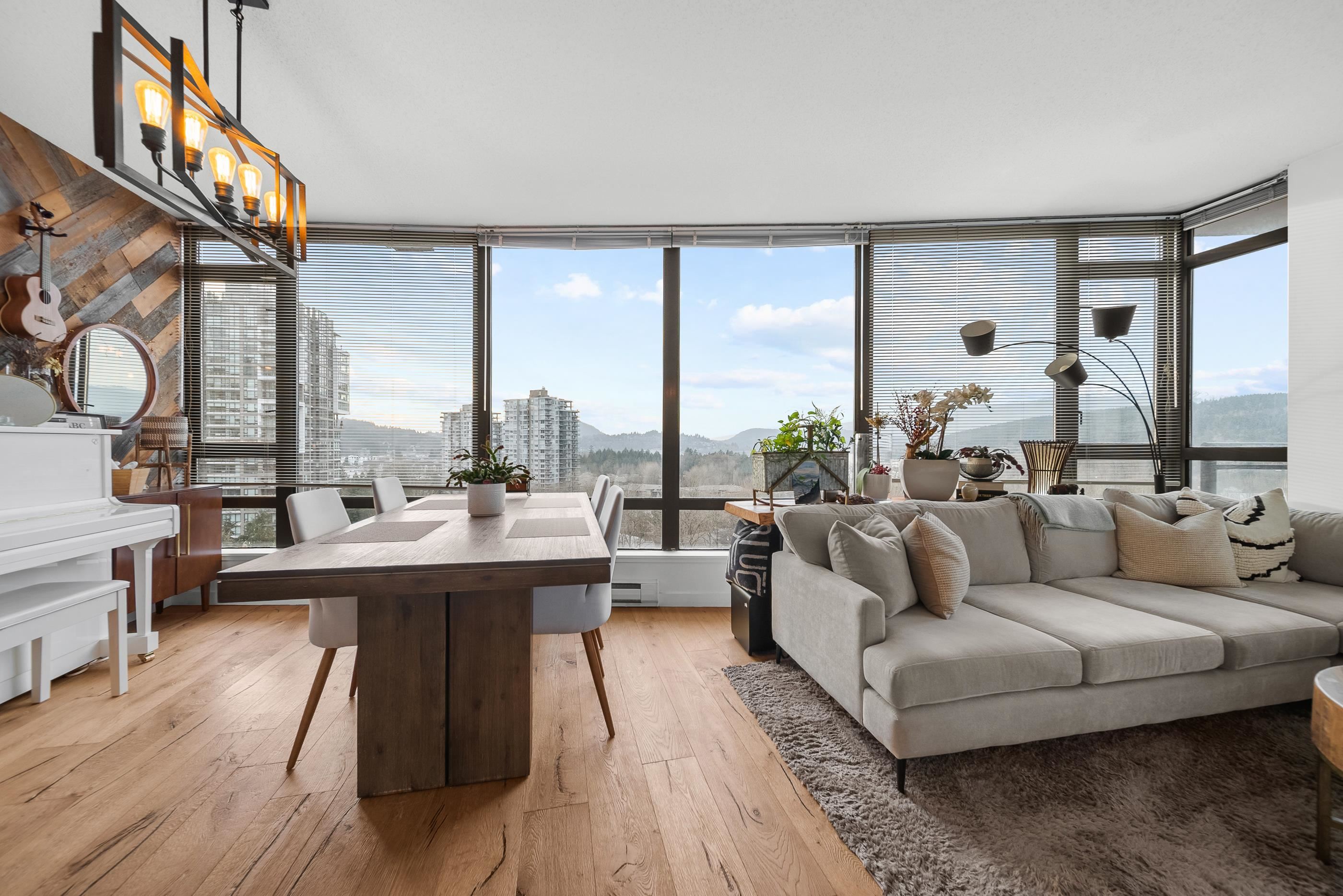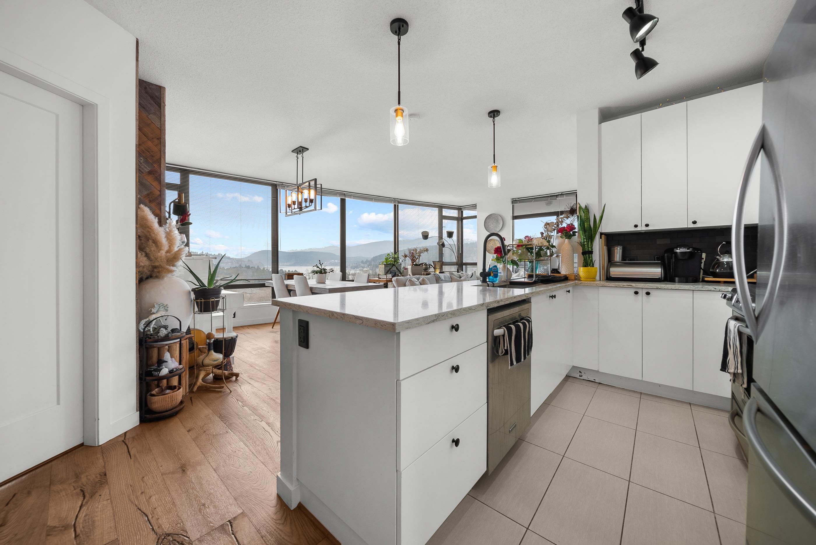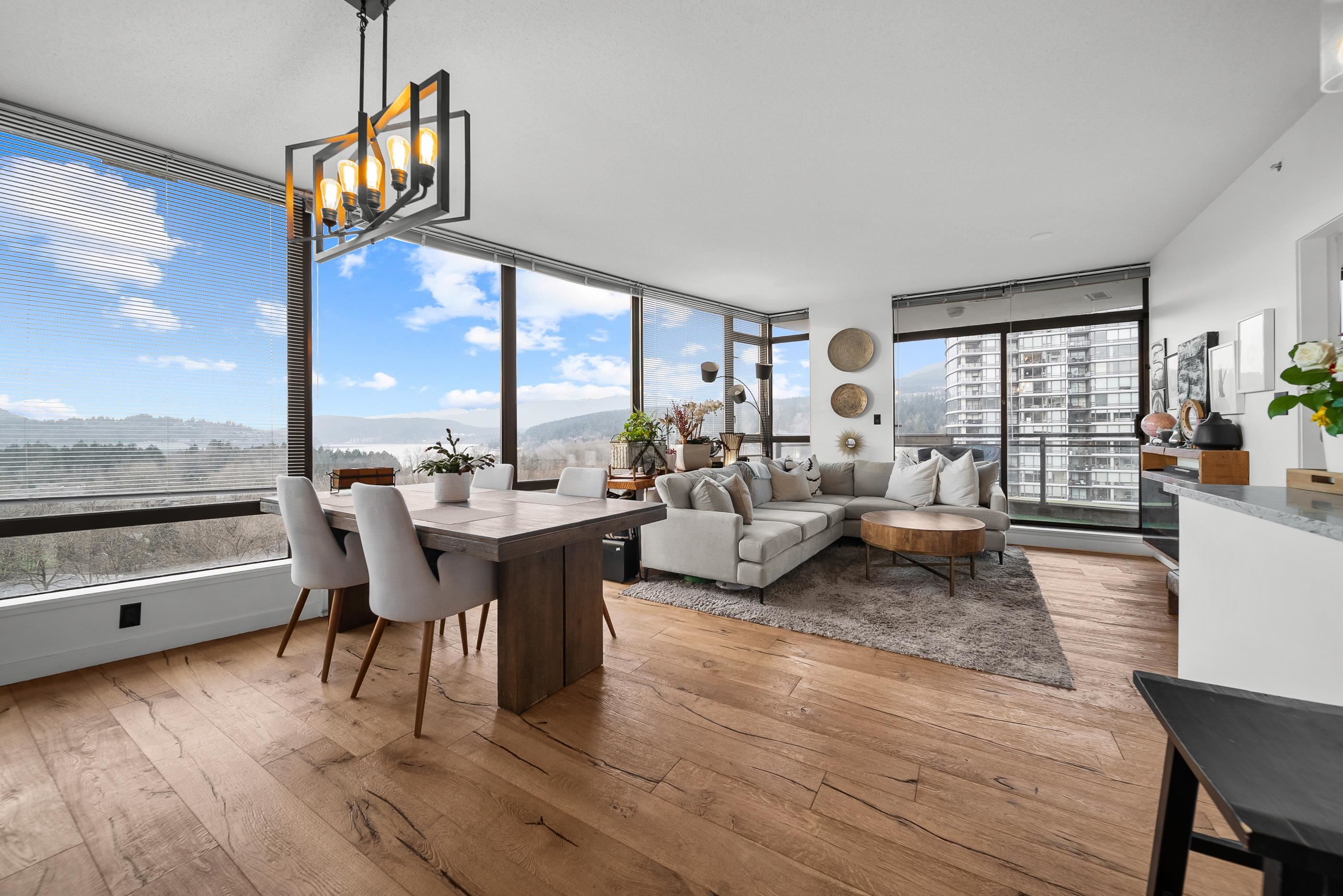 Welcome to Aria II in the heart of vibrant Suter Brook Village. This bright 2-bed, 2-bath, 1,144 sq ft corner unit is wrapped in floor-to-ceiling windows and an open-concept layout with eye-watering views of the Burrard Inlet. The kitchen features stainless steel appliances, granite countertops, and a peninsula made for entertaining. Engineered hardwood flooring, newer carpet, modern roller blinds - just move in and enjoy. Resort-style amenities include an indoor pool, fitness centre, squash court, steam ro...