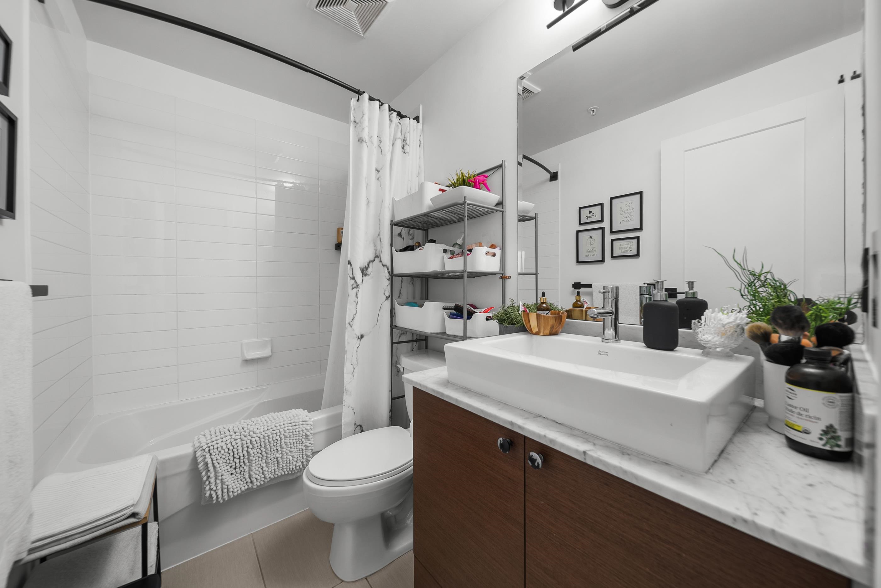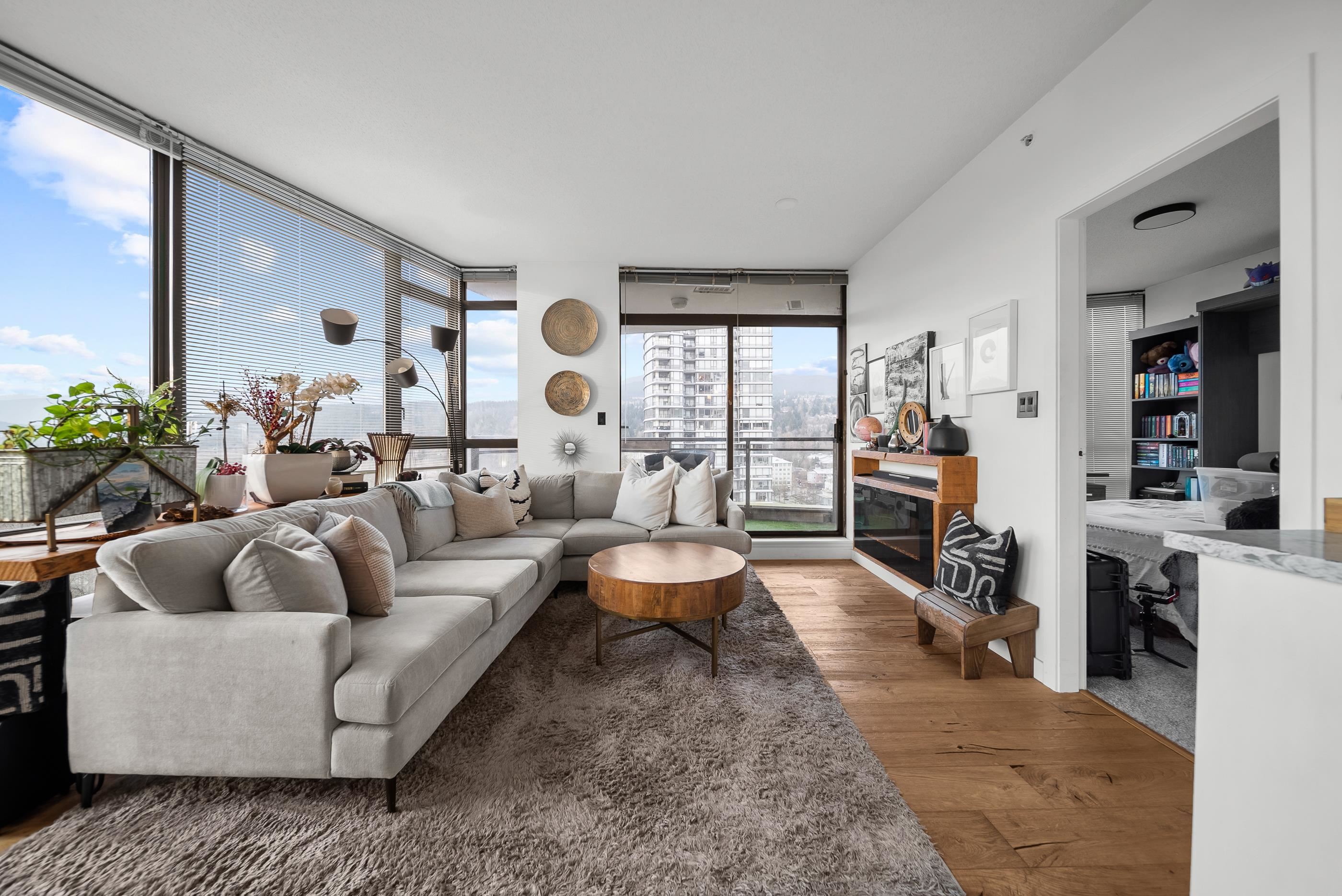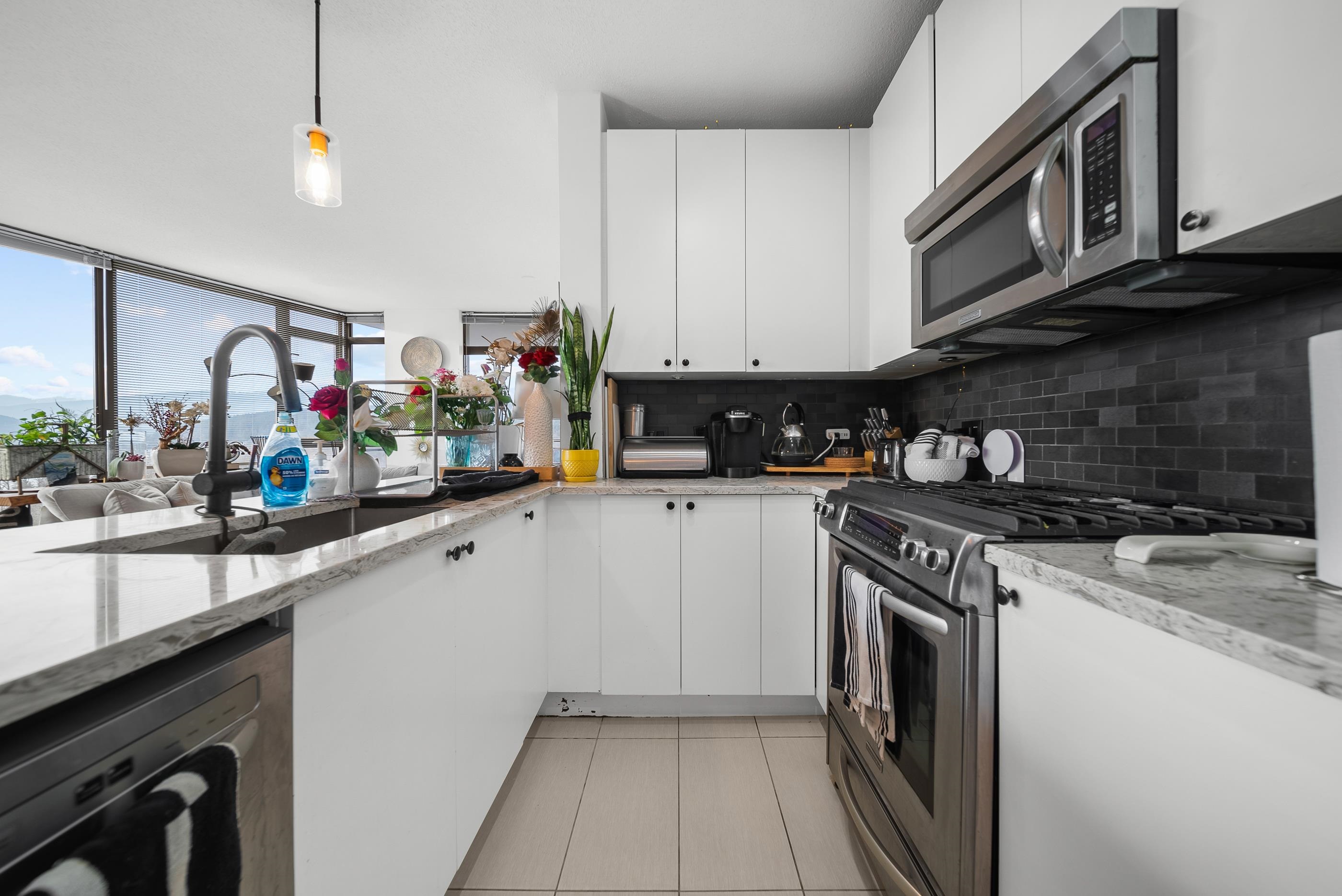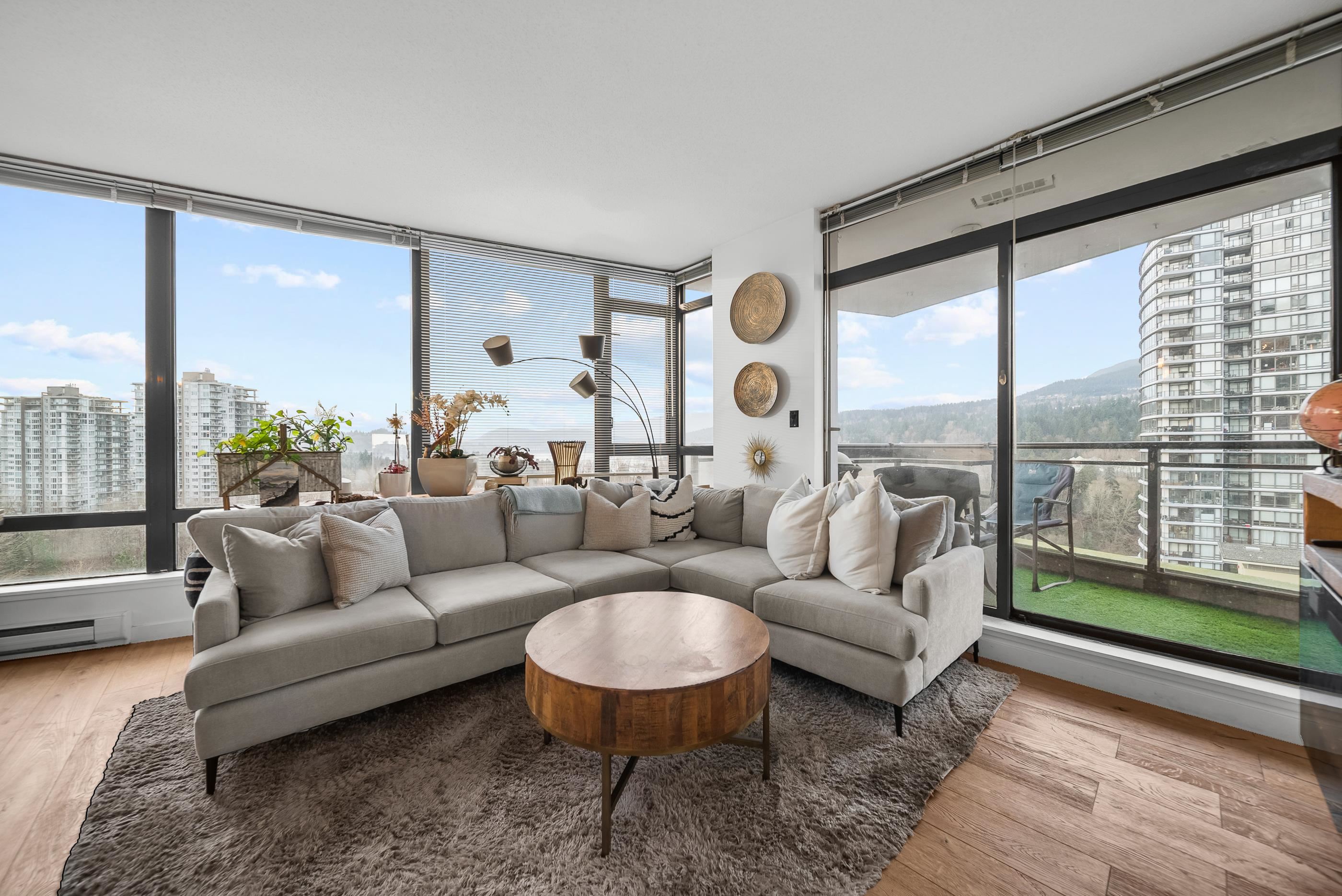Welcome to Aria II in the heart of vibrant Suter Brook Village. This bright 2-bed, 2-bath, 1,144 sq ft corner unit is wrapped in floor-to-ceiling windows and an open-concept layout with eye-watering views of the Burrard Inlet. The kitchen features stainless steel appliances, granite countertops, and a peninsula made for entertaining. Engineered hardwood flooring, newer carpet, modern roller blinds - just move in and enjoy. Resort-style amenities include an indoor pool, fitness centre, squash court, steam ro...