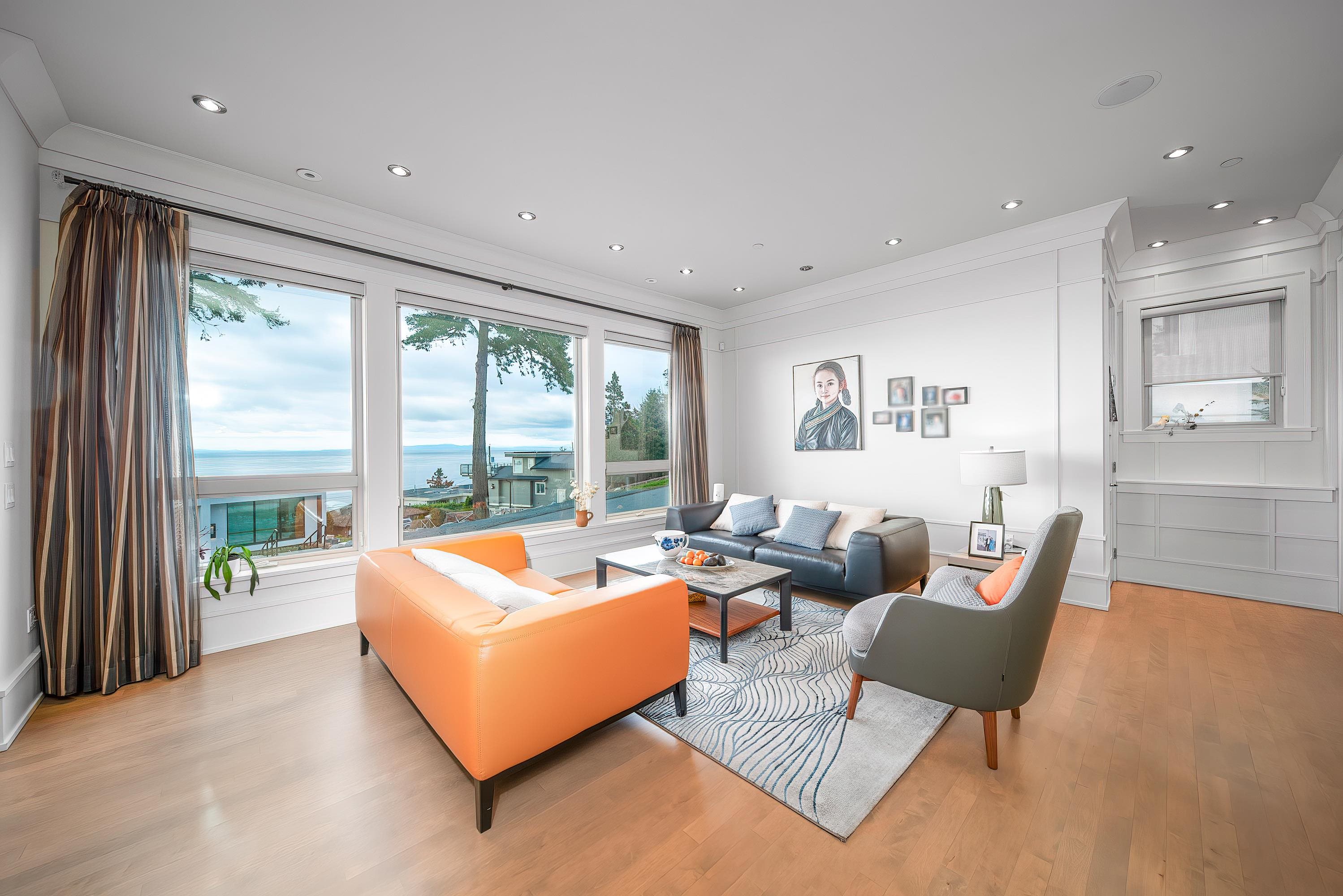 Ultra-Modern Oceanview Masterpiece in a Private White Rock Enclave.This nearly 3,500 sq. ft. architectural gem sits on a nearly 13,000 sq. ft. lot in one of White Rock’s most serene and exclusive neighbourhoods. Crafted with superior German construction and European precision, the home features panoramic ocean views, an airy open-concept layout, and Euro-Line retractable doors for seamless indoor-outdoor living. Highlights: Chef’s kitchen with Thermador appliances & granite island.Grand primary suite with s...