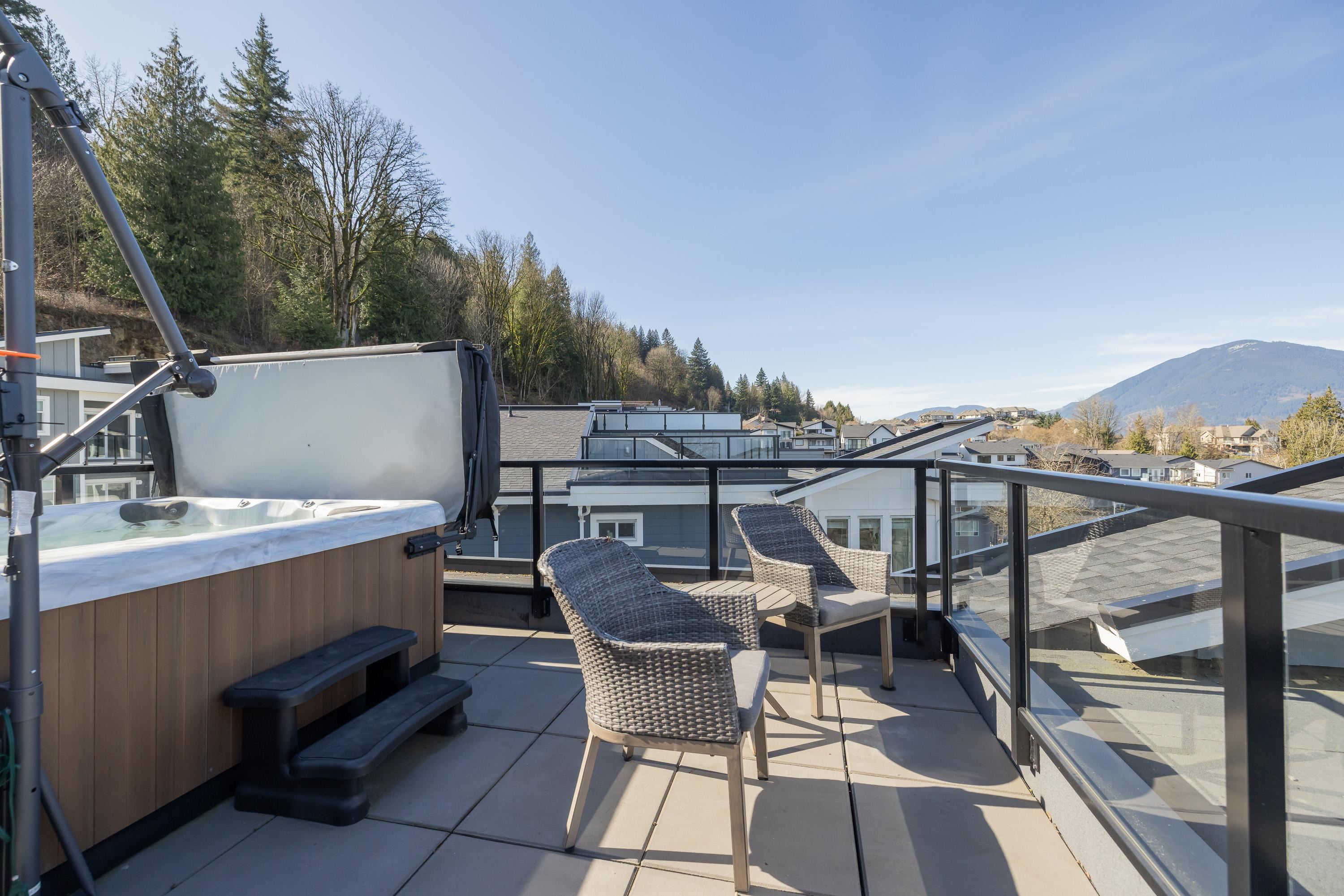 Only 1 year old and now offered for sale as the seller has decided to move closer to family. This beautiful 3 bed, 2 bath CORNER UNIT at Osprey Ridge on Chilliwack Mountain shows like new and offers incredible mountain and views with extra windows for natural light. Thoughtfully upgraded with premium appliances, custom kitchen finishes, air conditioning, and a fully fenced backyard. You HAVE TO SEE the ROOFTOP PATIO with HOT TUB. The corner location provides added privacy with fewer direct neighbours. Enjo...